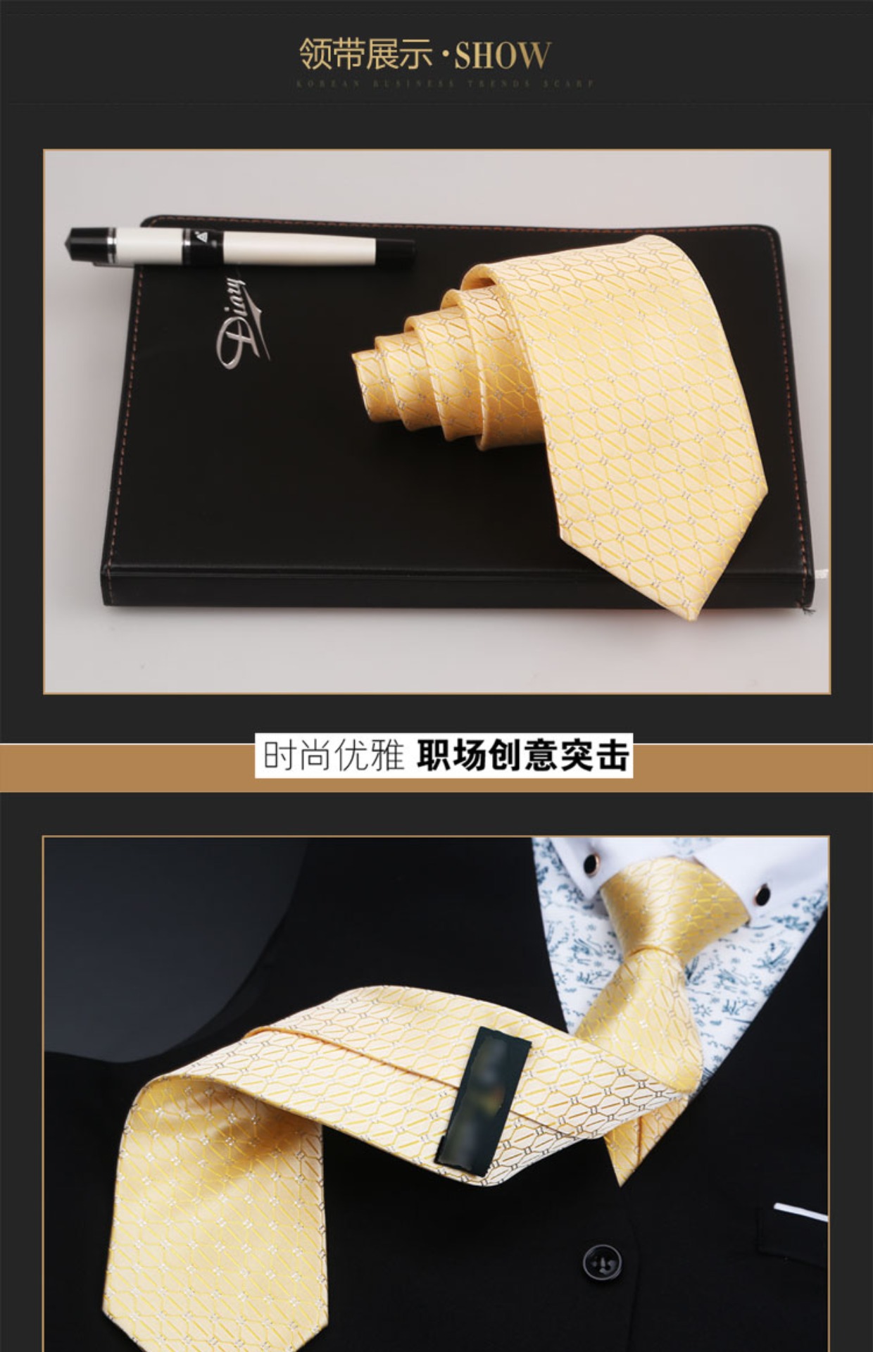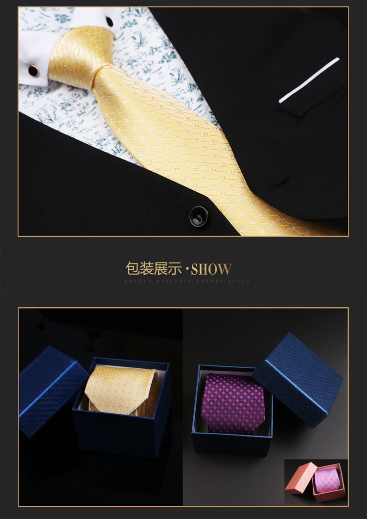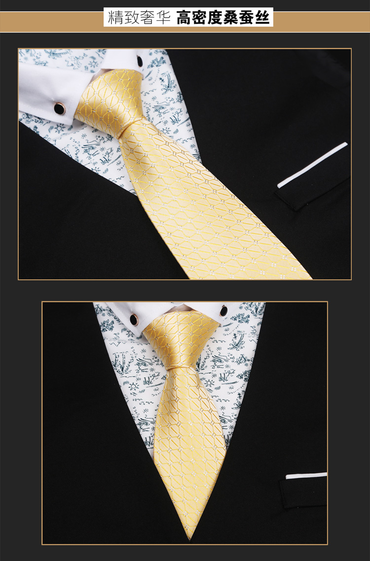 Golden Yellow Bright Gold Thread Vintage Luxury Trendy Men's Tie 8cm Suit Business British Shirt Gift Box Set