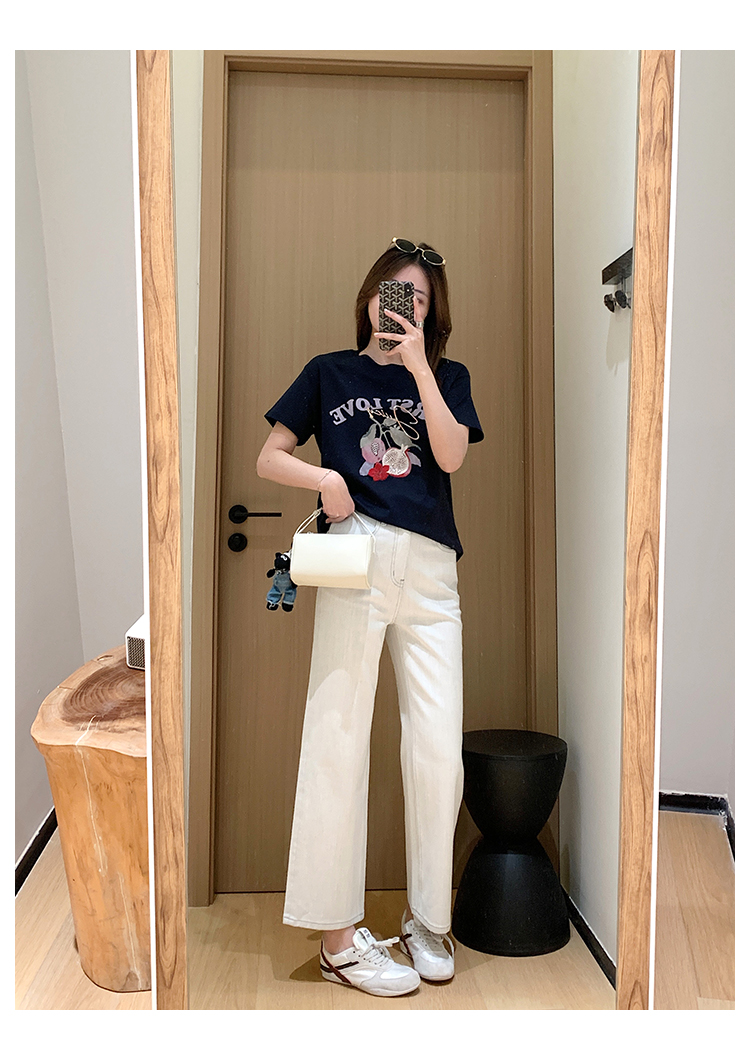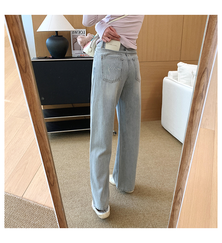烟灰色后口袋随性字母刺绣工艺,丰富层次