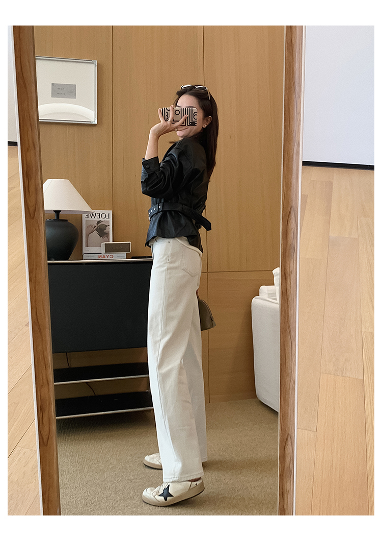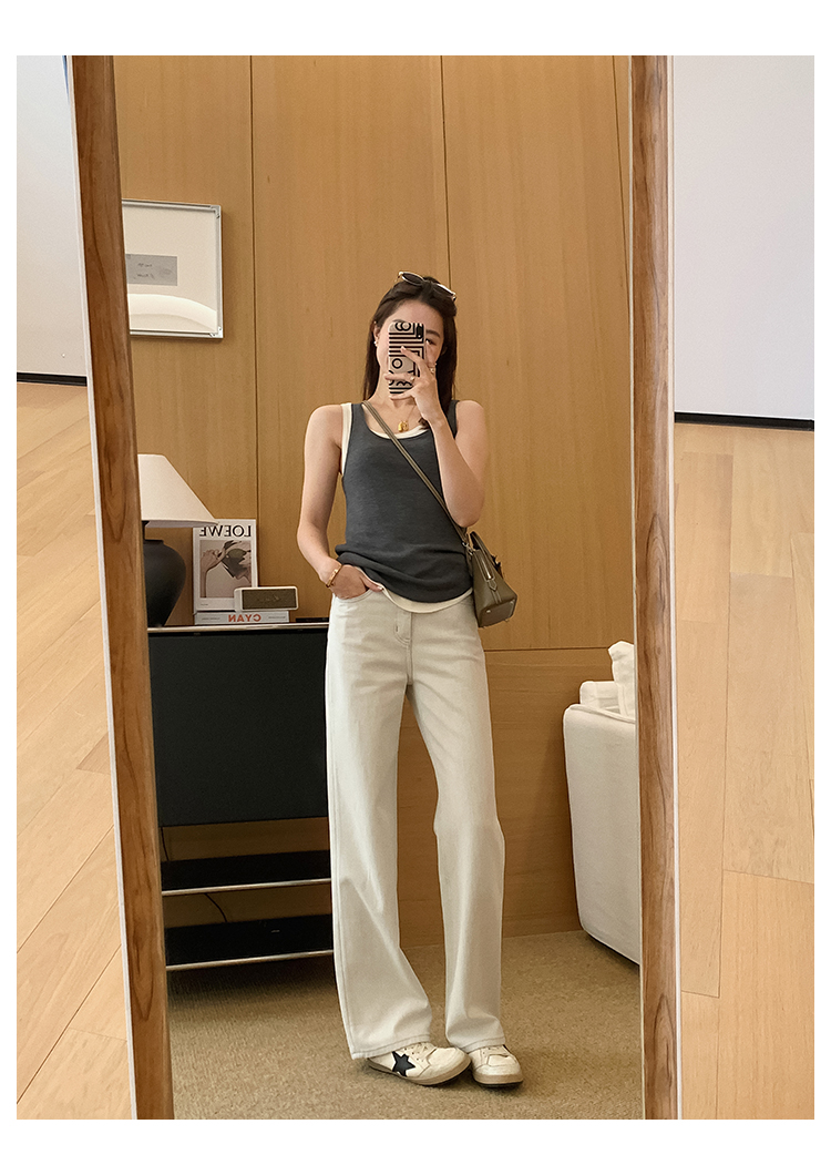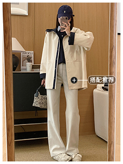 撞色翻边裤脚,卷边直筒两穿设计,很nice!
