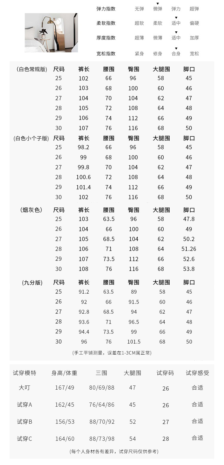 石灰白:49%聚酯纤维48%棉3%氨纶/48%棉 36%聚酯纤维 13%粘胶 3%氨纶(随机发)小个子白:54.7%棉 35.3%聚酯纤维 7.7%粘纤 2.3%氨纶