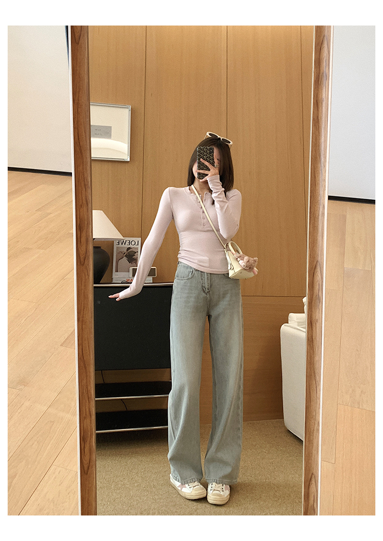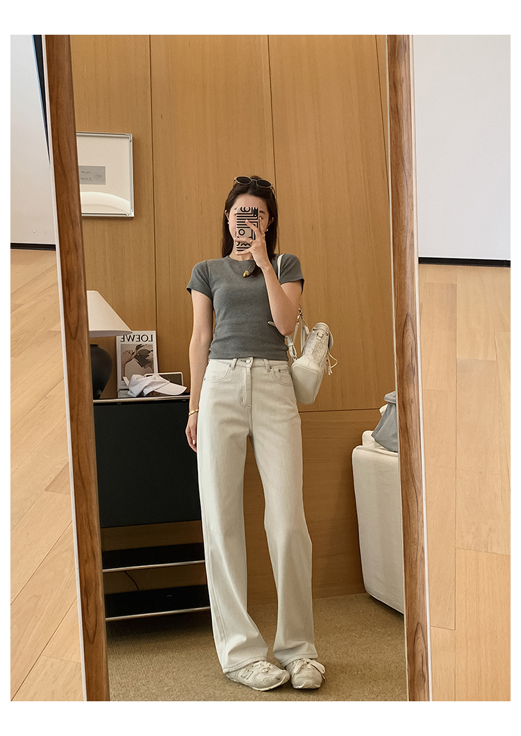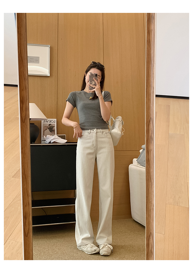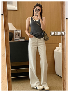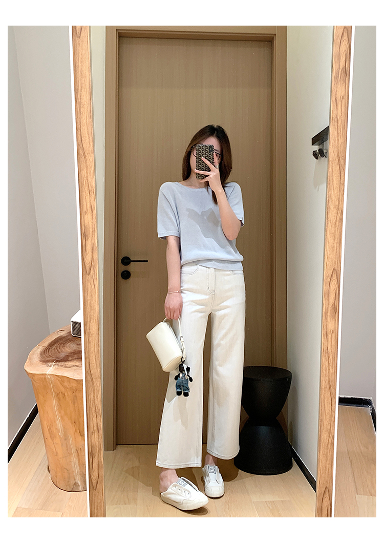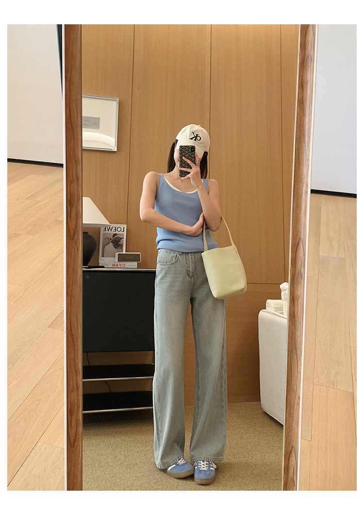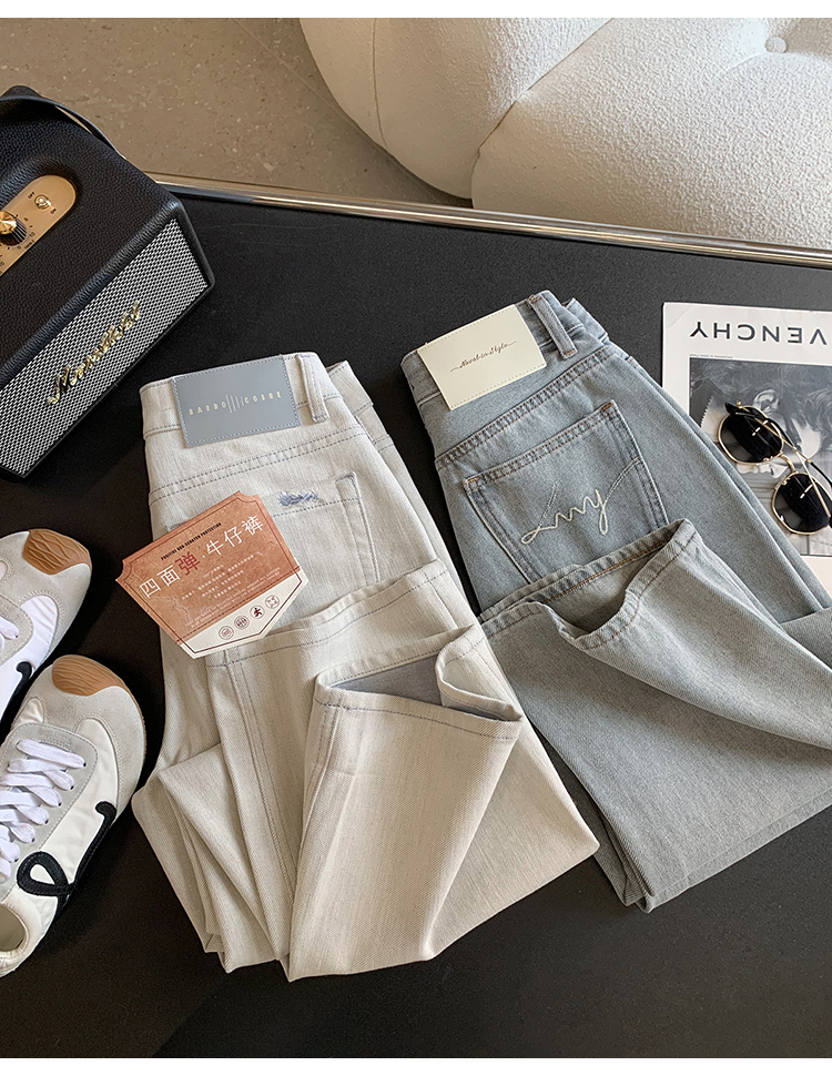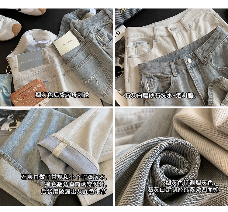 颜色很心水经纬双染四面弹窄版阔腿牛仔裤!#