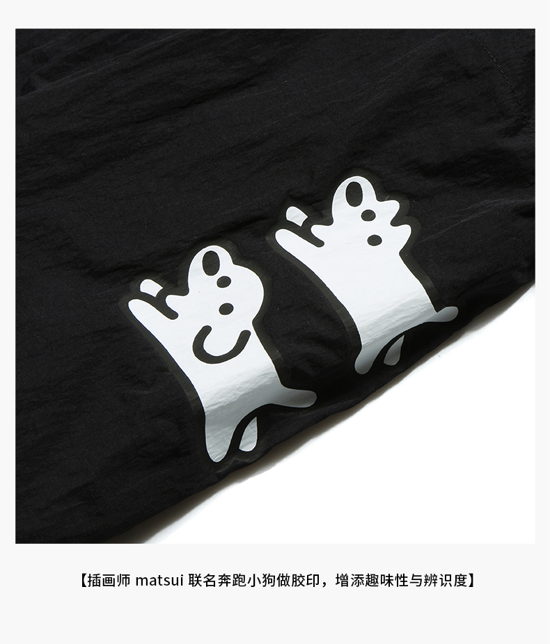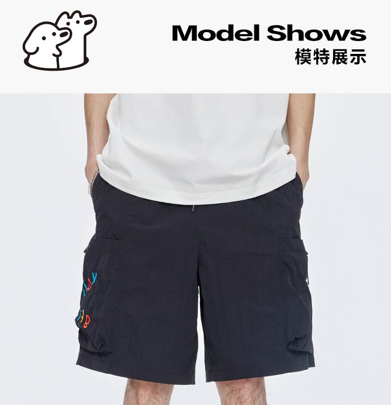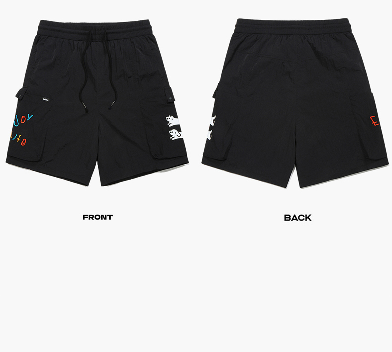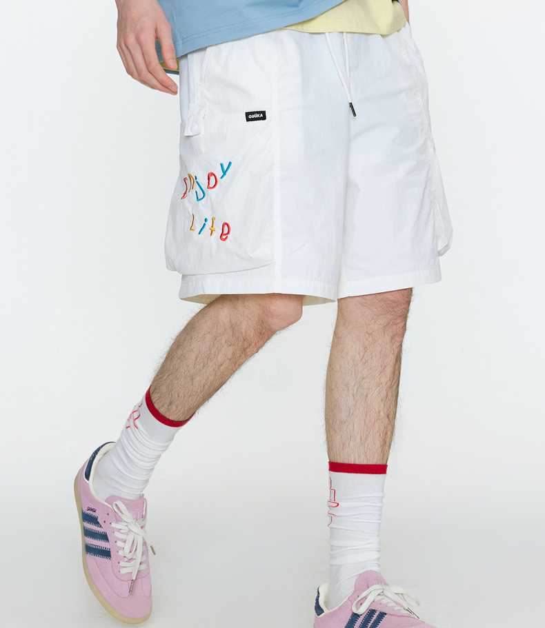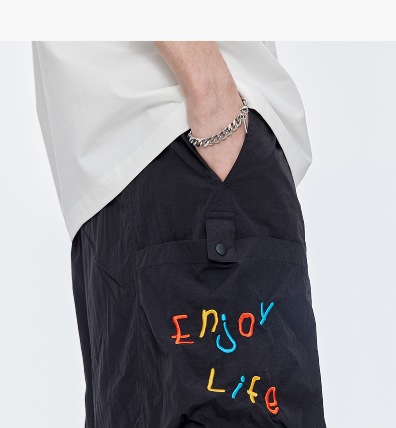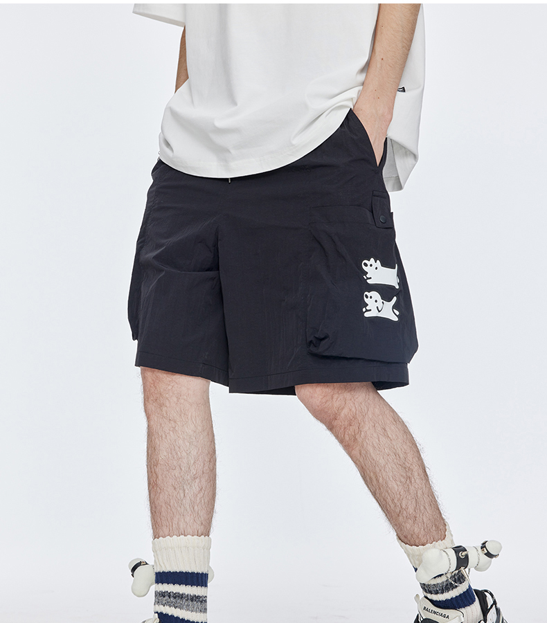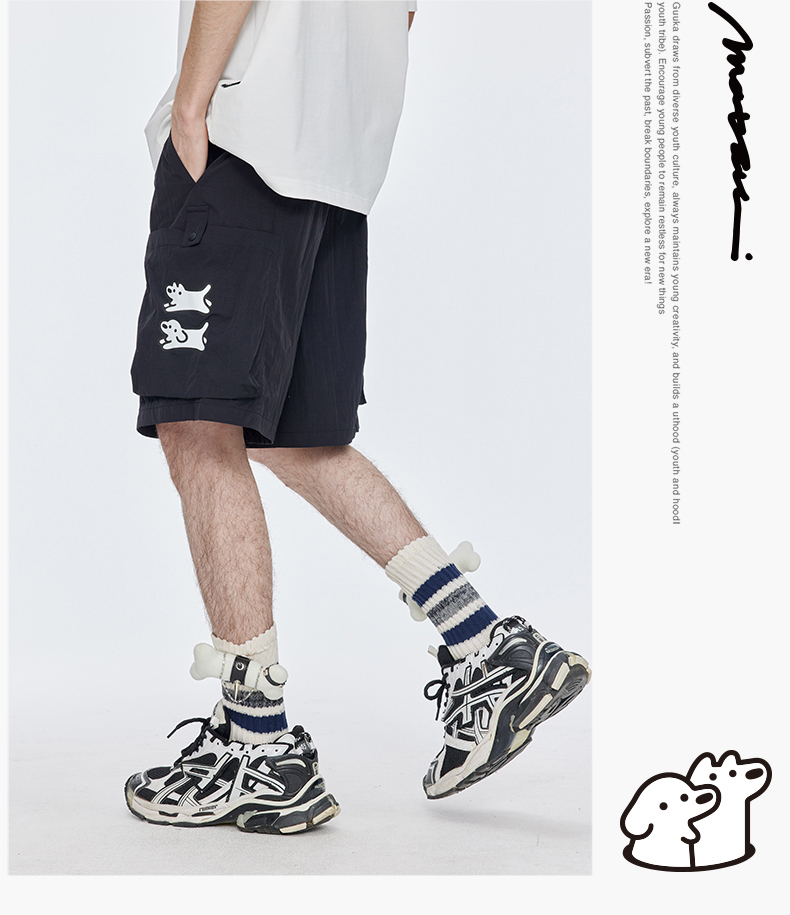 Guuka&Matsui Collaboration Black Work Shorts for Men, Summer Waterproof Embroidered Mid-Length Shorts, Loose Fit