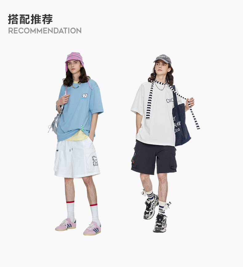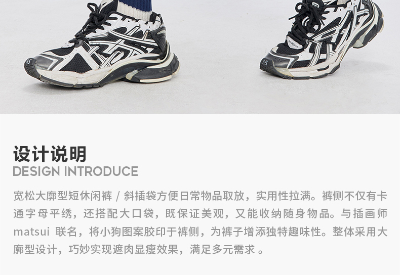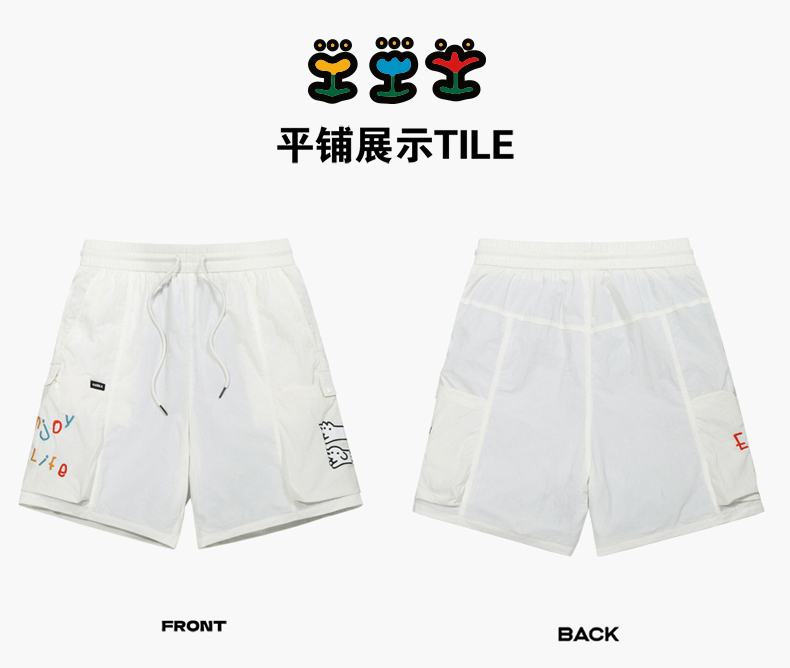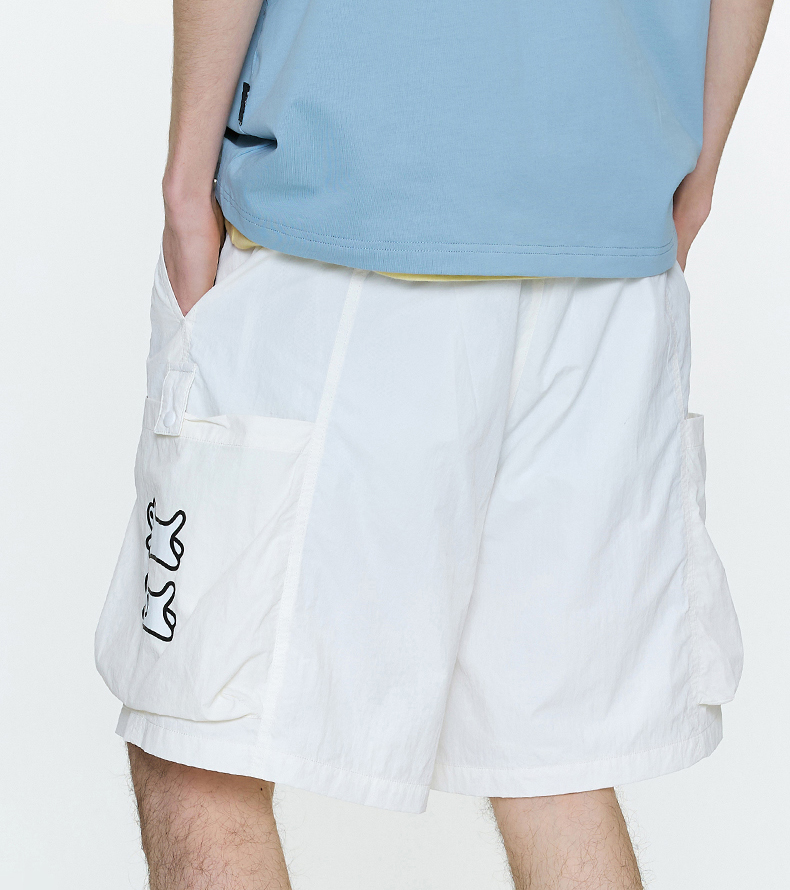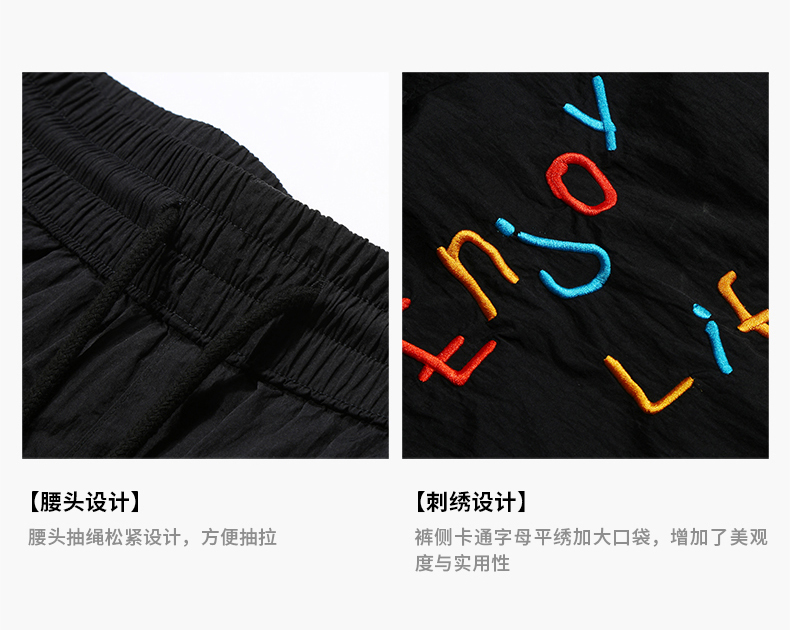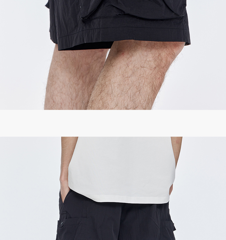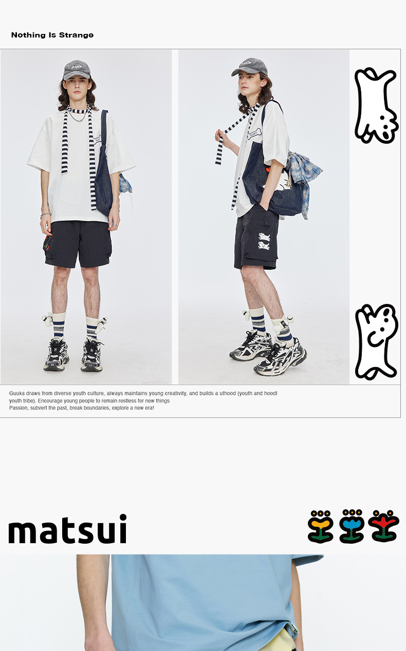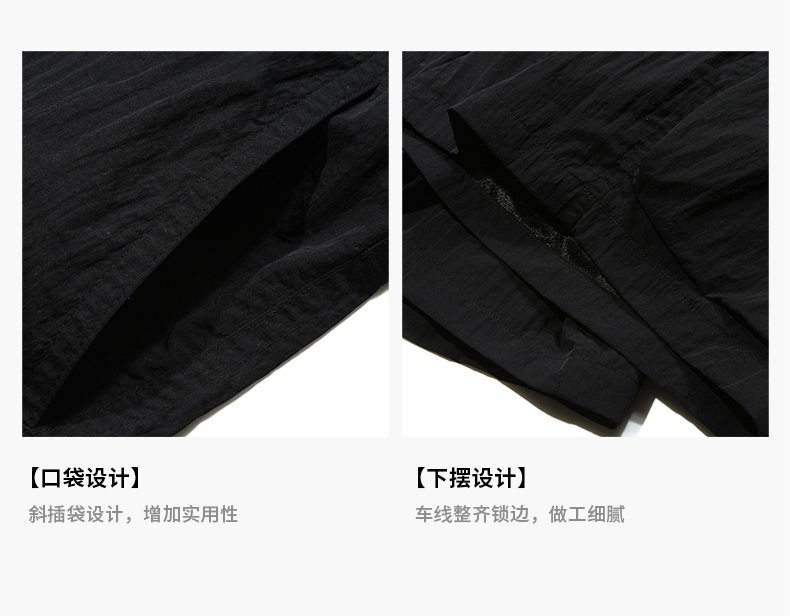 Guuka&Matsui Collaboration Black Work Shorts for Men, Summer Waterproof Embroidered Mid-Length Shorts, Loose Fit