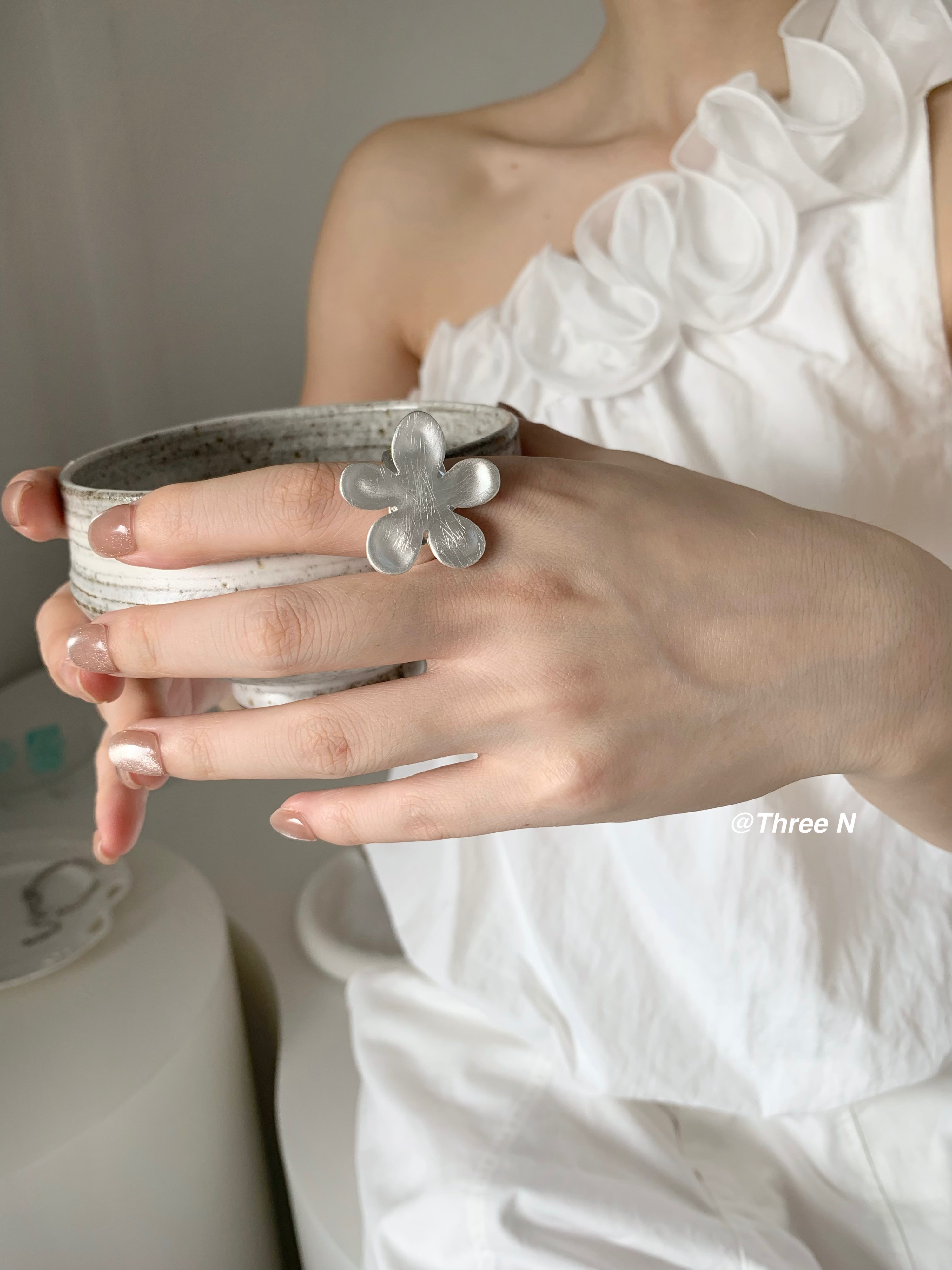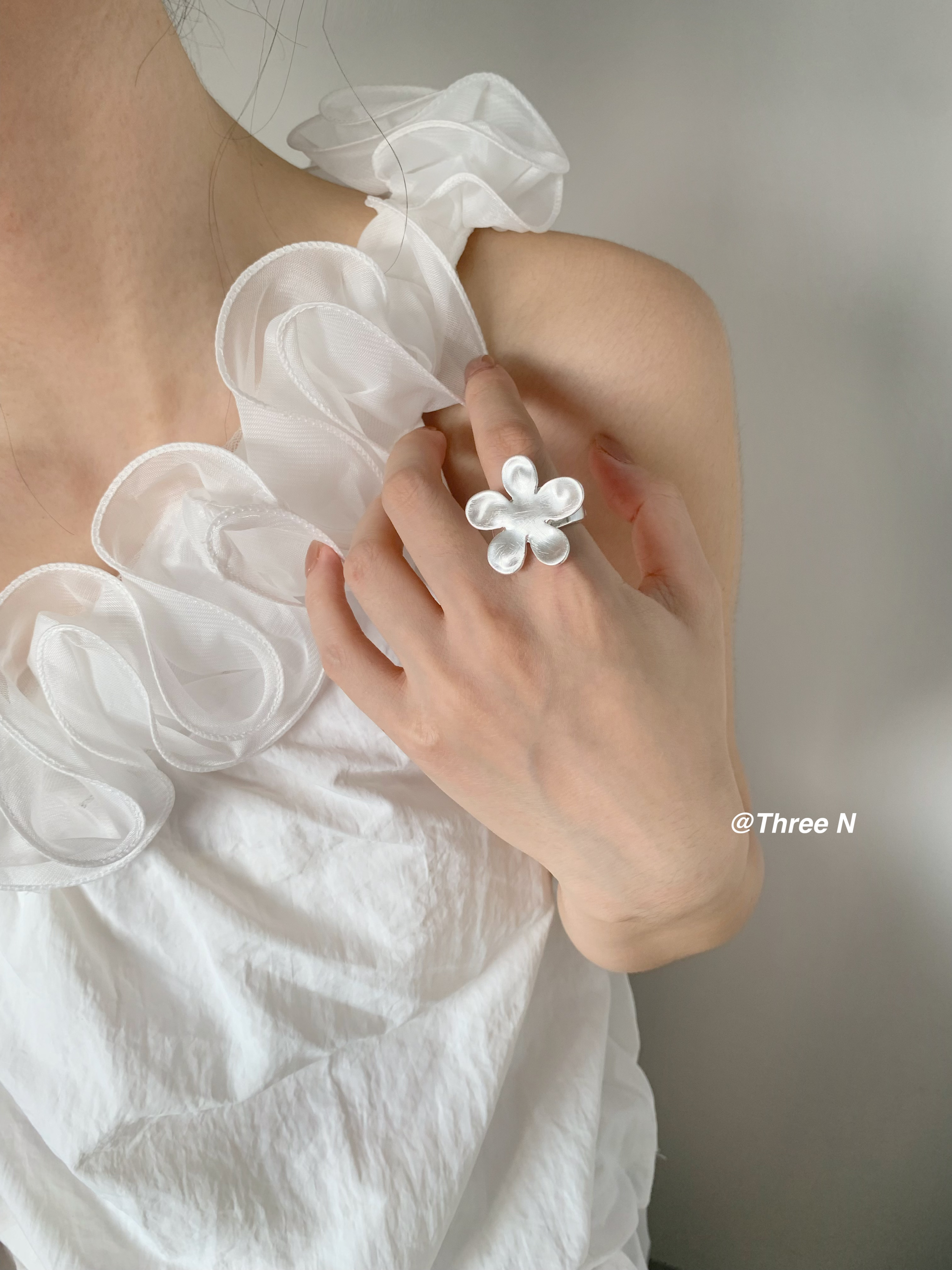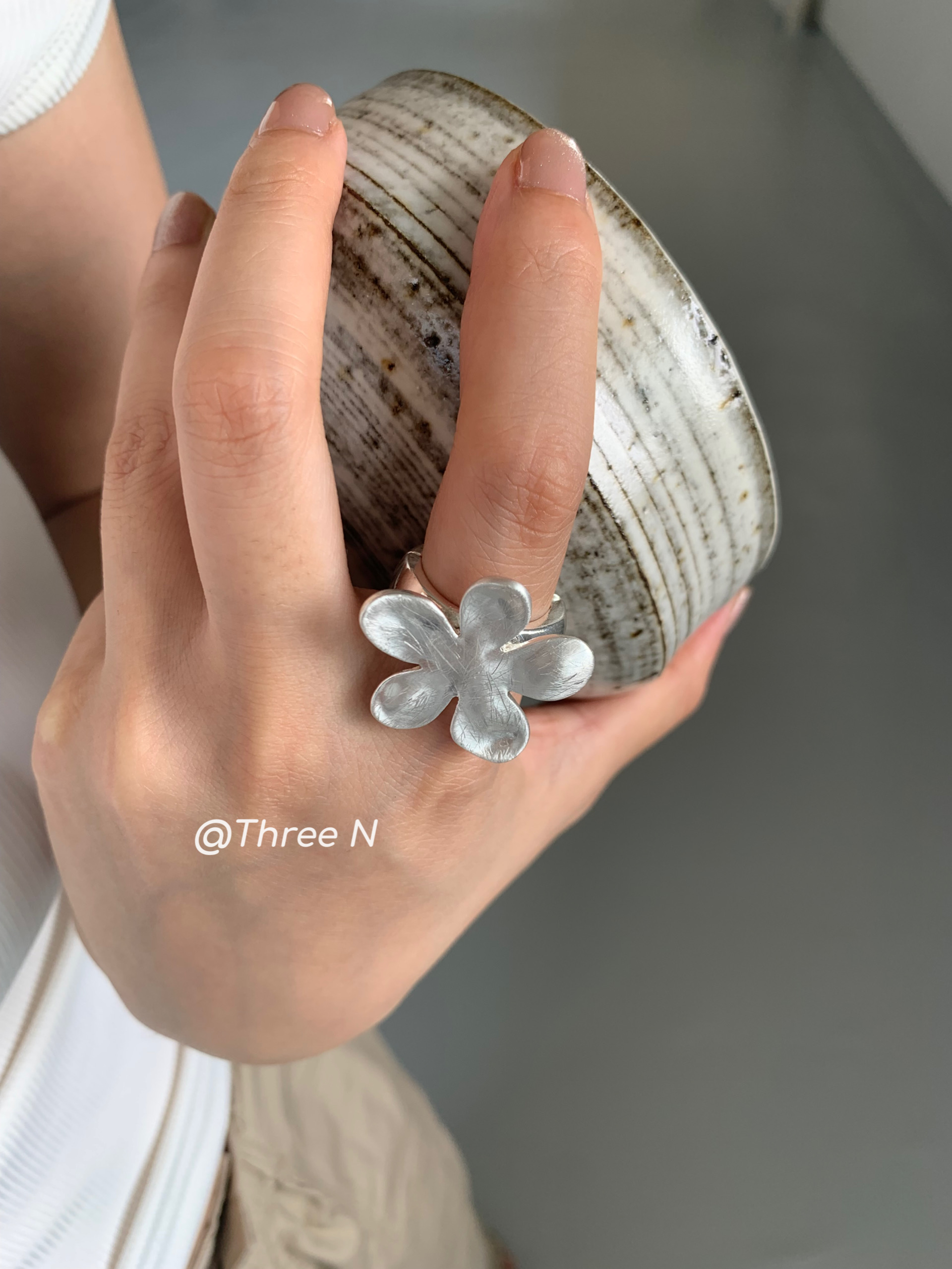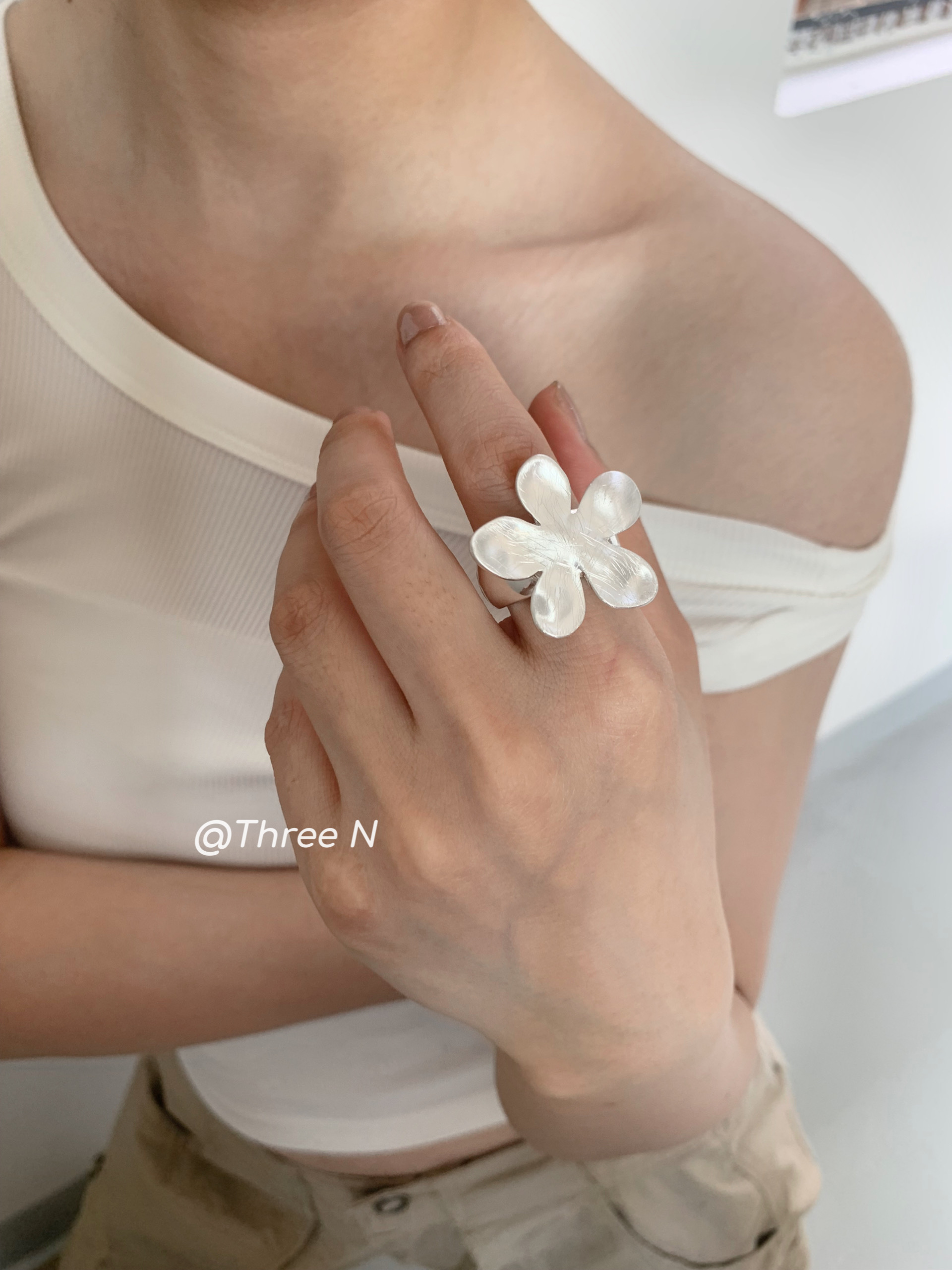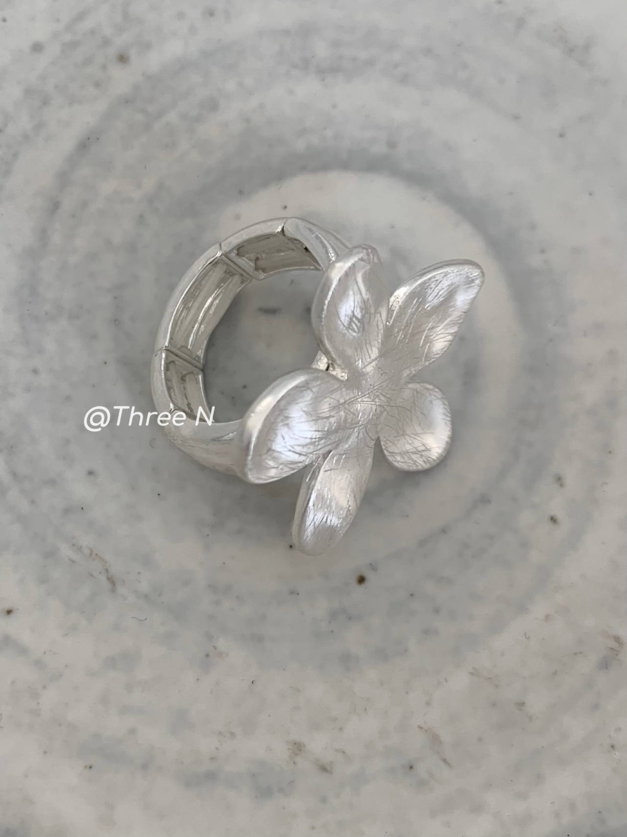 Three N Heavy Industry Silver Brushed Flower Ring Minimalist Elastic Adjustable ins Daily Index Finger Ring