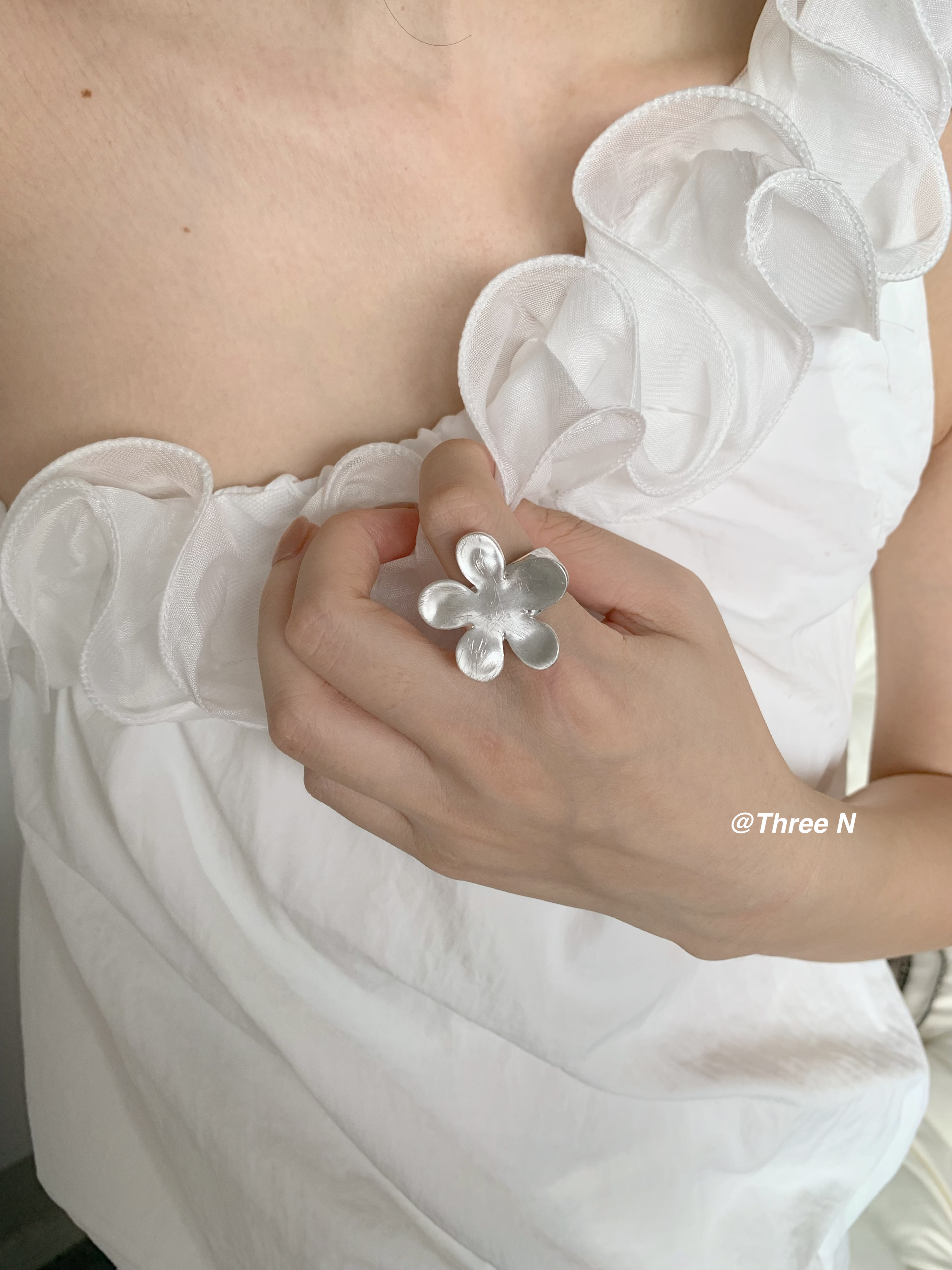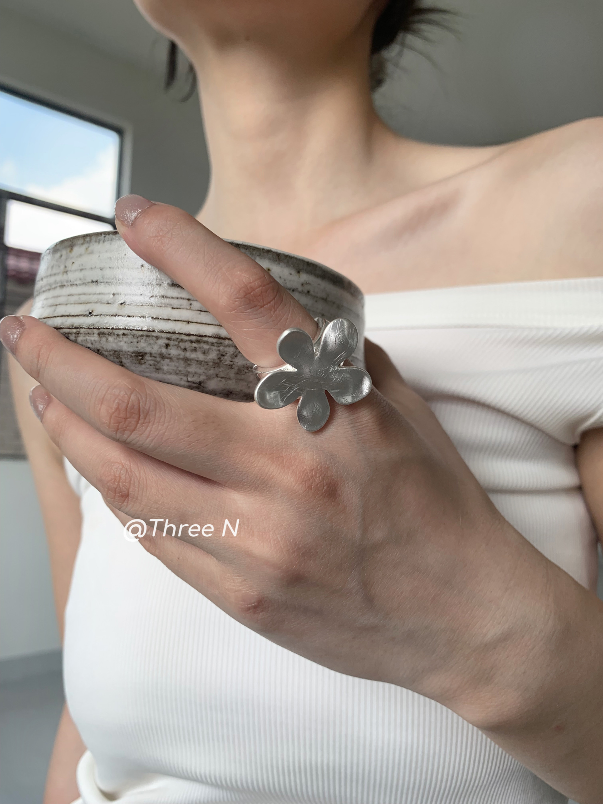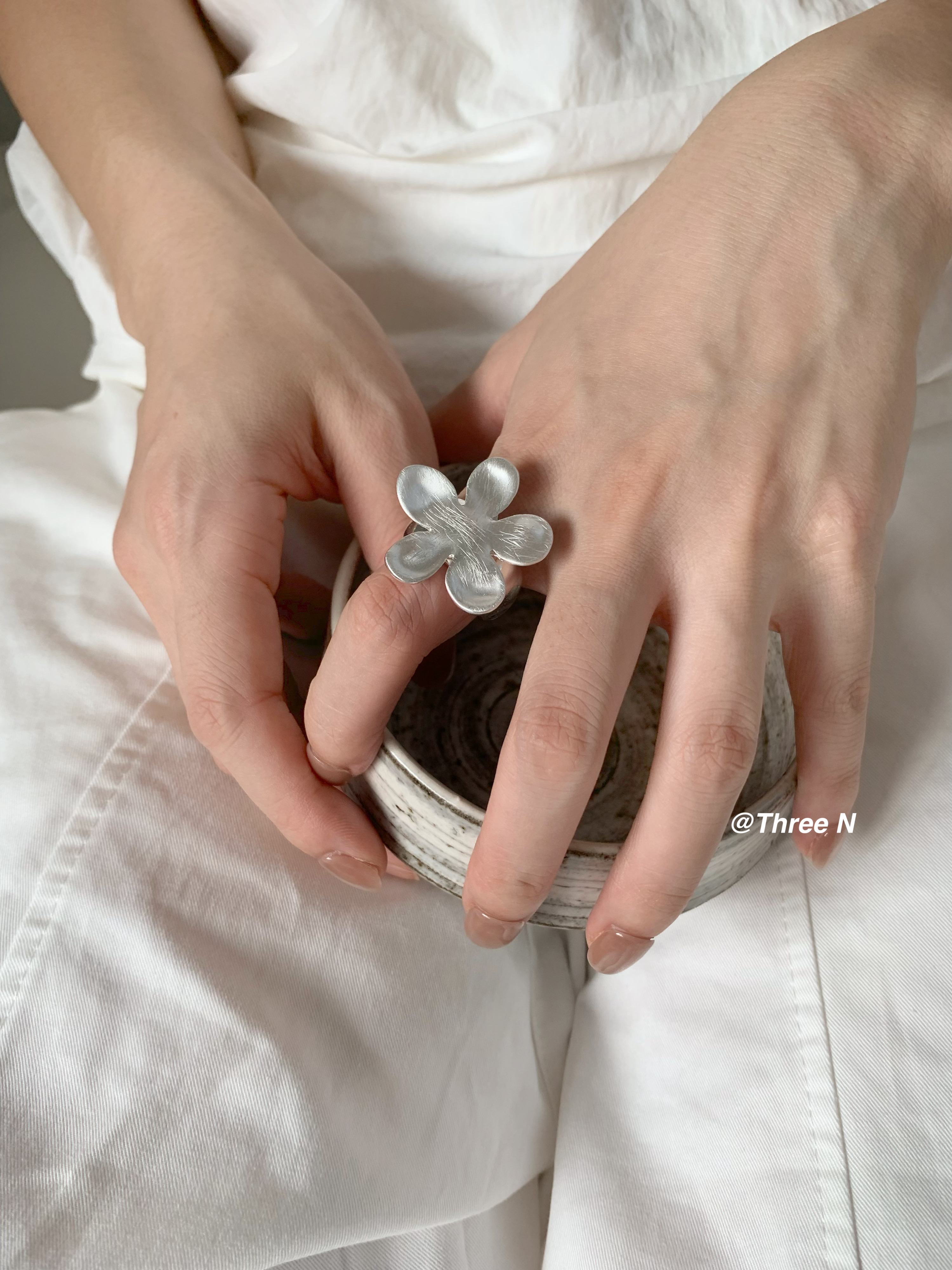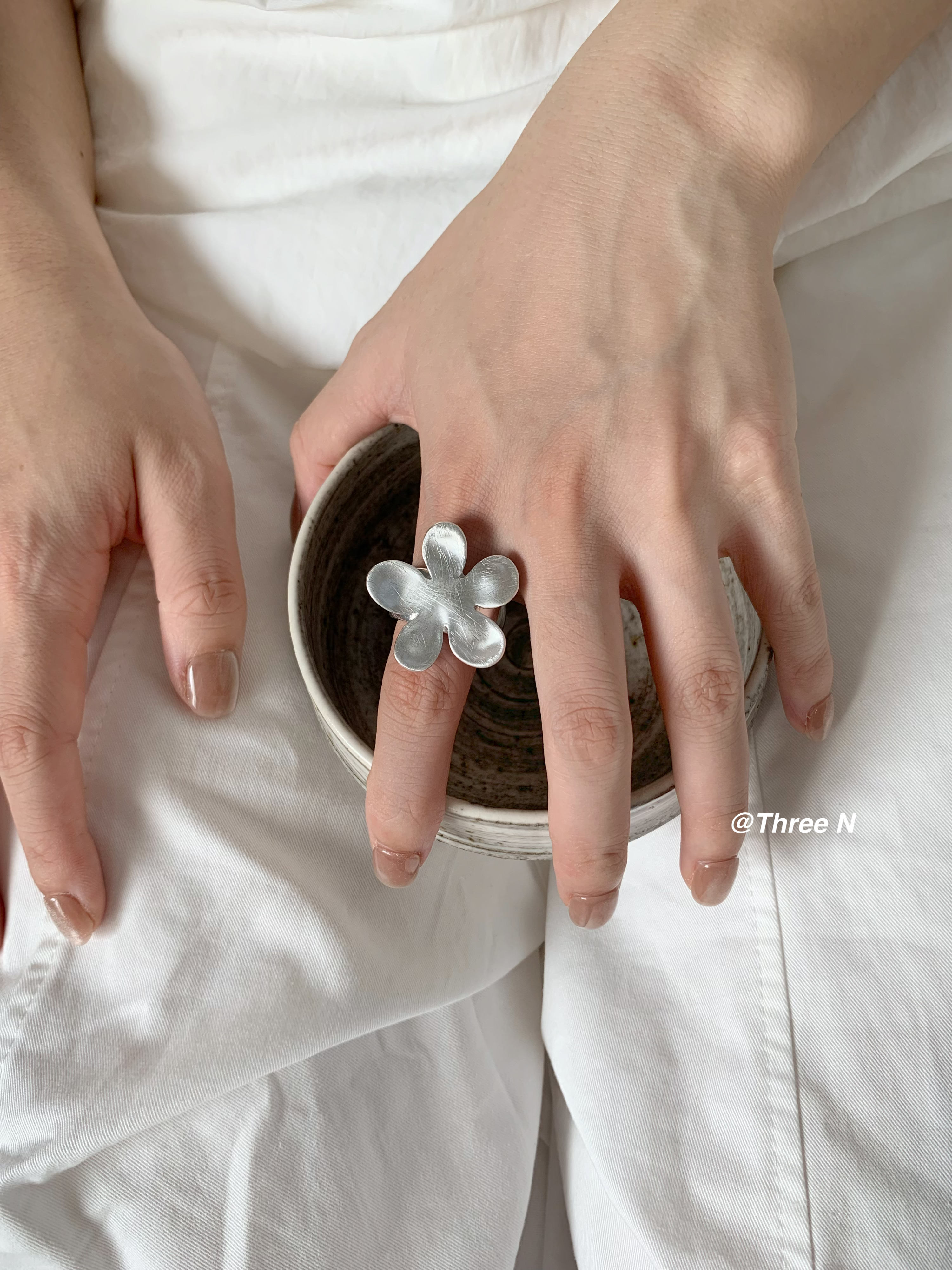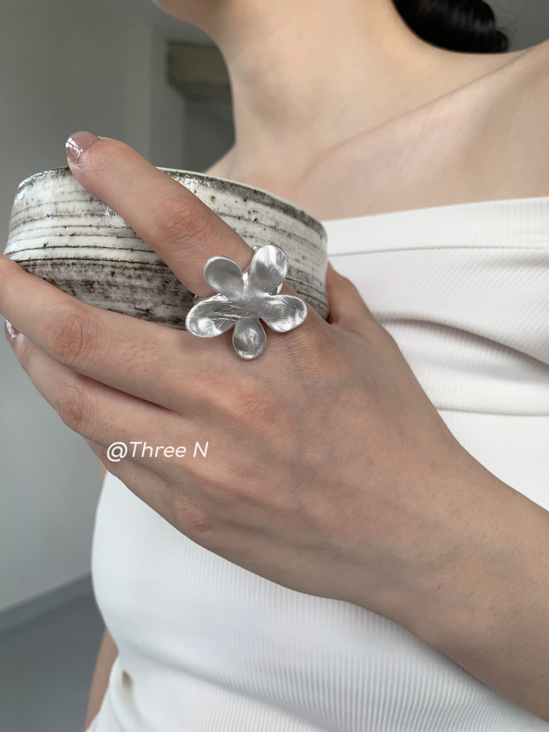 Three N Heavy Industry Silver Brushed Flower Ring Minimalist Elastic Adjustable ins Daily Index Finger Ring