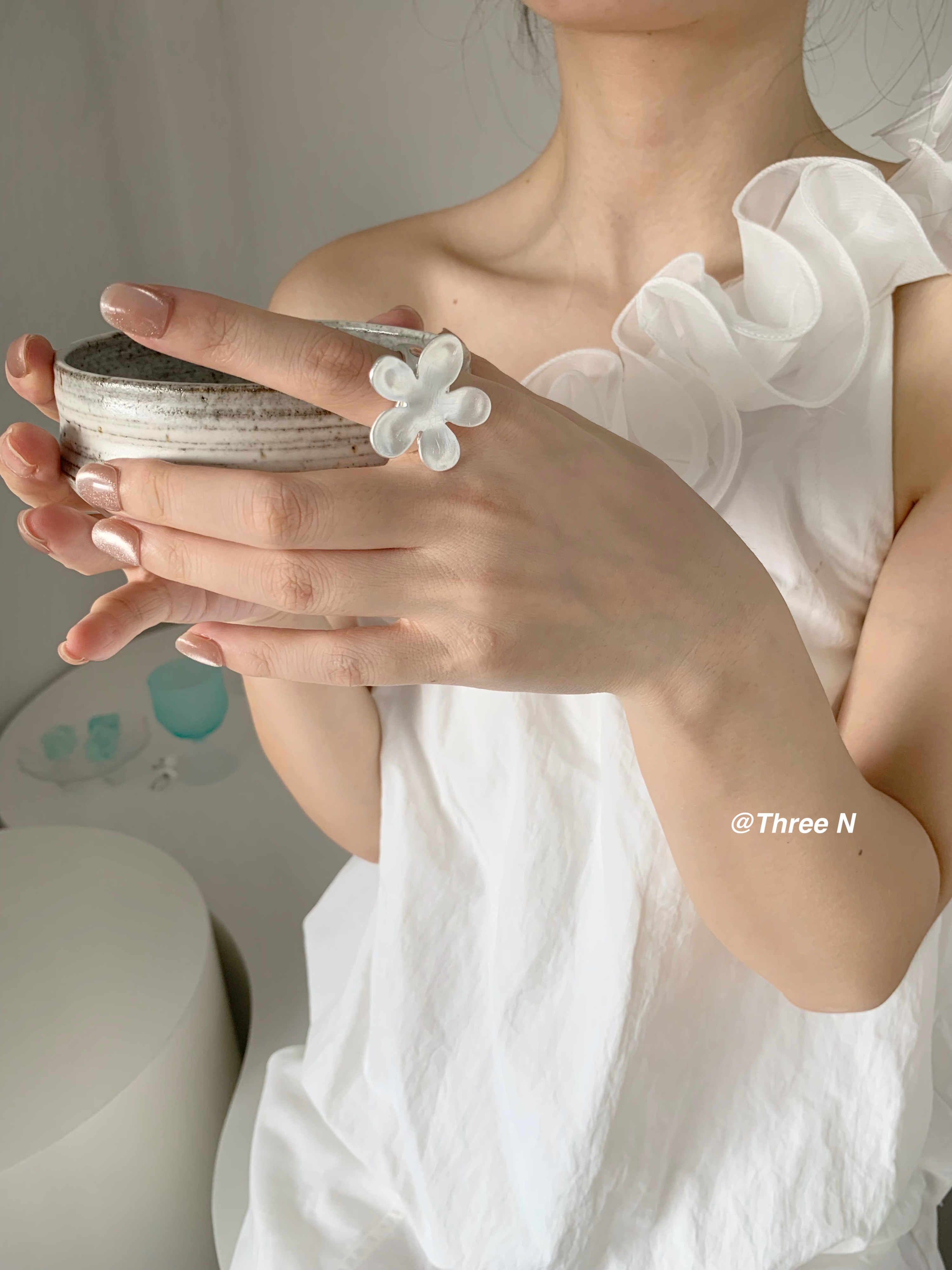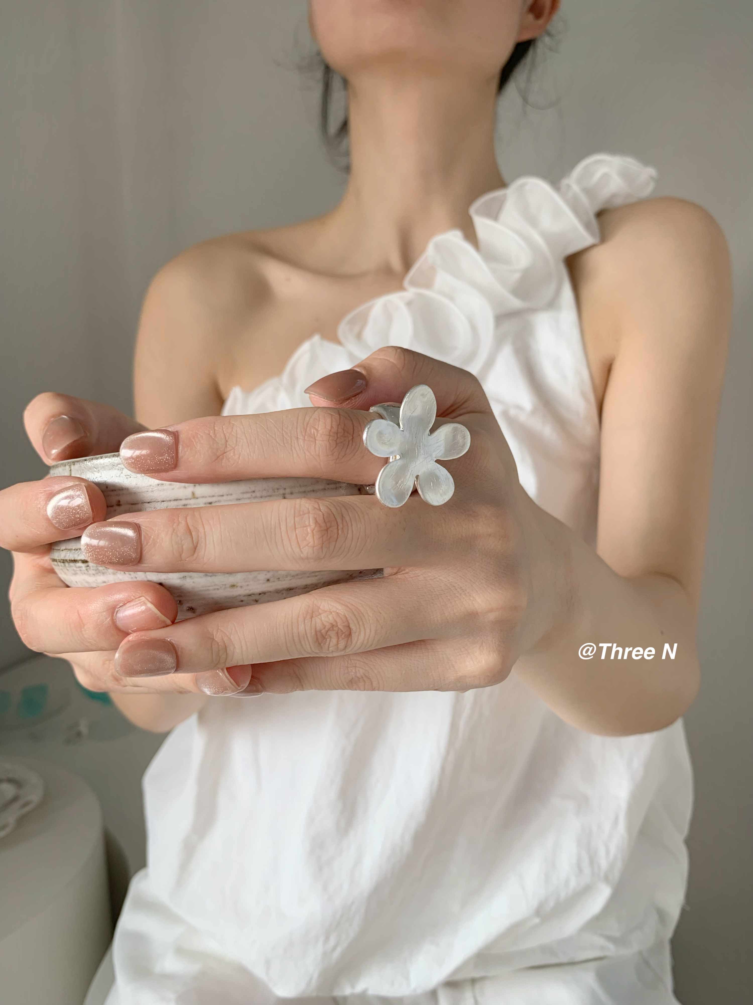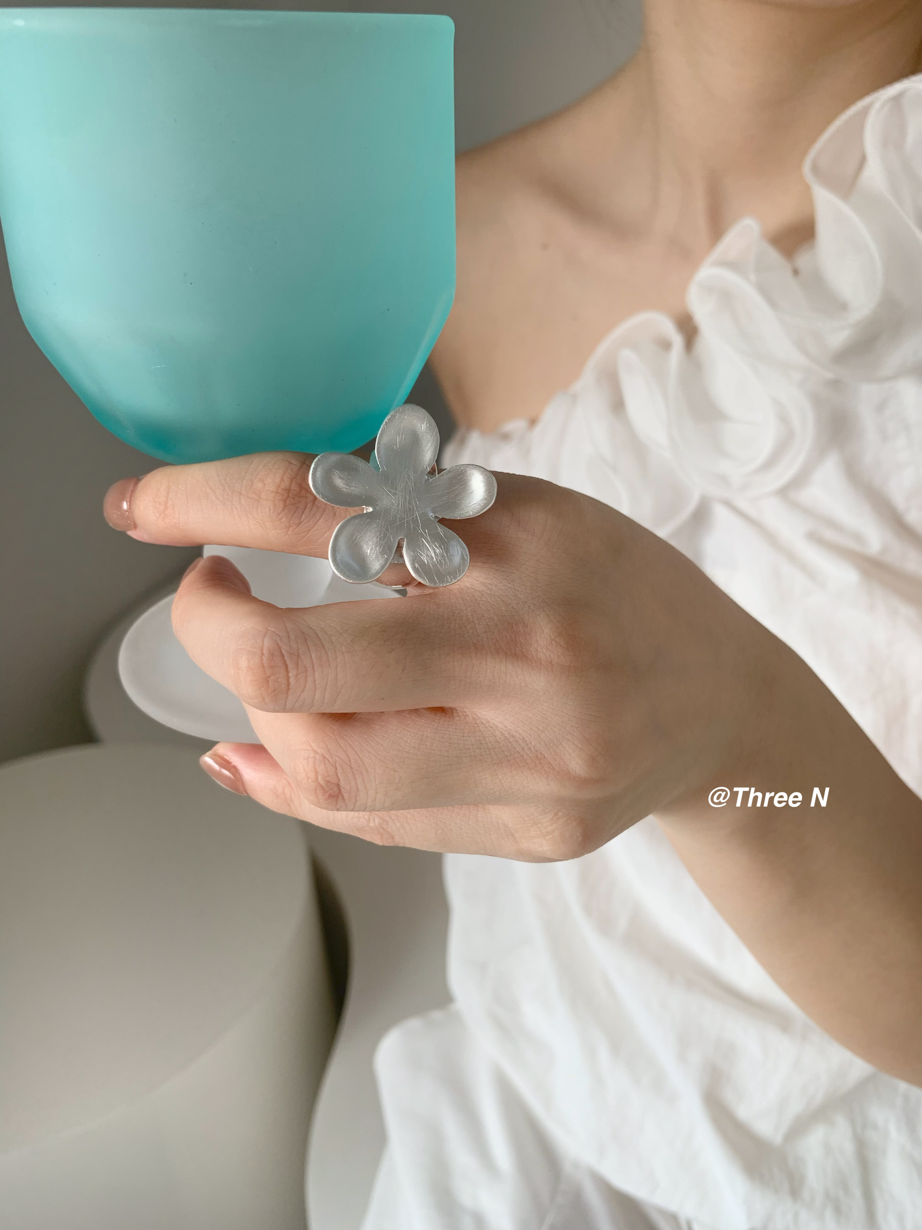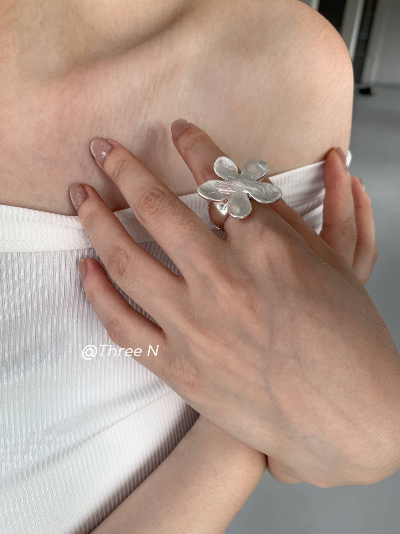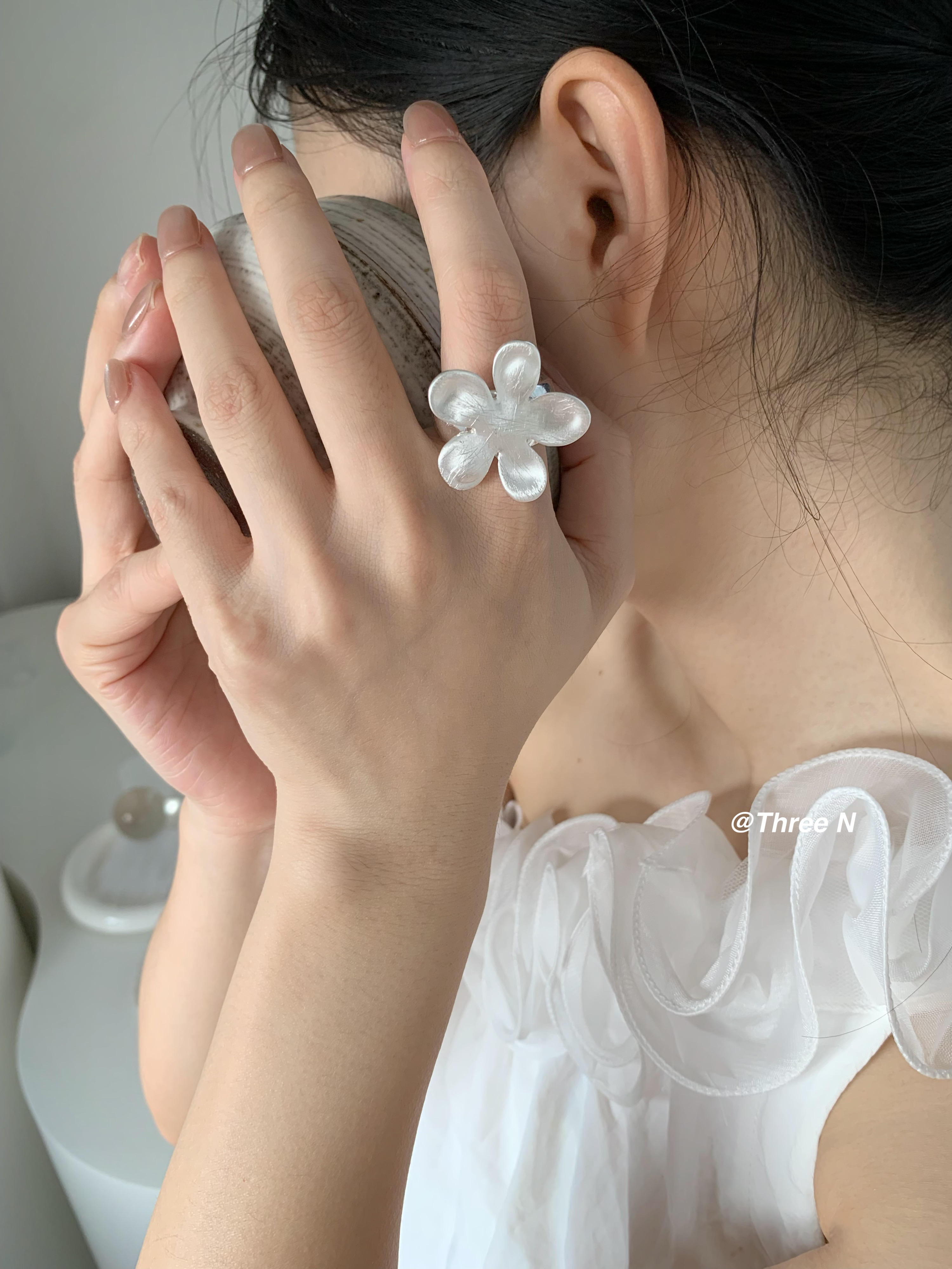 Three N Heavy Industry Silver Brushed Flower Ring Minimalist Elastic Adjustable ins Daily Index Finger Ring