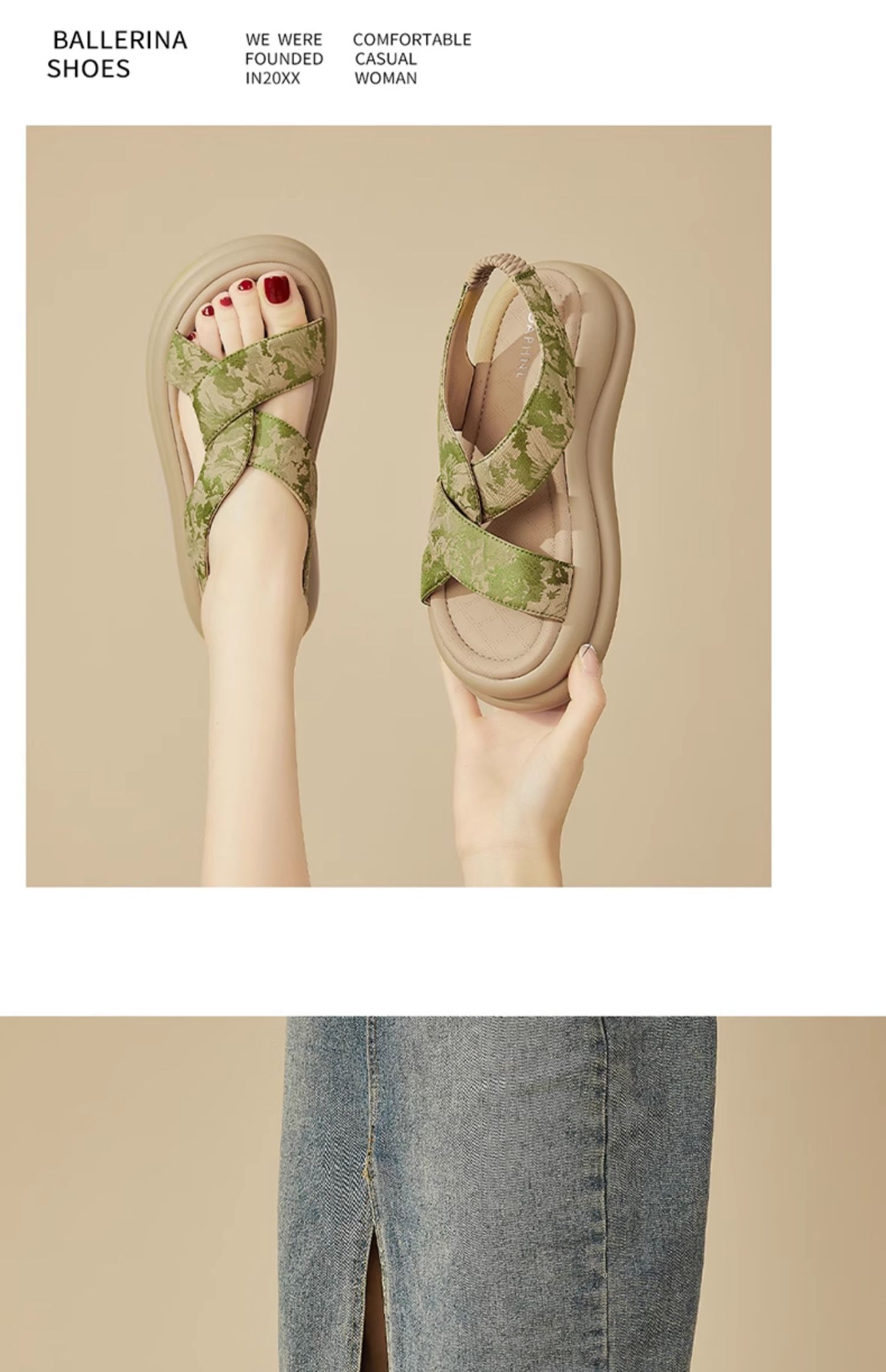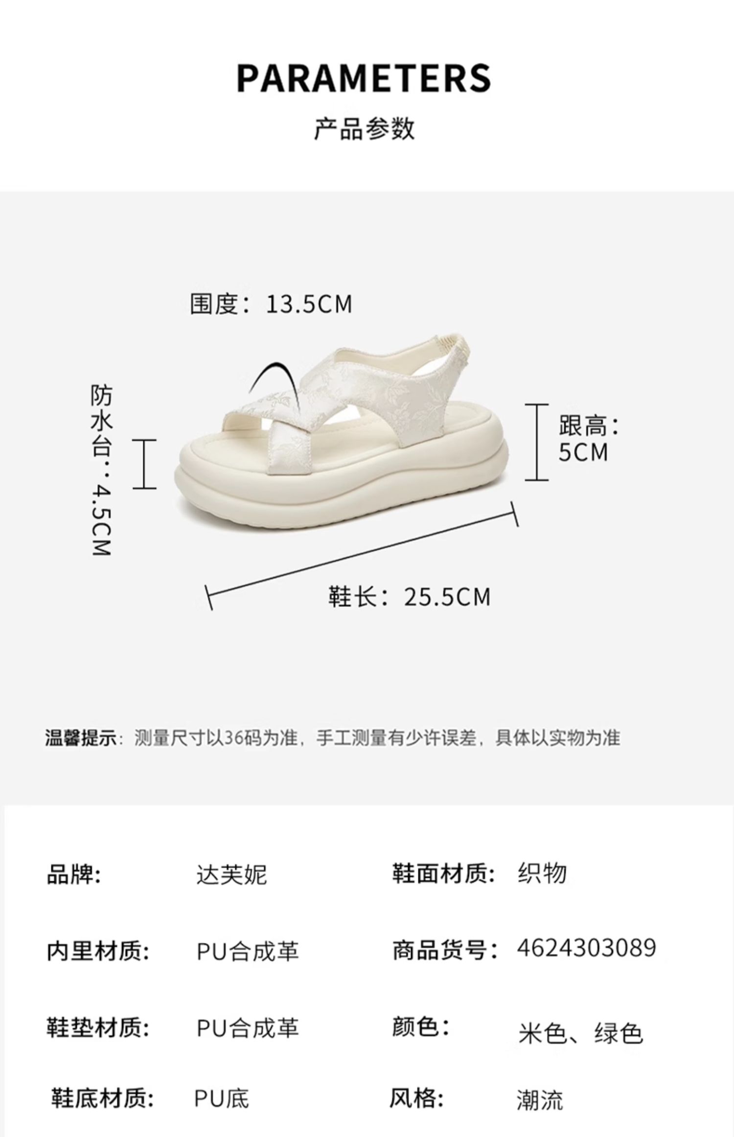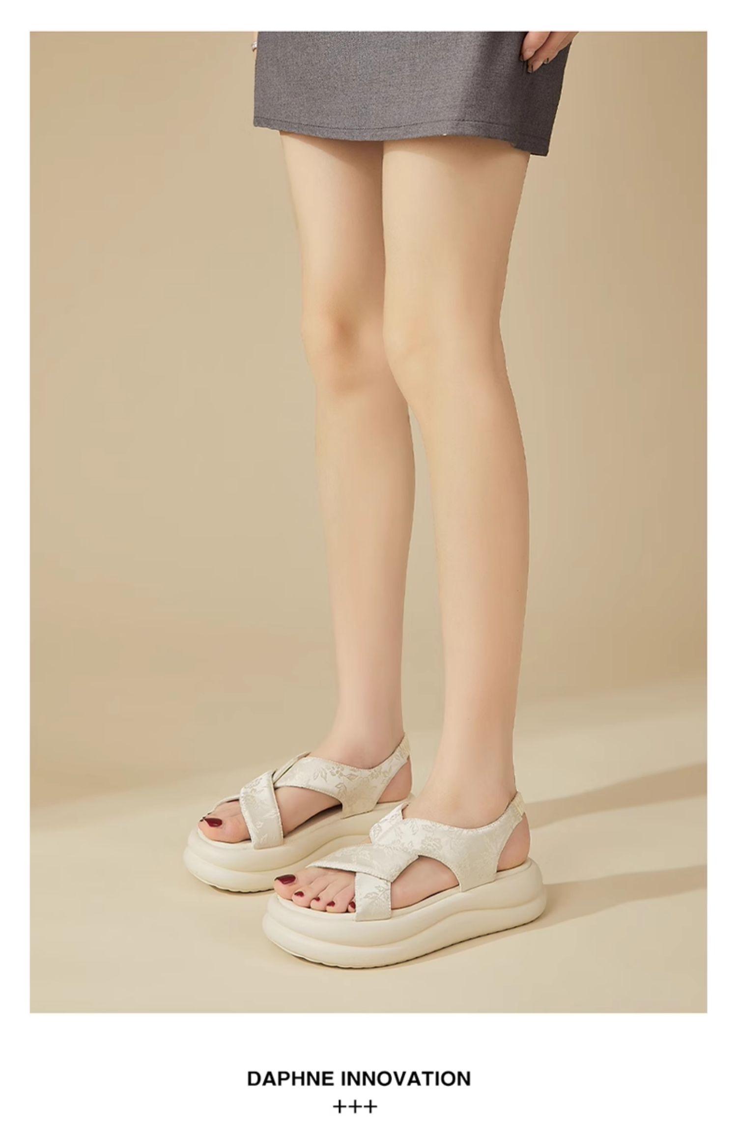 Daphne New Chinese-Style Thick-Soled Platform Sandals for Women, Summer Outdoor Wear, 2025 New Model, Beach Soft-Soled Non-Slip Slippers