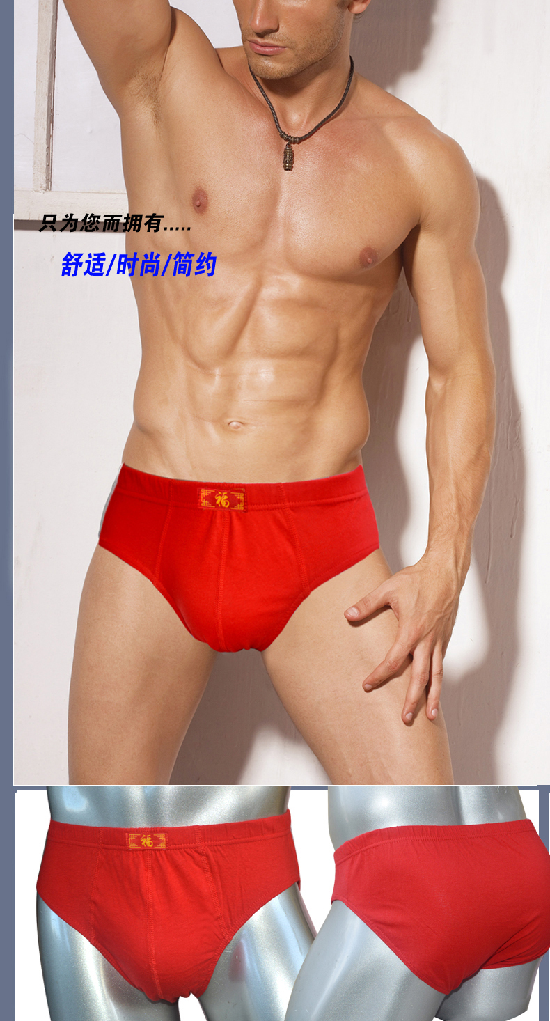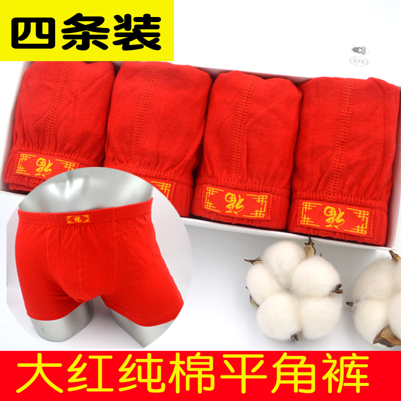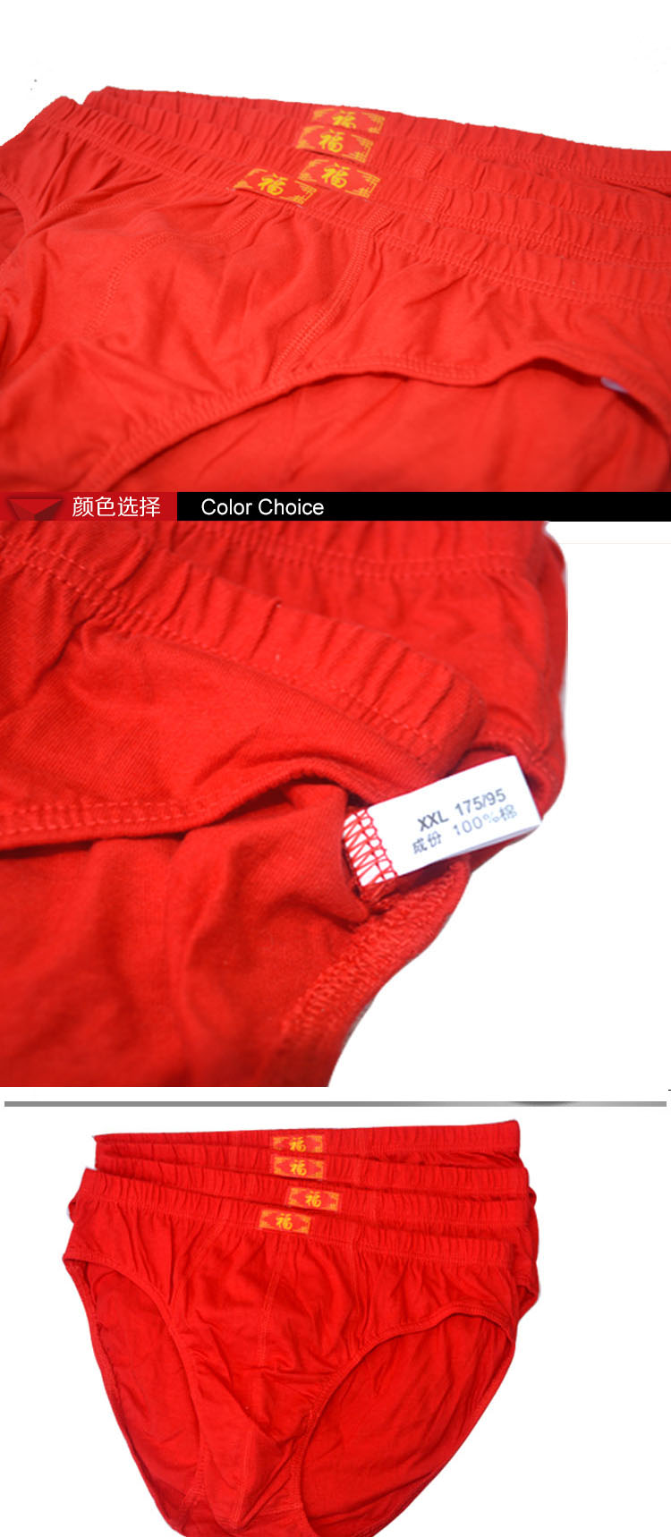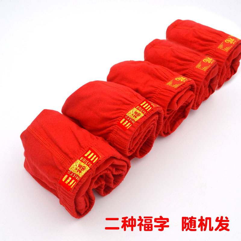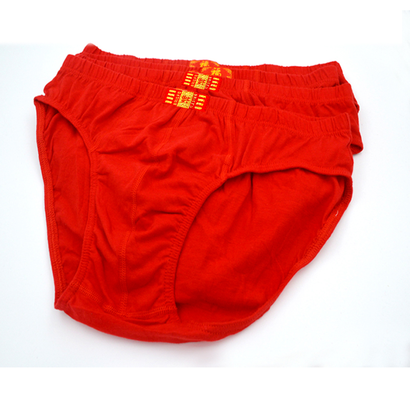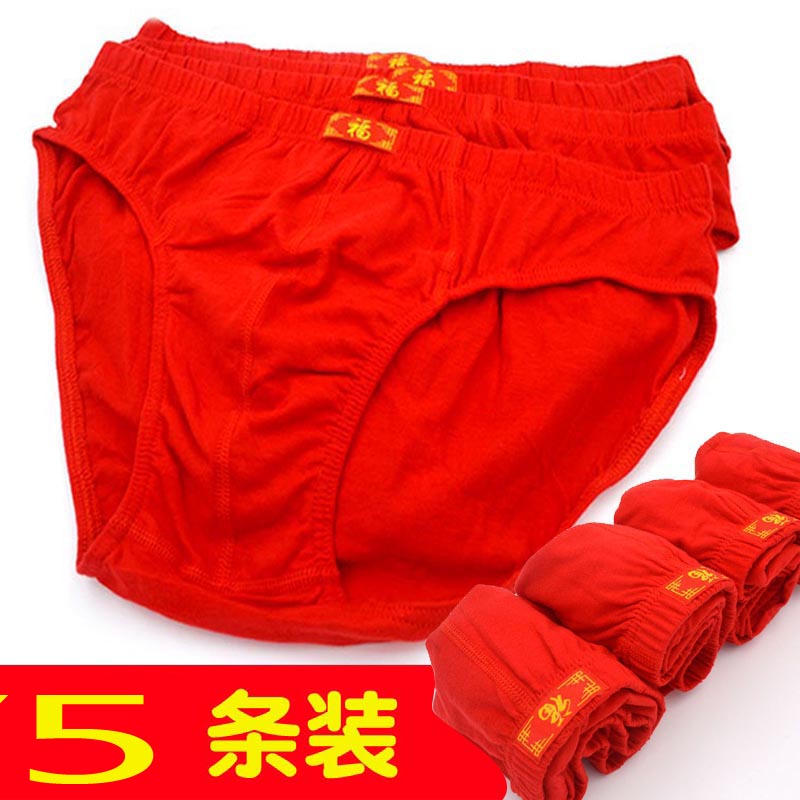 Five Pairs of Bright Red Cotton Men's Briefs for the Zodiac Year, Pure Cotton Mid-Waist Large Size Men's Briefs