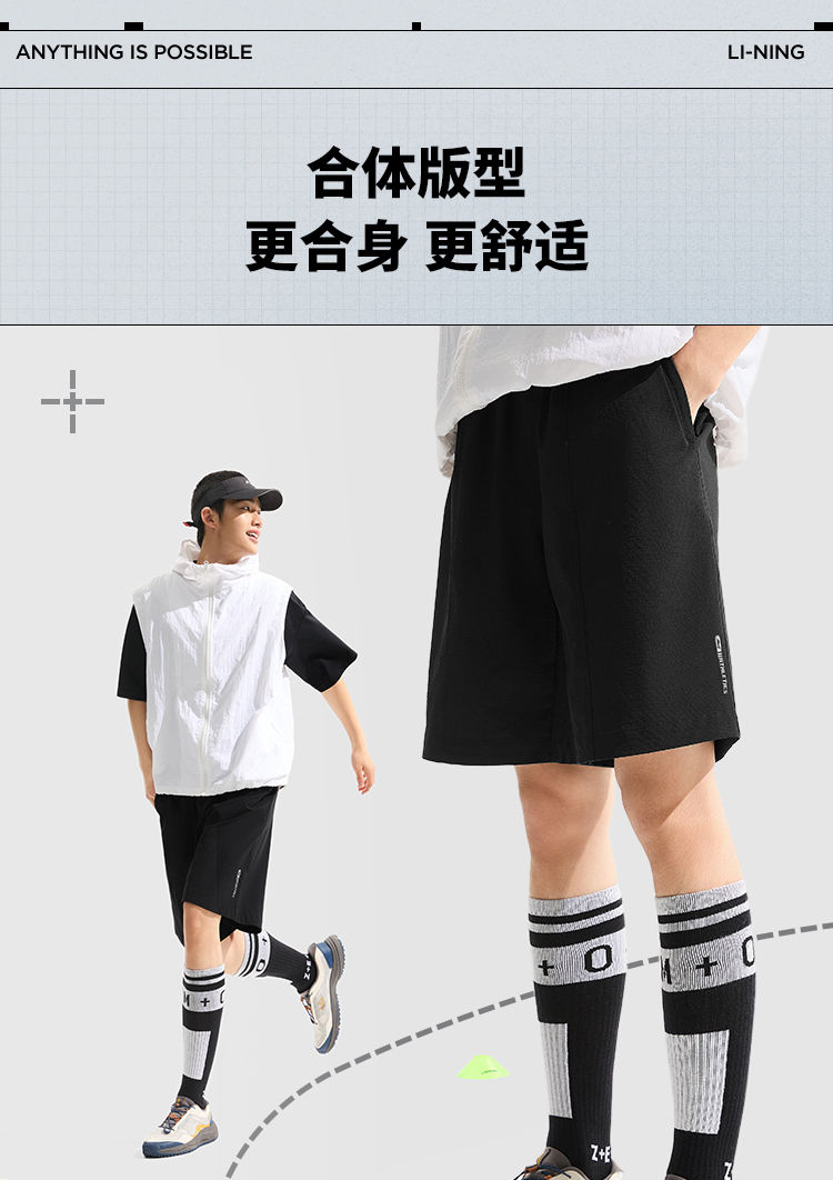 Li-Ning Men's Summer Running Quick-Dry Shorts Professional Training Fitness Pants with Pockets and Zipper Sports Shorts