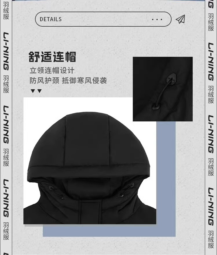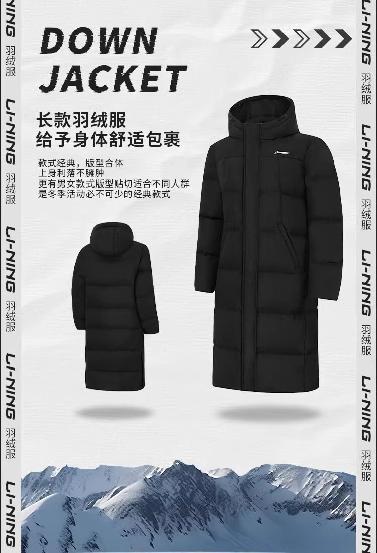 Li-Ning Long down Jacket for Men and Women, 2025 Winter Windproof Over-The-Knee Duck down Warm Hooded Coat Aymu289