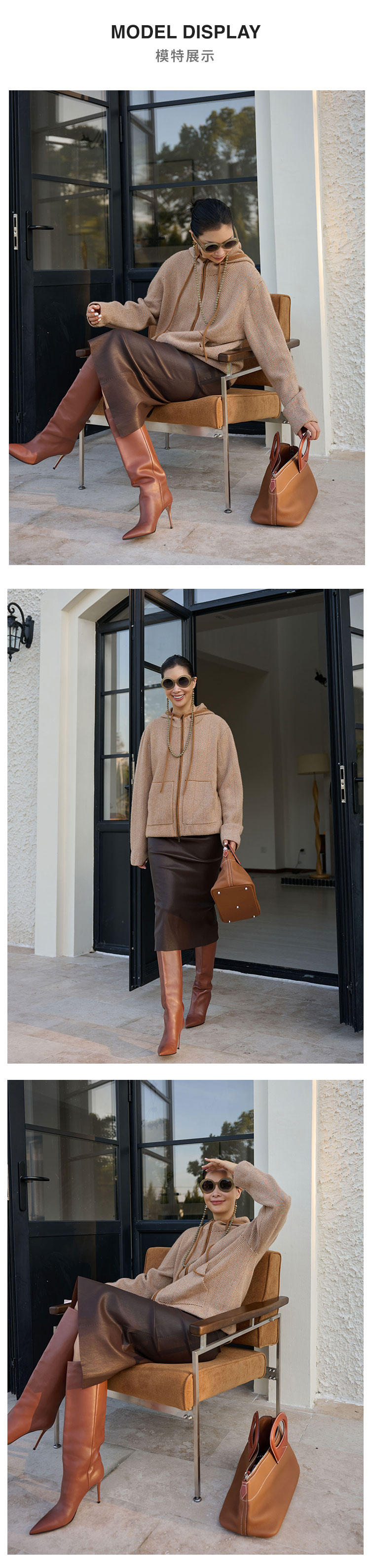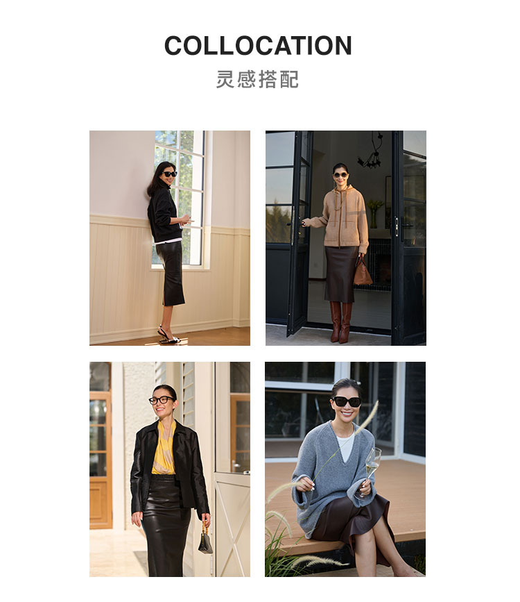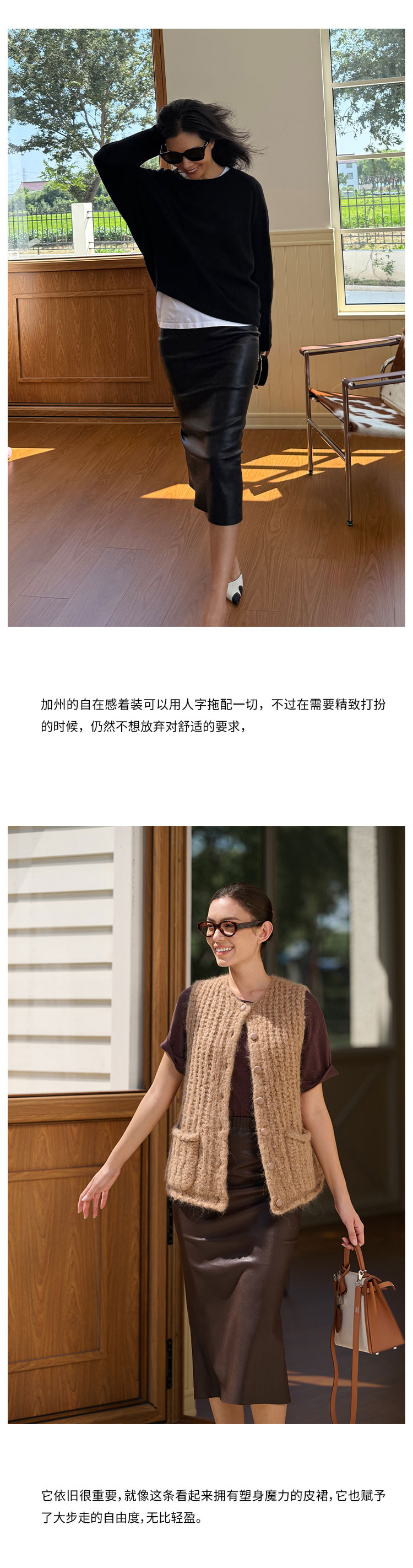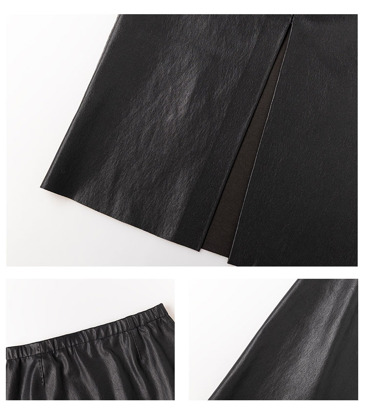 Amandax's "Beverly Day and Night" Series Stretch Lambskin Over-The-Knee Slim-Fitting Slit Skirt