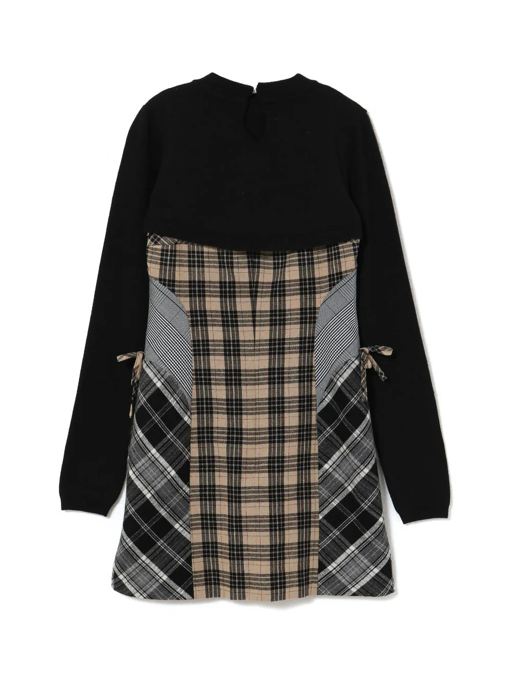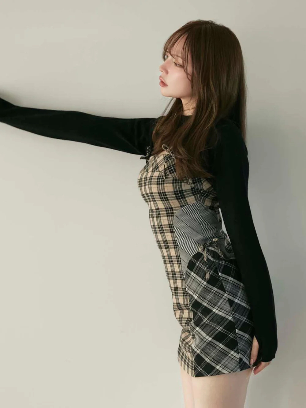 Andmary Same Style Niche Retro Plaid Patchwork Two-Piece Dress Women's Long-Sleeved Waist-Cinching Bodycon Skirt