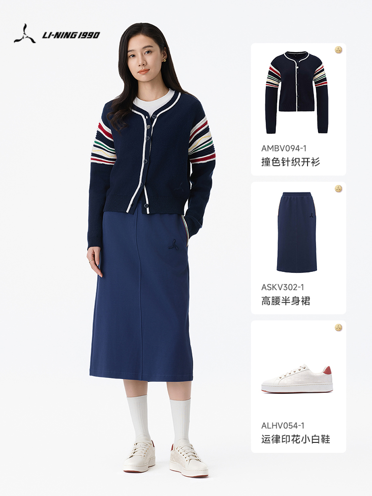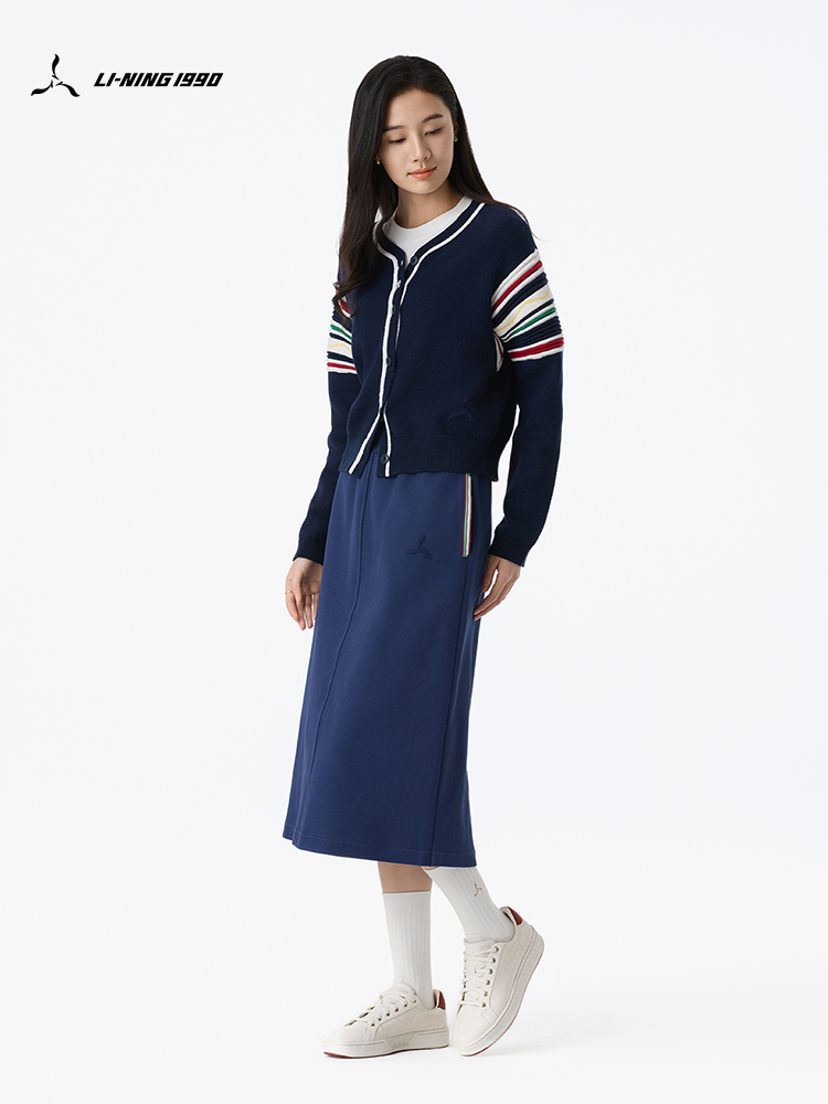 [Cotton] Li-Ning1990 Women's Spring/Summer Casual Straight High-Waisted Midi Skirt Li-Ning1990