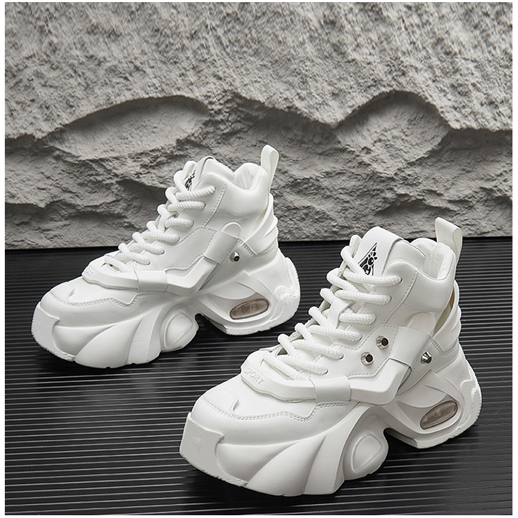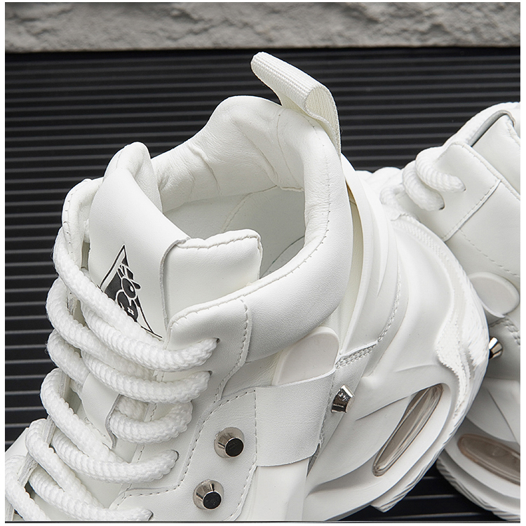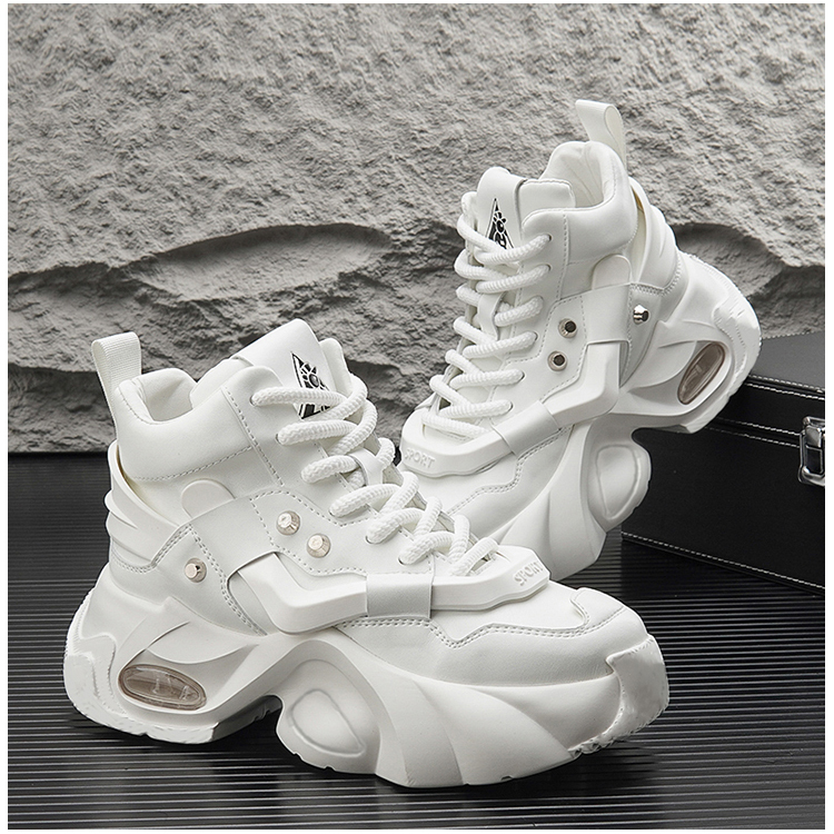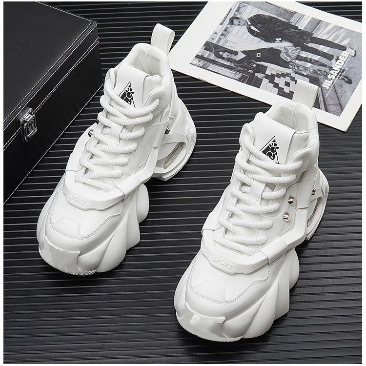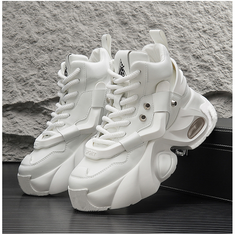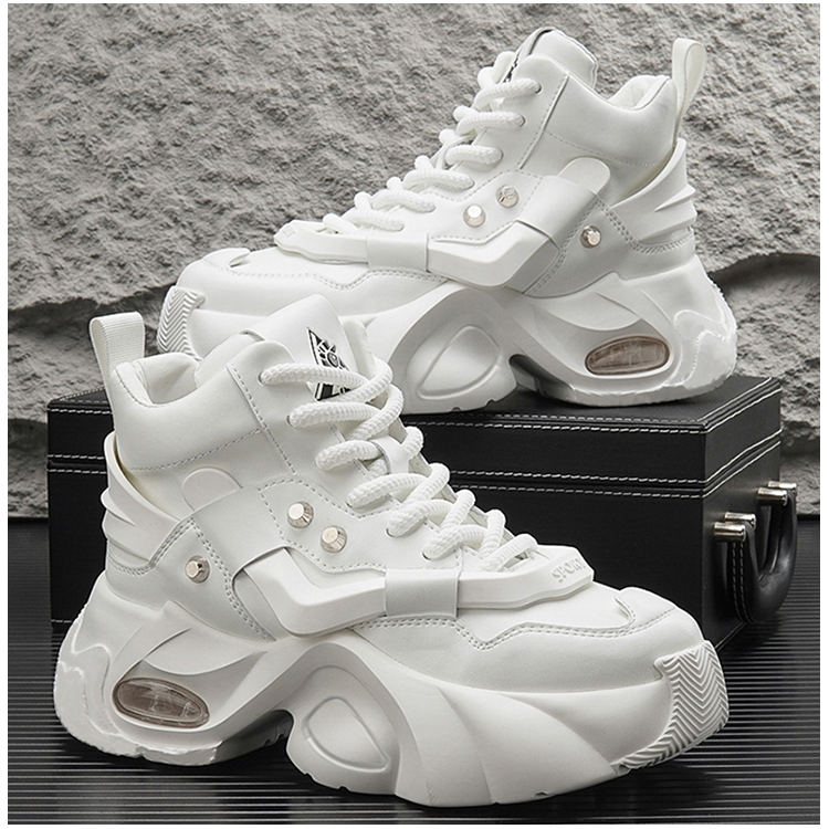 White High-Top Shoes for Men 2025 New Winter Fleece-Lined Trendy Dad Shoes Men's Thick-Soled Height-Increasing Martin Boots