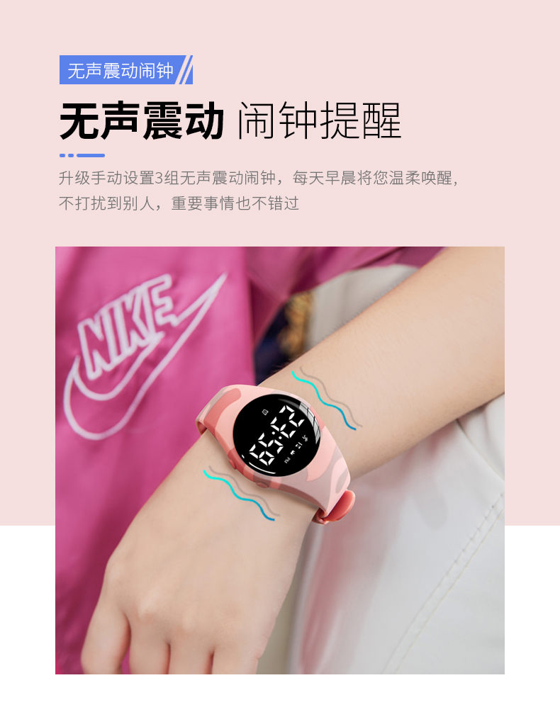 Middle School Student Watch for Girls, Waterproof Vibrating Alarm Clock Bracelet, Female Model for Elementary School Students, Junior High School Girls, Children's Electronic Watch for Girls