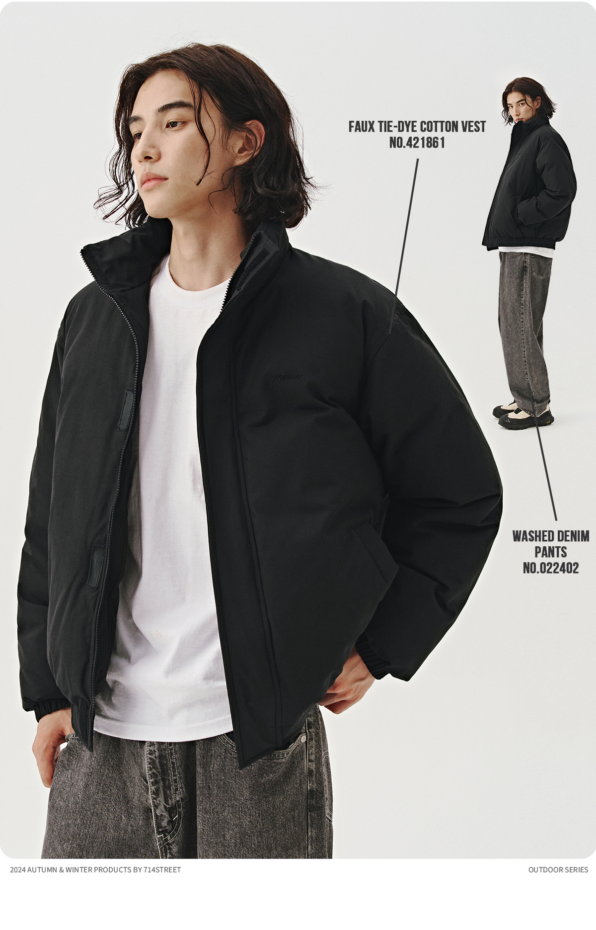 714Street Japanese-Style Simple Windproof Loose Cotton Jacket for Men 2024 Winter New Outdoor Three-Proof Thick Coat