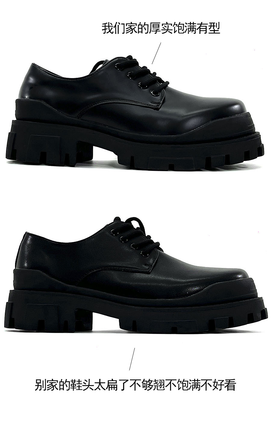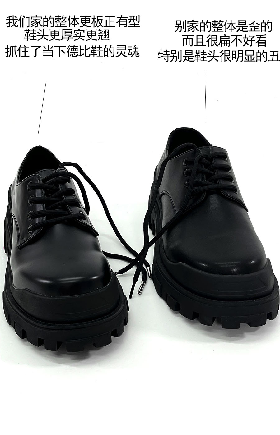 Paris Thick-Soled Derby Shoes for Men, High-End Black Height-Increasing Cleanfit Leather Shoes, British Style Commuting Formal Shoes, Large Toe Shoes