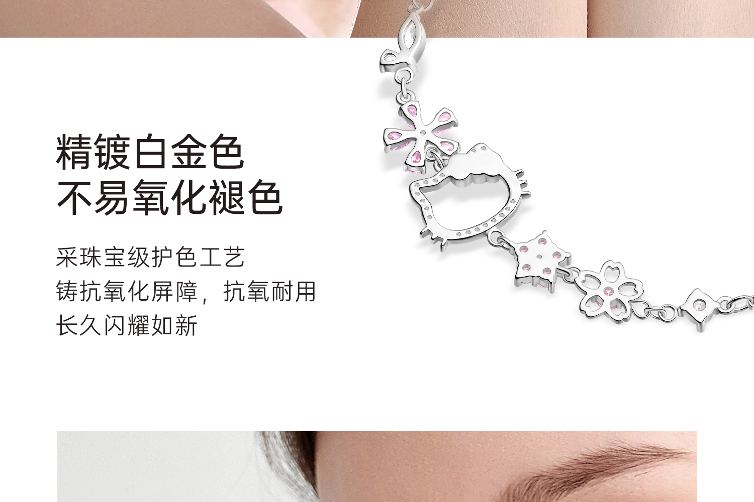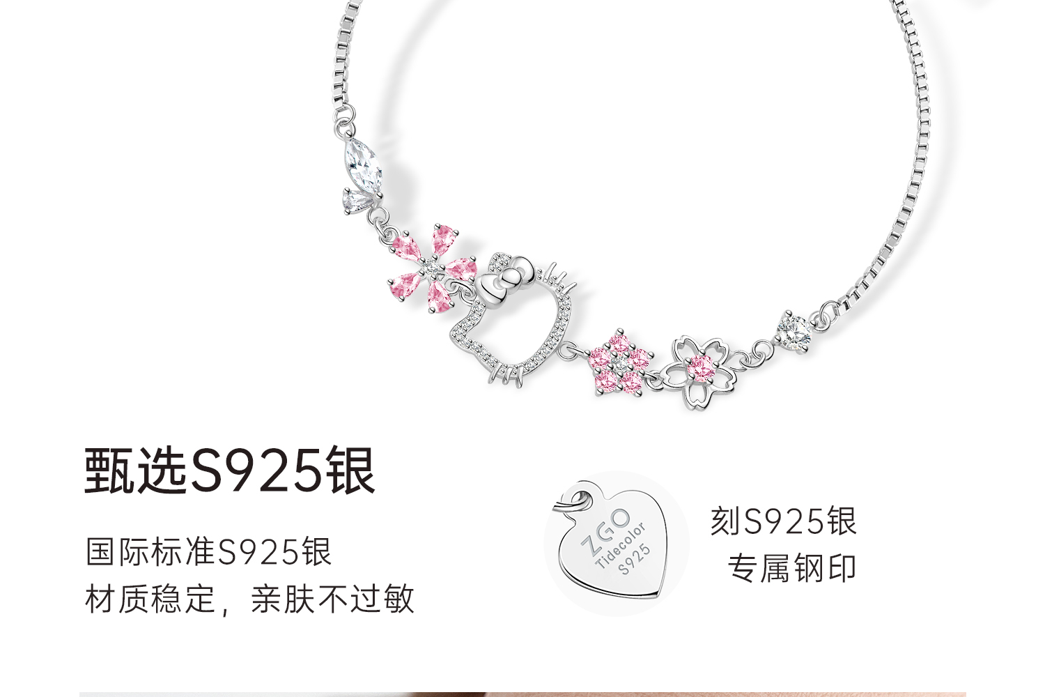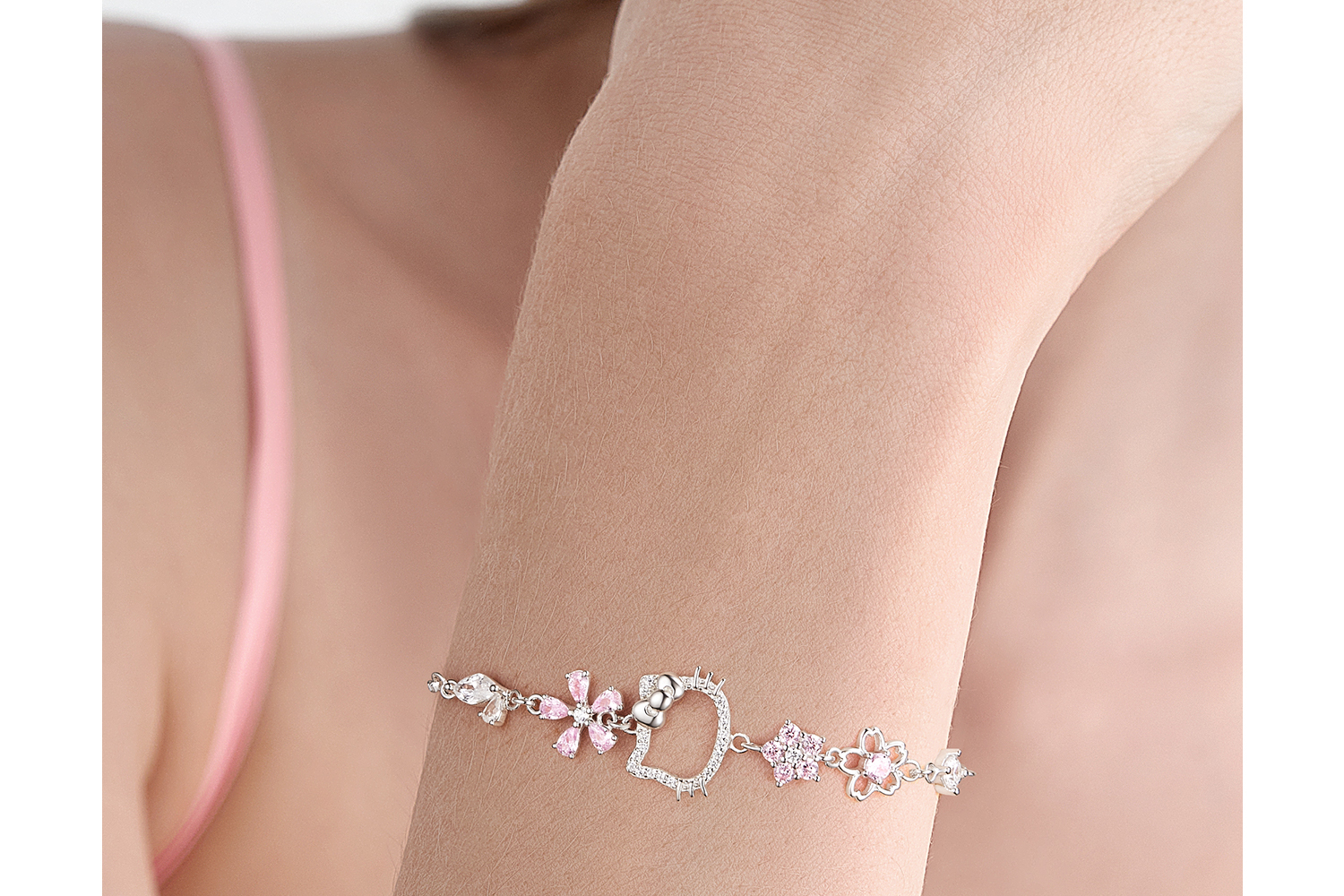 Hello Kitty Genuine Sanrio Women's Bracelet, Sterling Silver Bracelet for Girls, Gift for Best Friend's Birthday