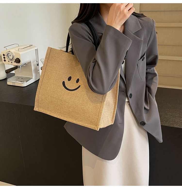 Canvas Bag Women's Handbag Large Capacity Tote Bag 2025 New Fashion Outing Cartoon Linen Handbag