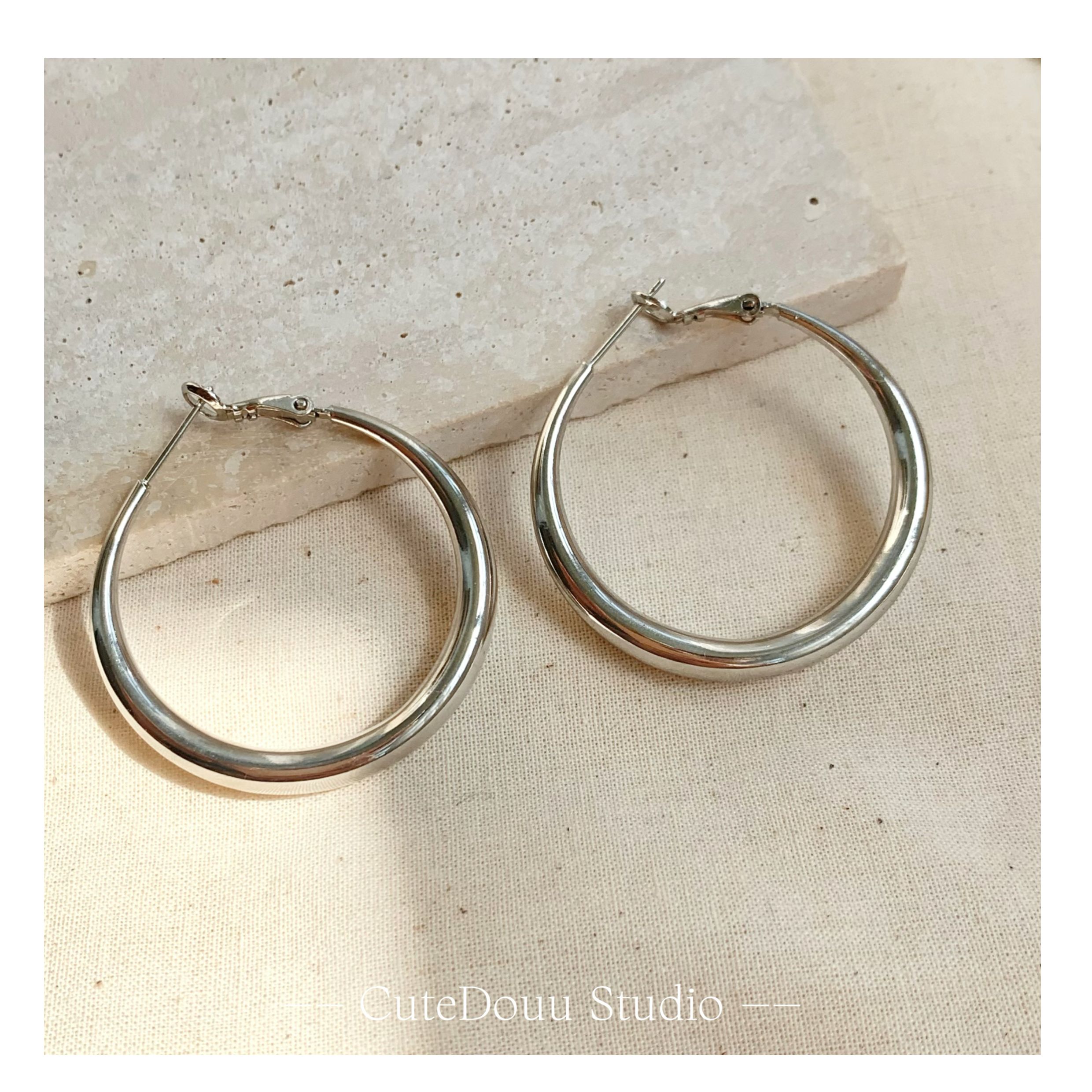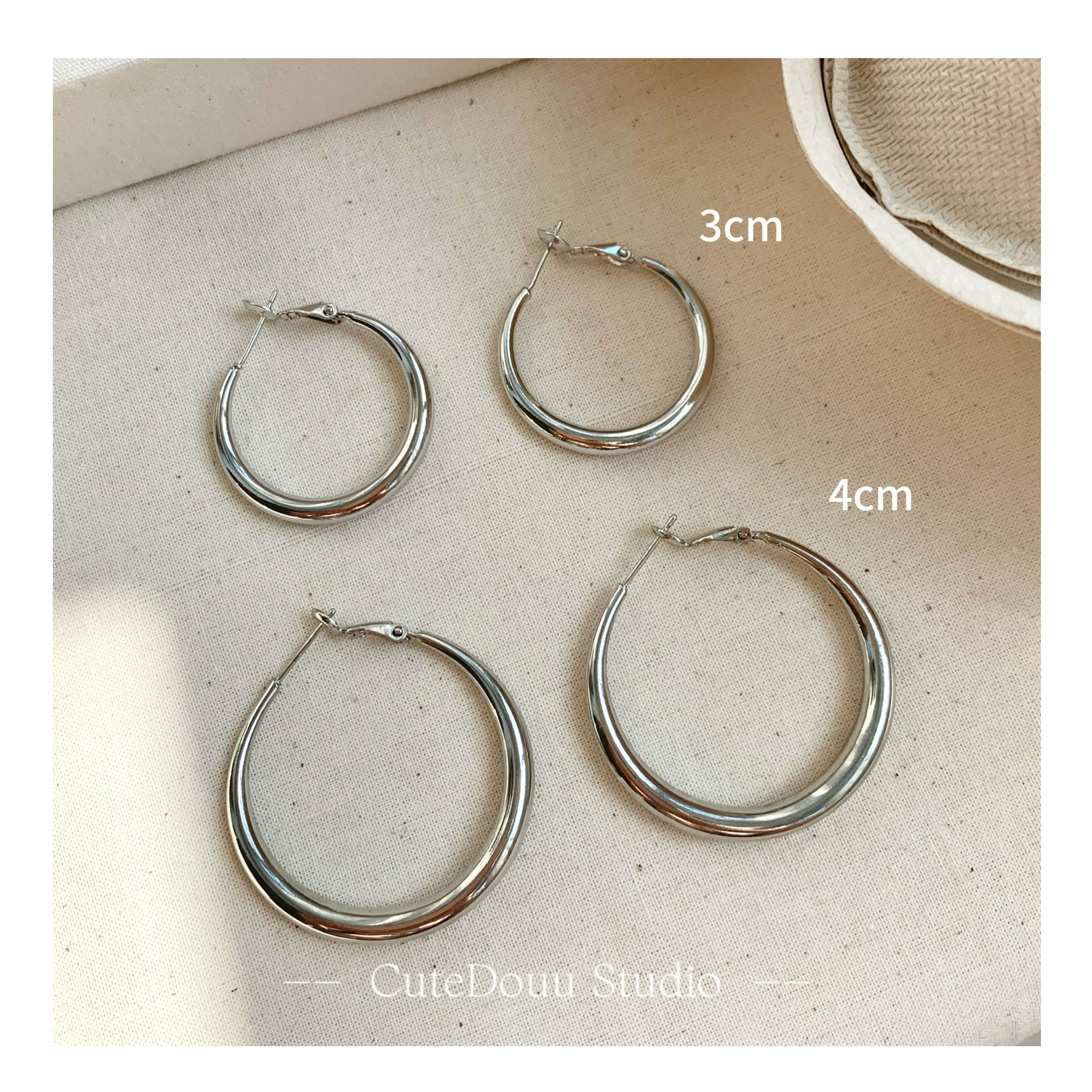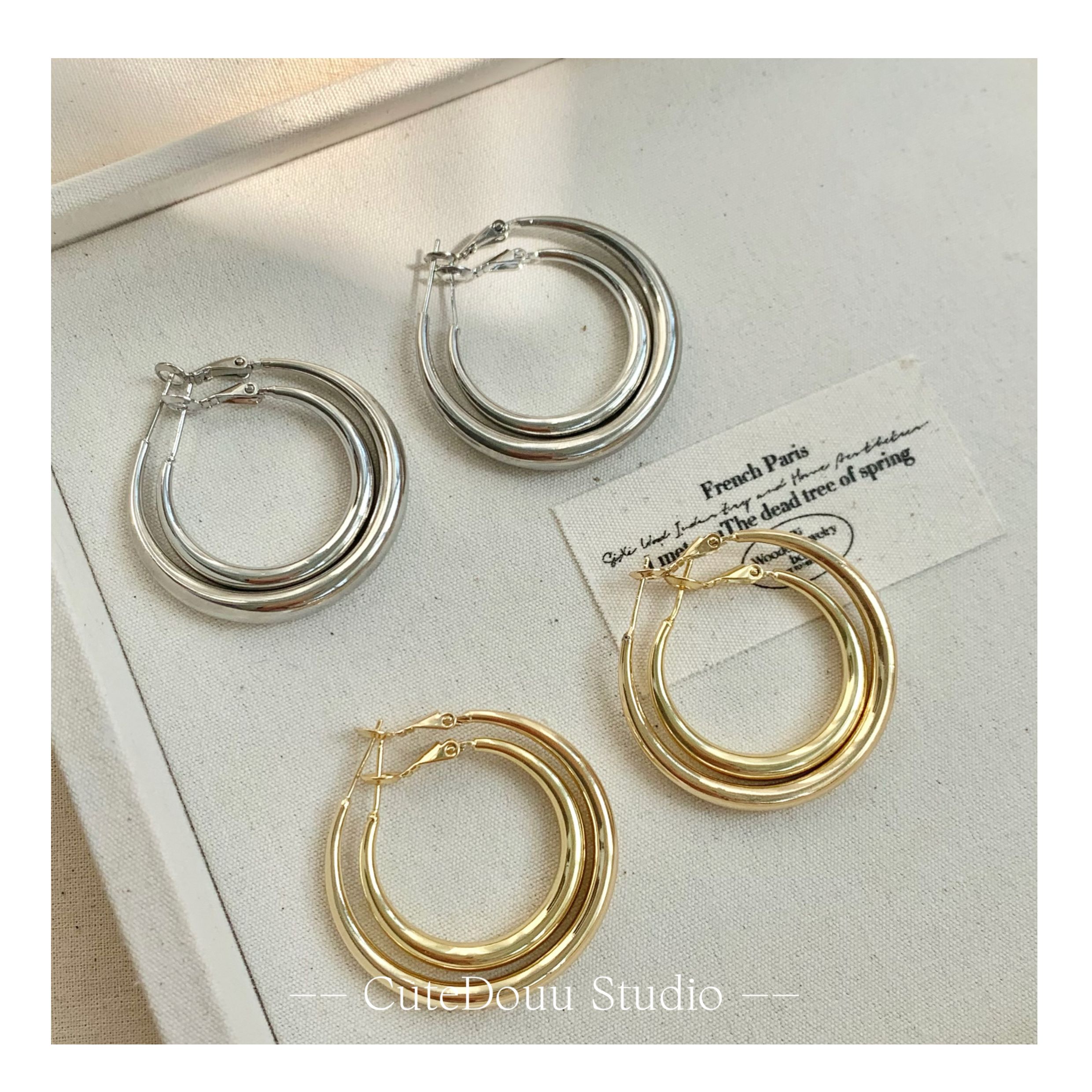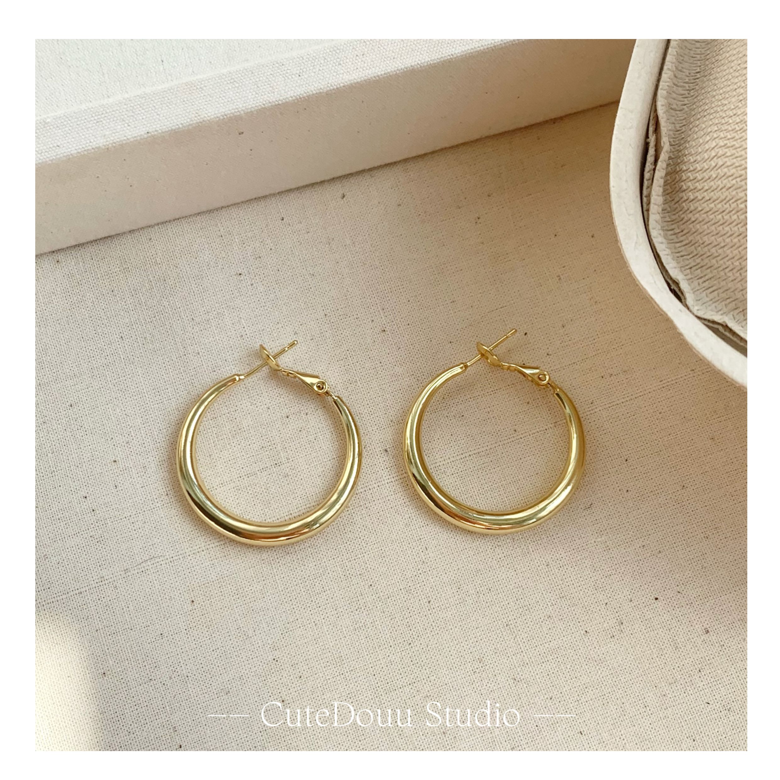 Cutedouu Round Face Tiancai 4.0 with Ear Clips! Liu Yifei's Same Style Metal Earrings, Plain Hoop Earrings