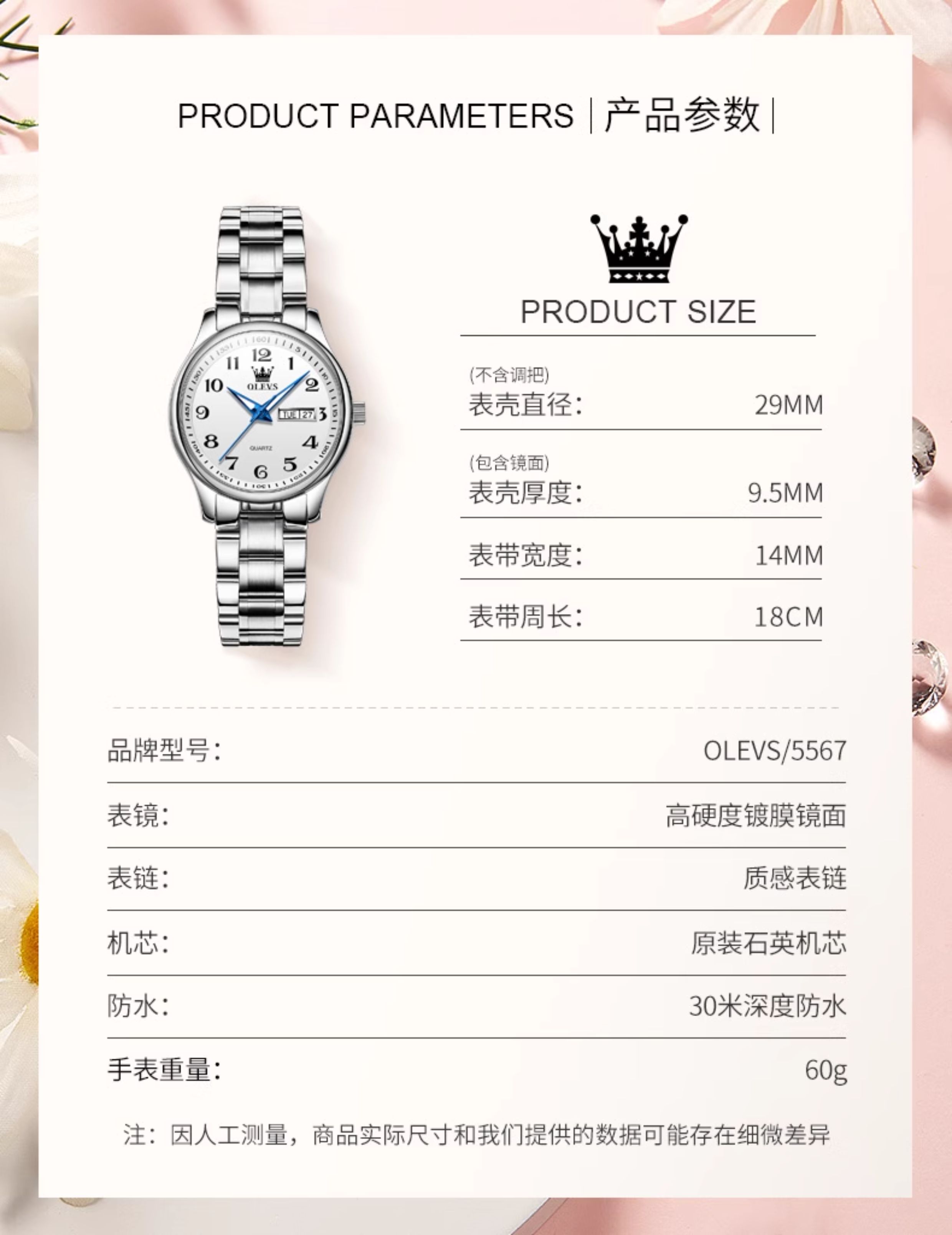 Oris Women's Watch 2025 New Model Light Luxury Niche Simple Digital Elegant Waterproof Brand Quartz Women's Watch