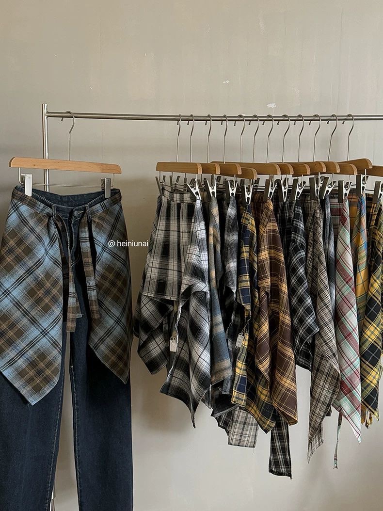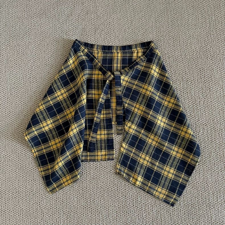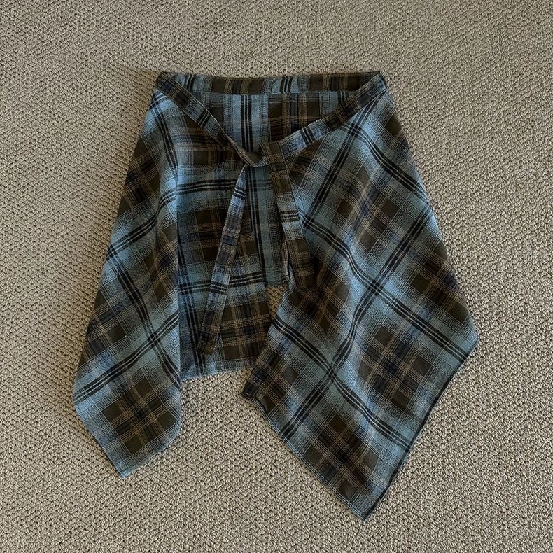Trendy Layered Plaid Skirt for Women, 2025 Autumn New High-Waisted Tie Versatile A-Line Short Skirt