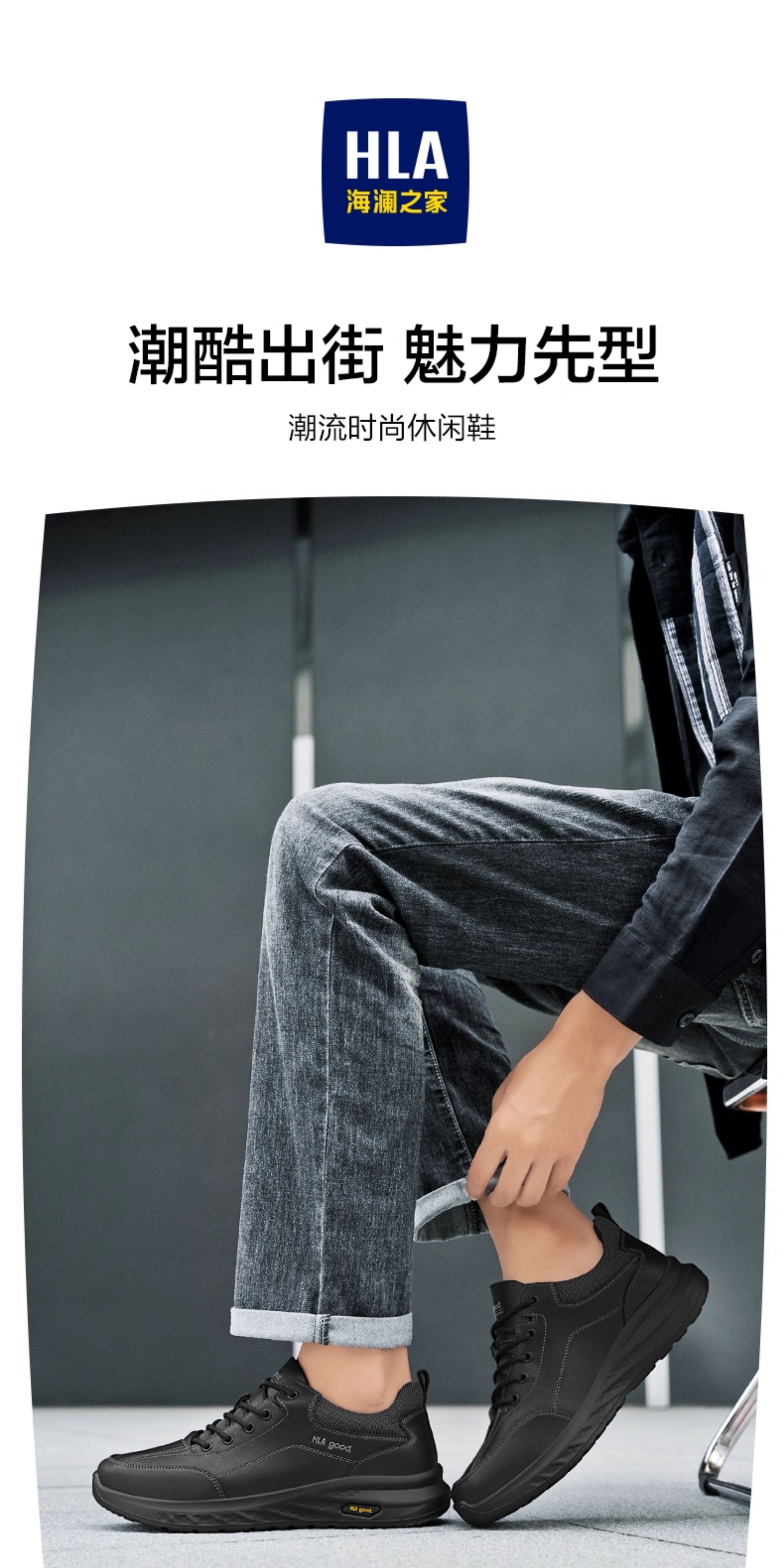 Heilan Home Men's Shoes 2025 New Autumn and Winter Black Leather Shoes Dad's Men's Soft Sole Business Casual Sports Shoes