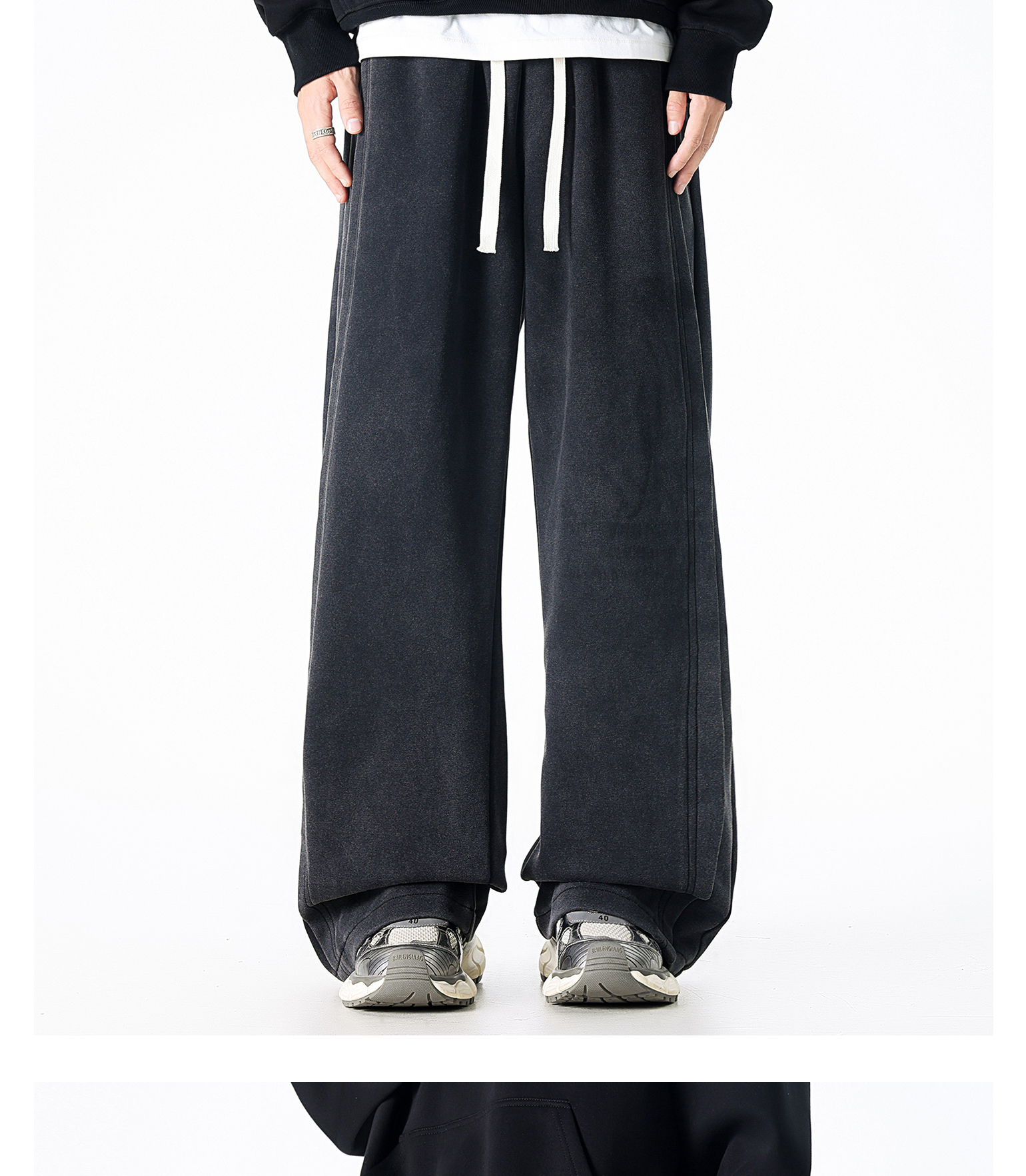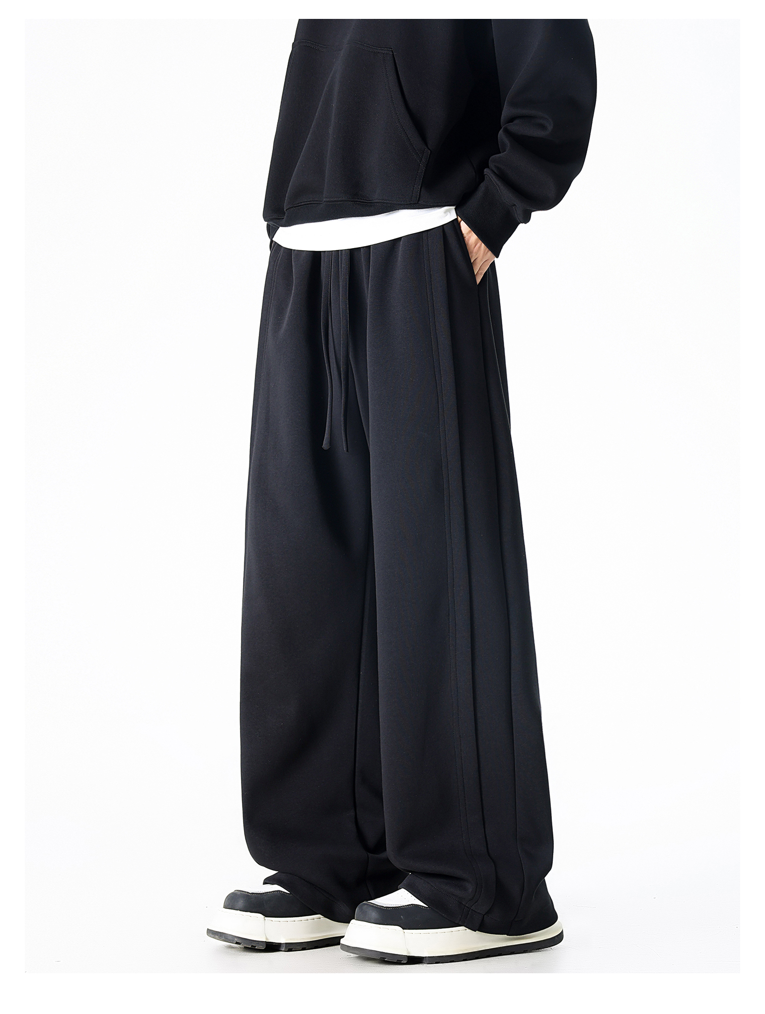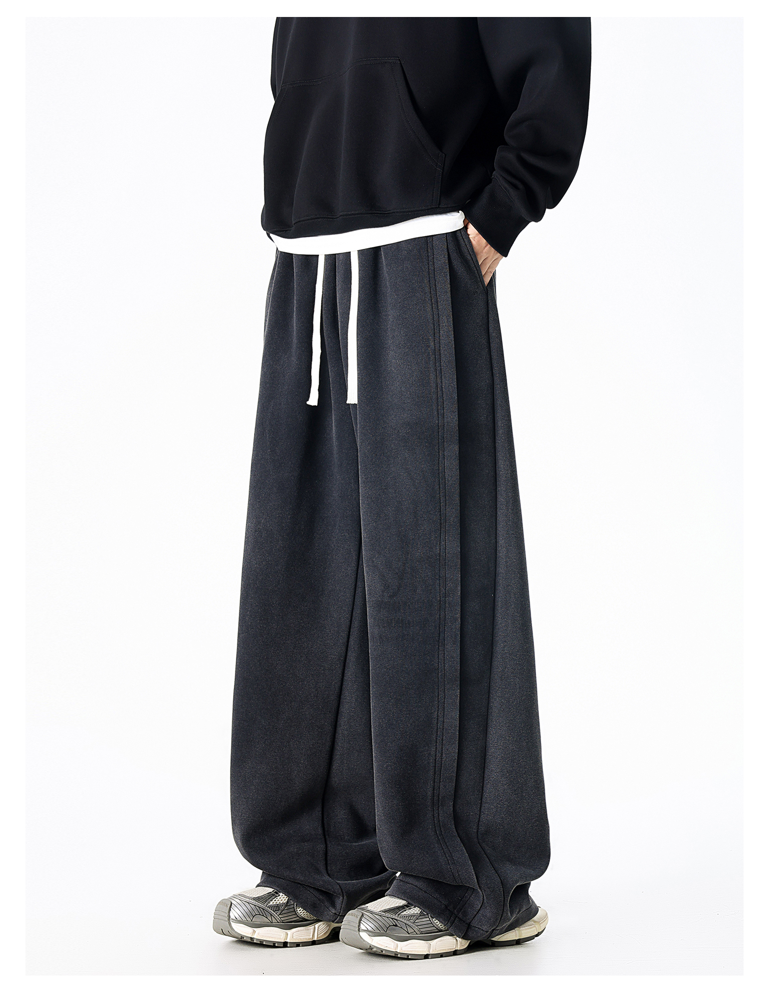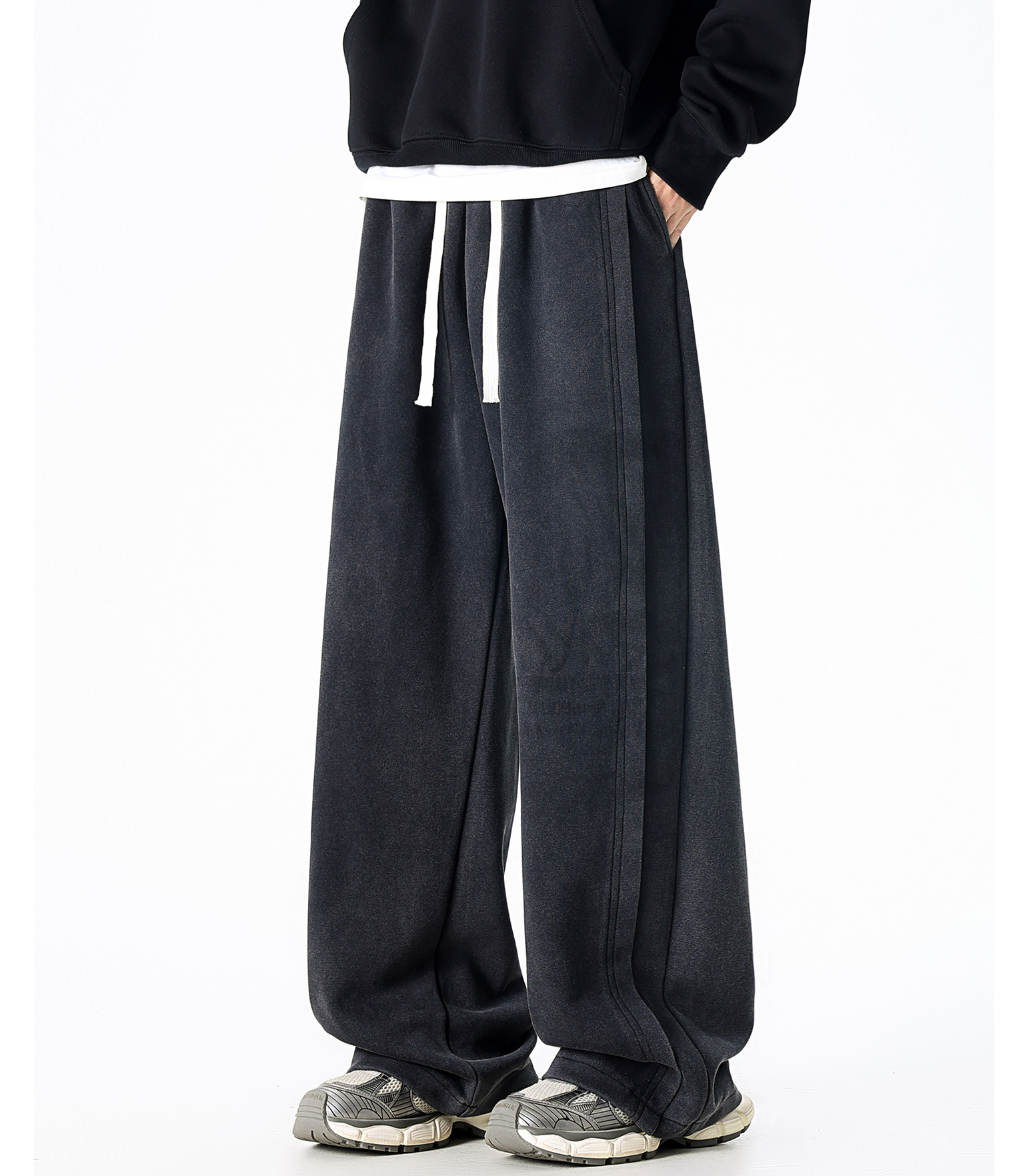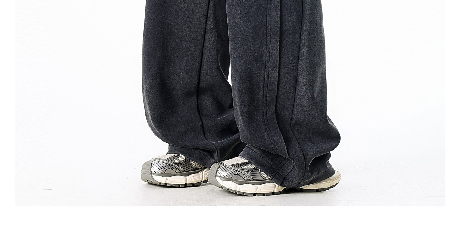Dapige Black Straight-Leg Washed Sweatpants for Men, Autumn and Winter Fleece-Lined Loose Large Size Casual Pants, Sports Long Pants
