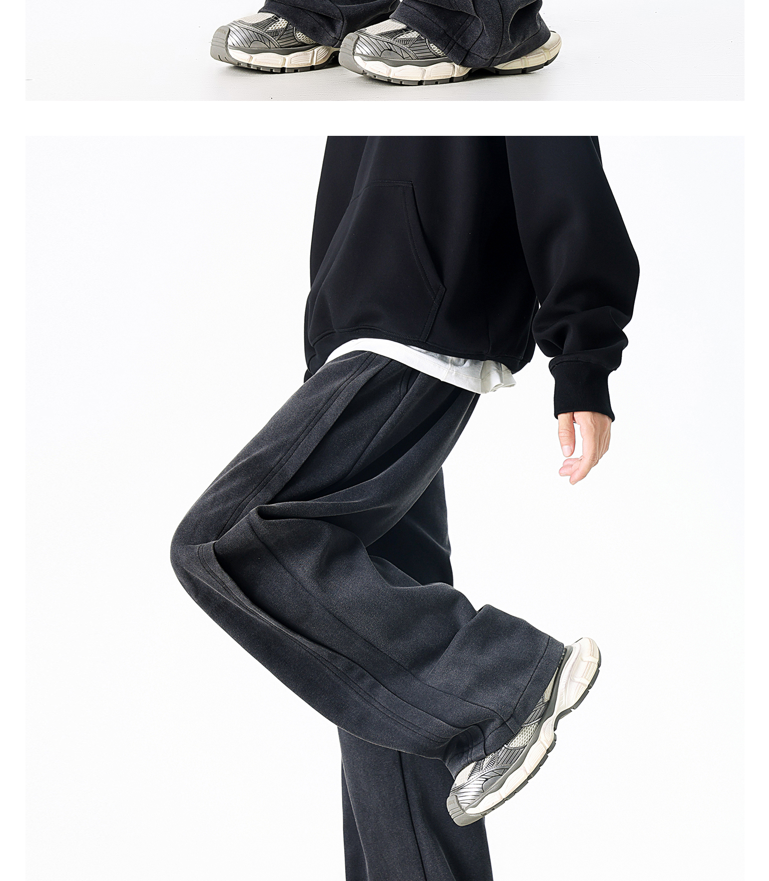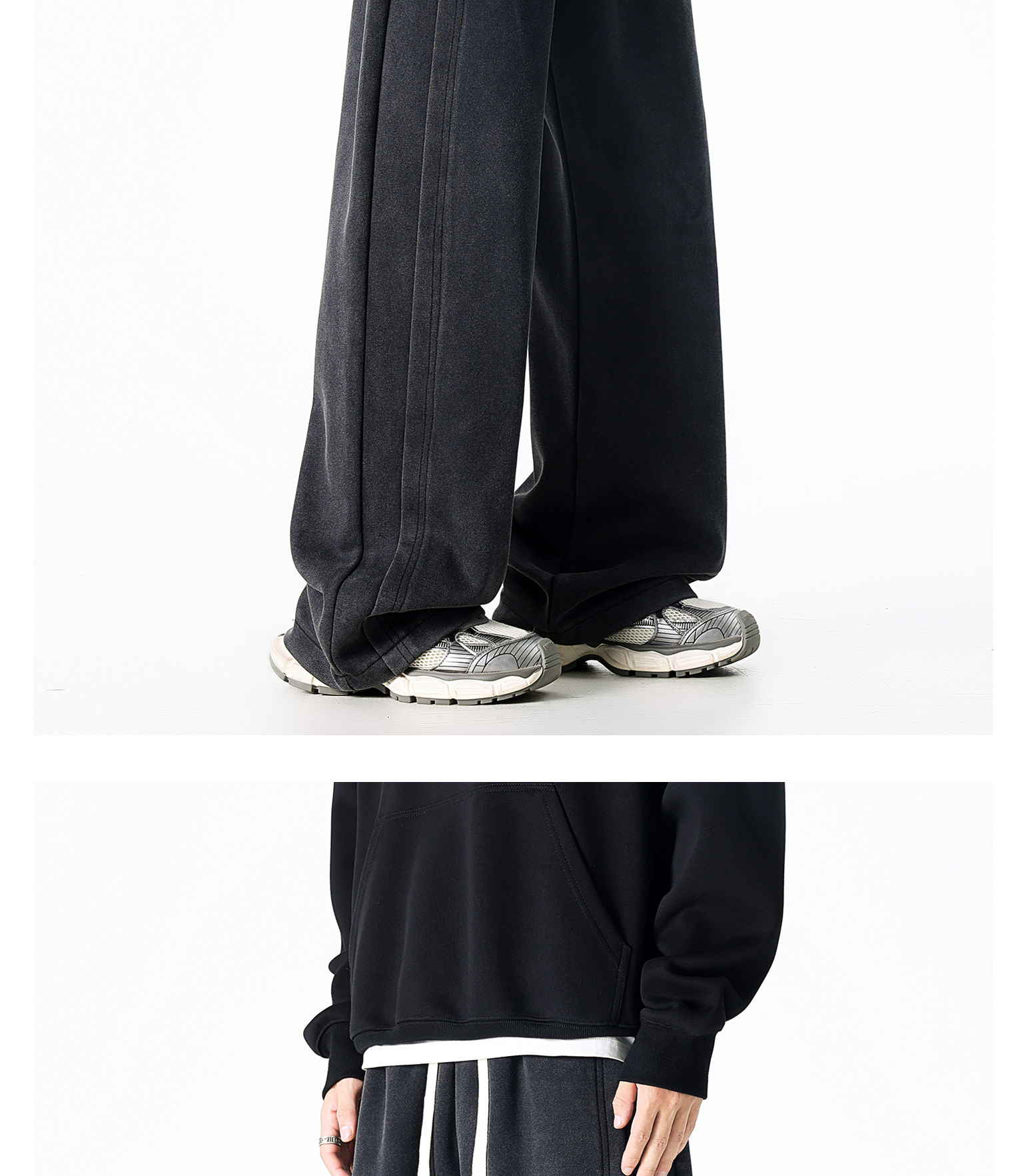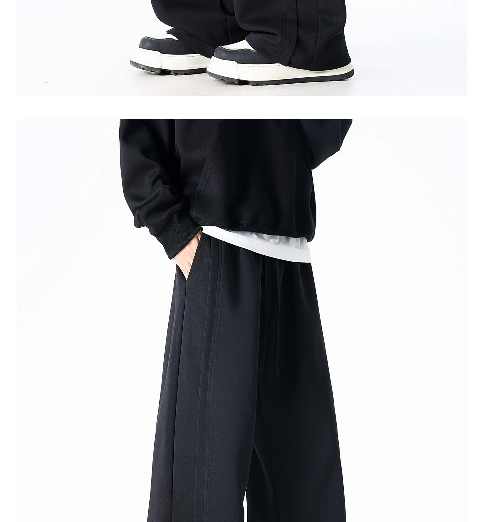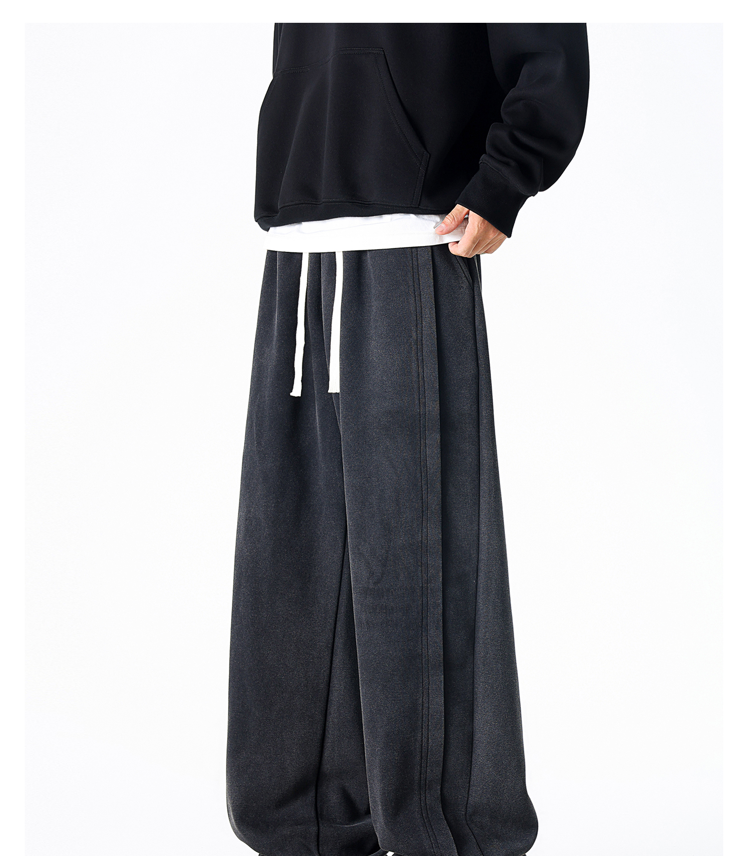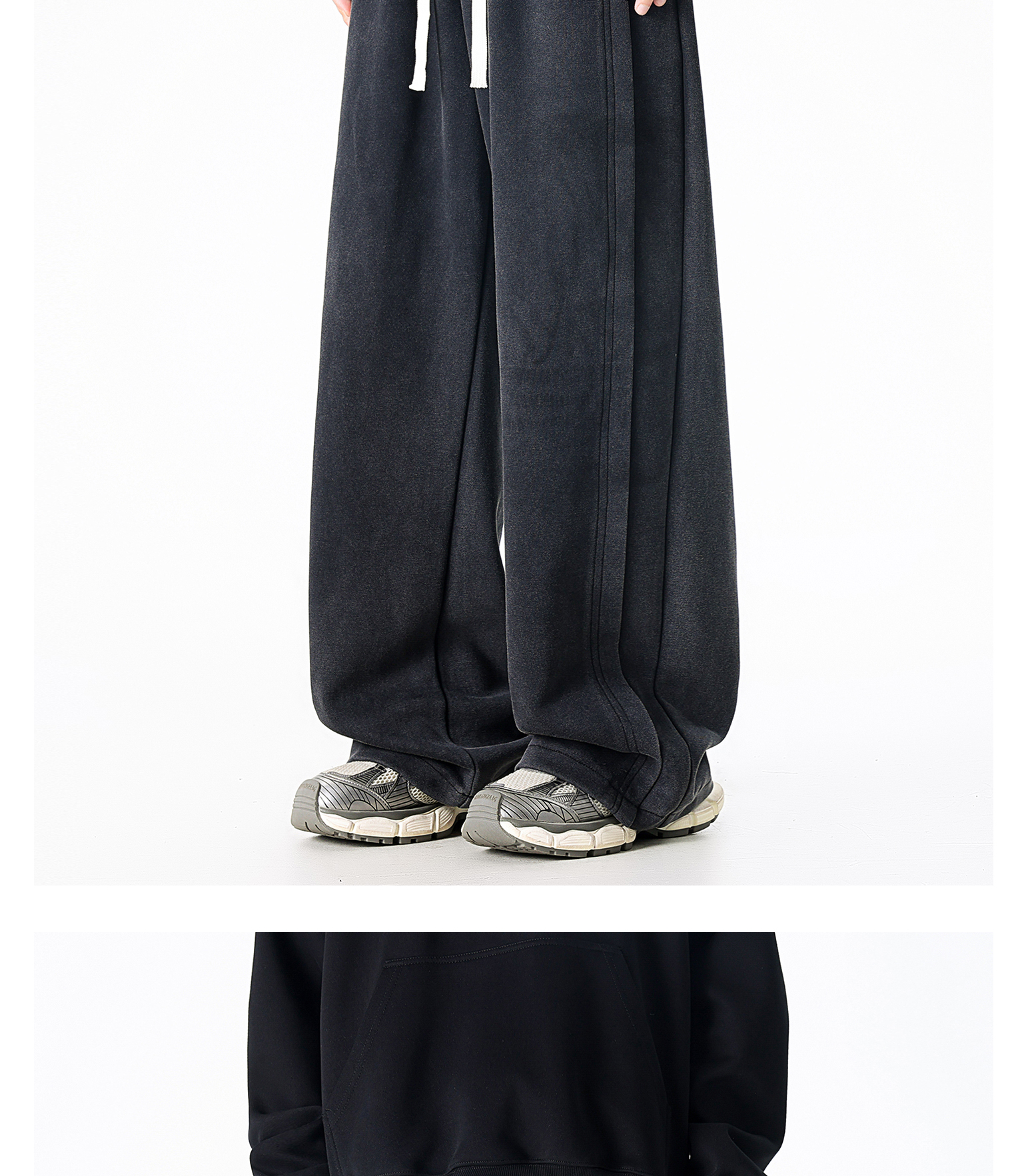 Dapige Black Straight-Leg Washed Sweatpants for Men, Autumn and Winter Fleece-Lined Loose Large Size Casual Pants, Sports Long Pants