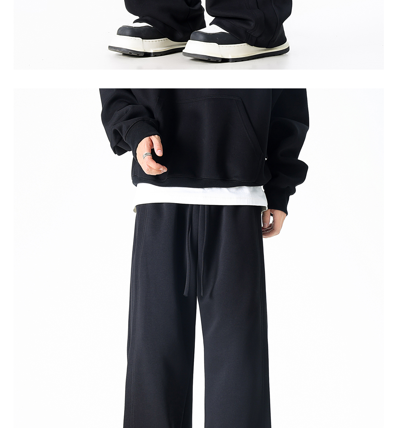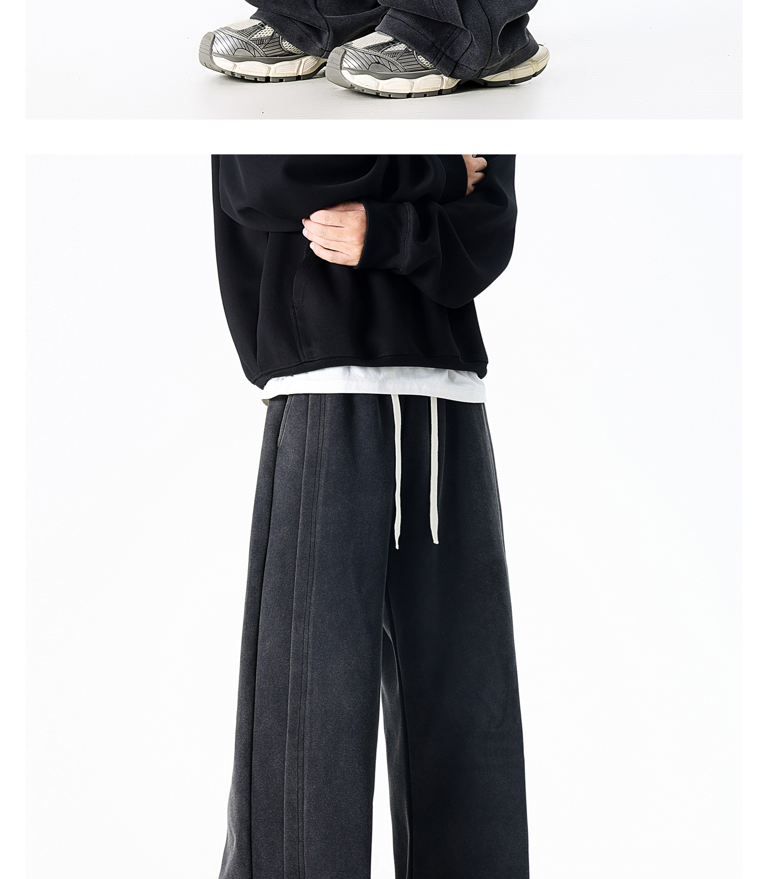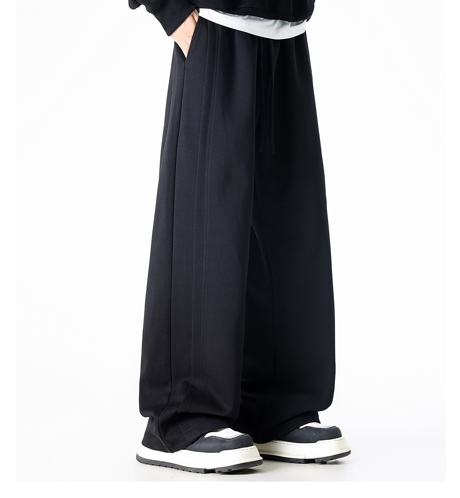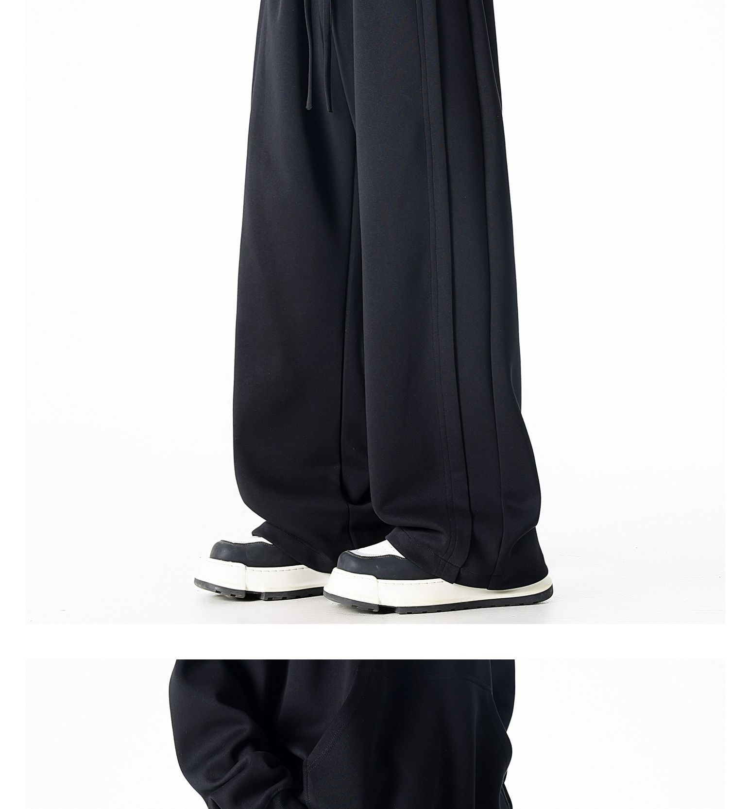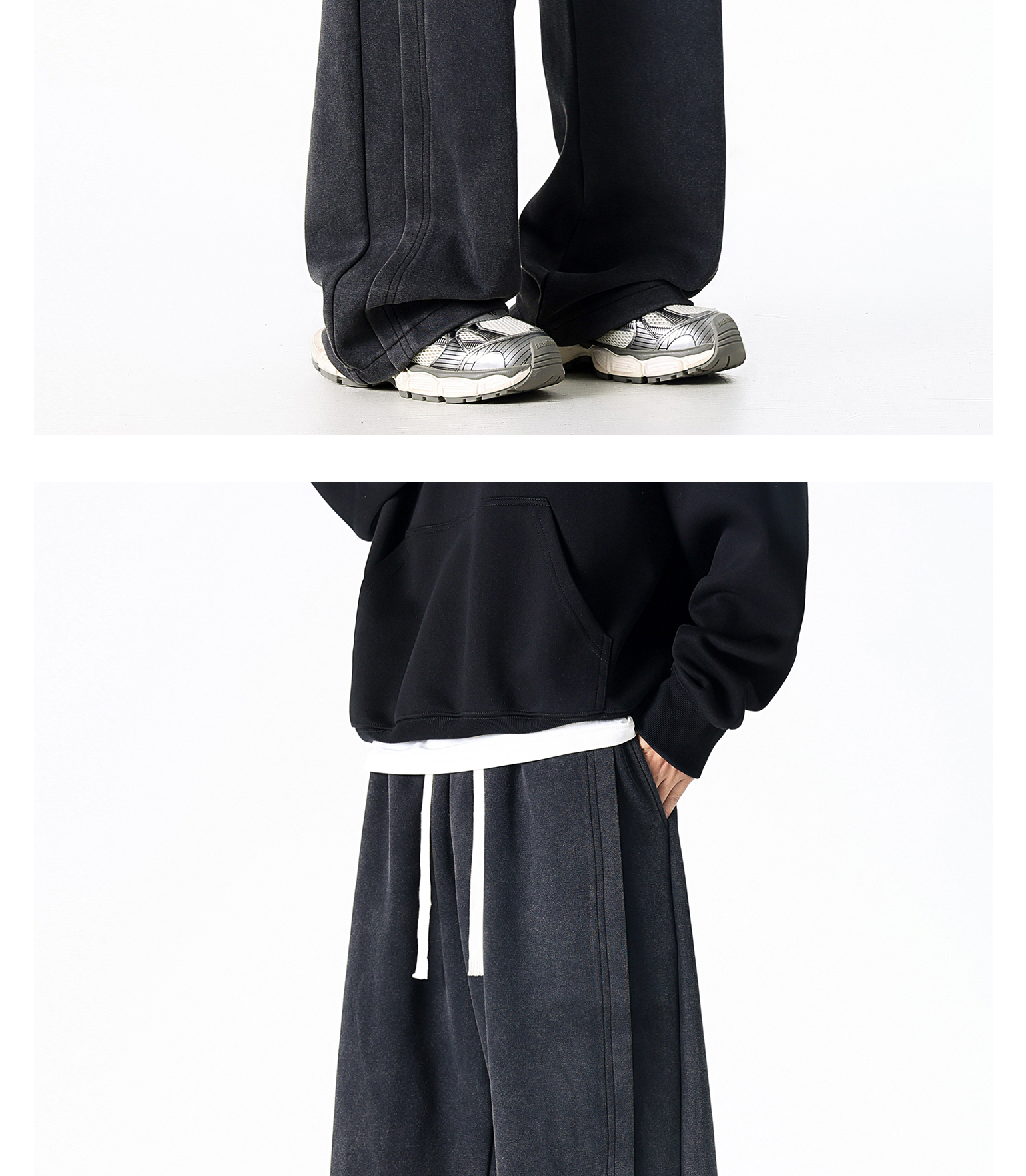 Dapige Black Straight-Leg Washed Sweatpants for Men, Autumn and Winter Fleece-Lined Loose Large Size Casual Pants, Sports Long Pants