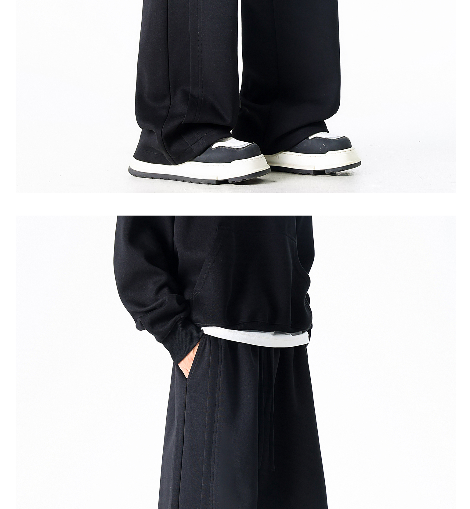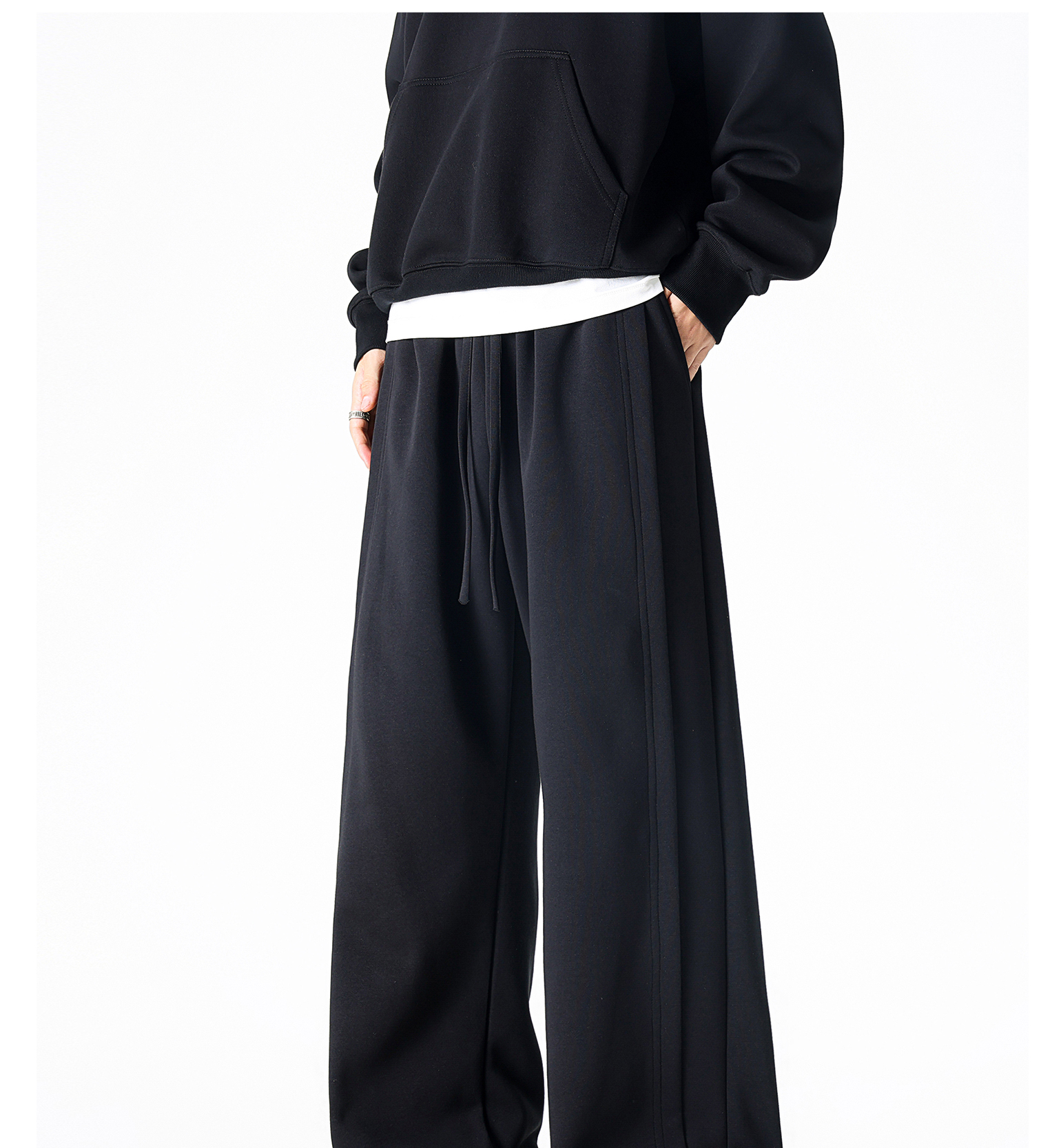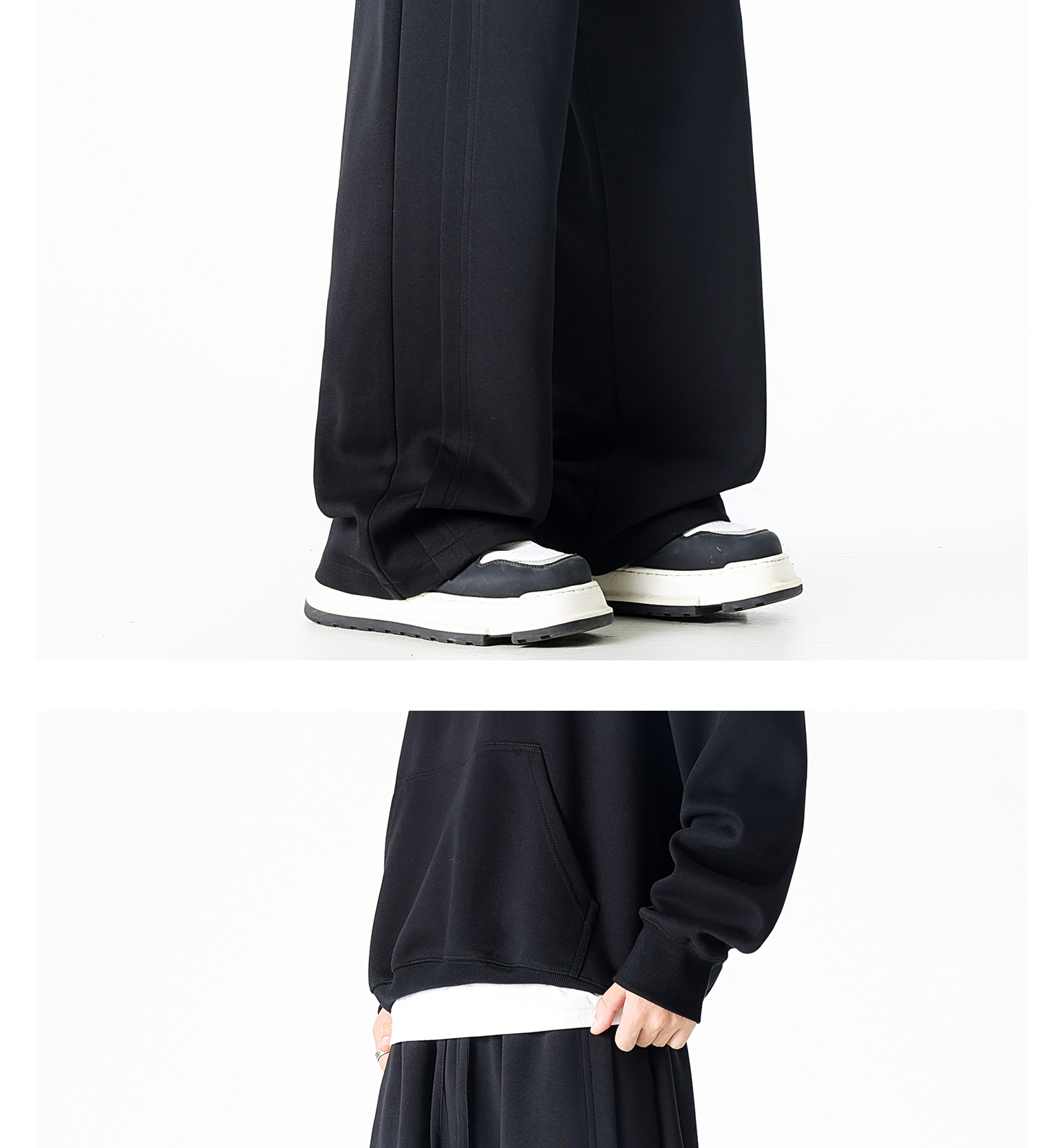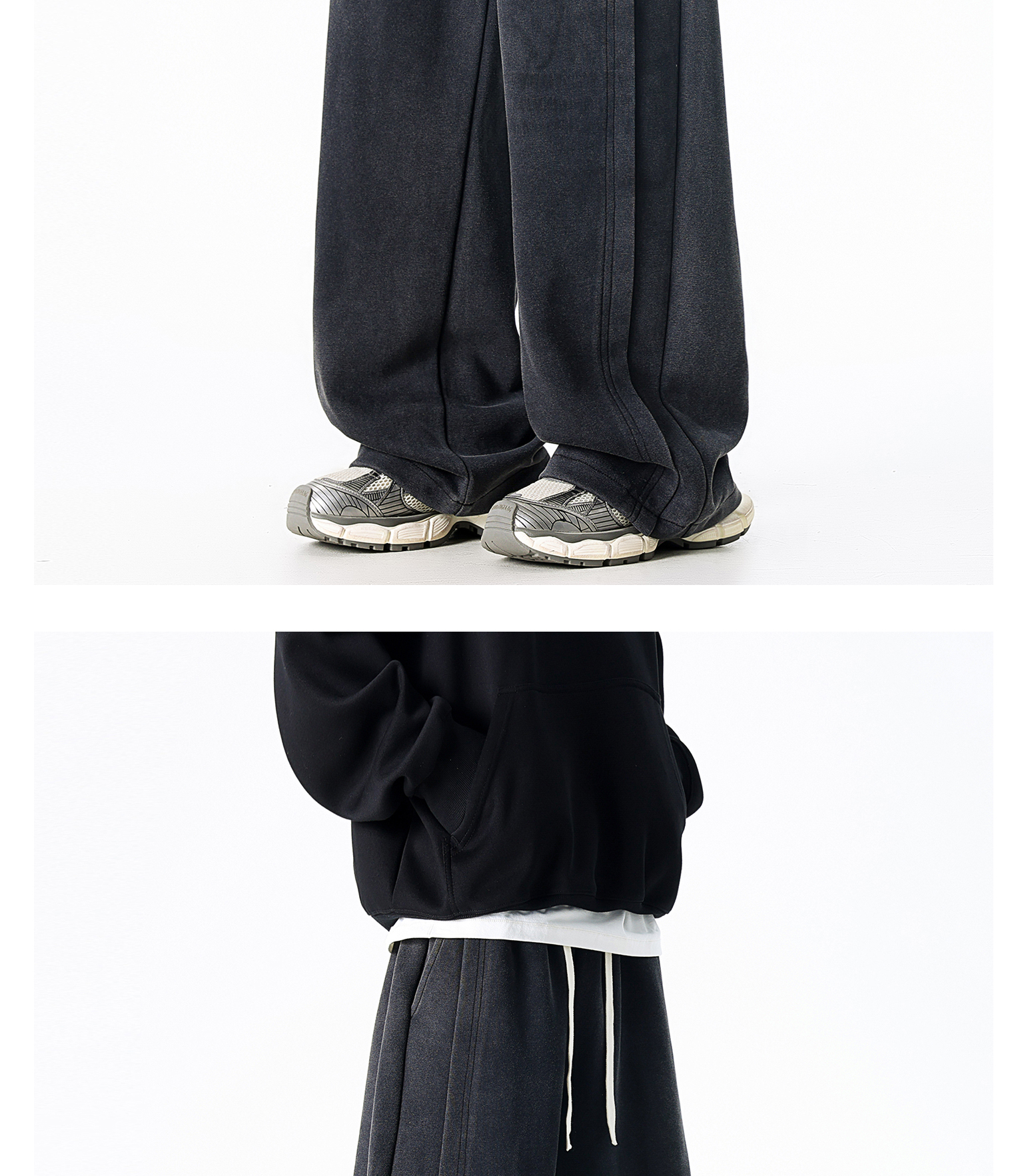 Dapige Black Straight-Leg Washed Sweatpants for Men, Autumn and Winter Fleece-Lined Loose Large Size Casual Pants, Sports Long Pants