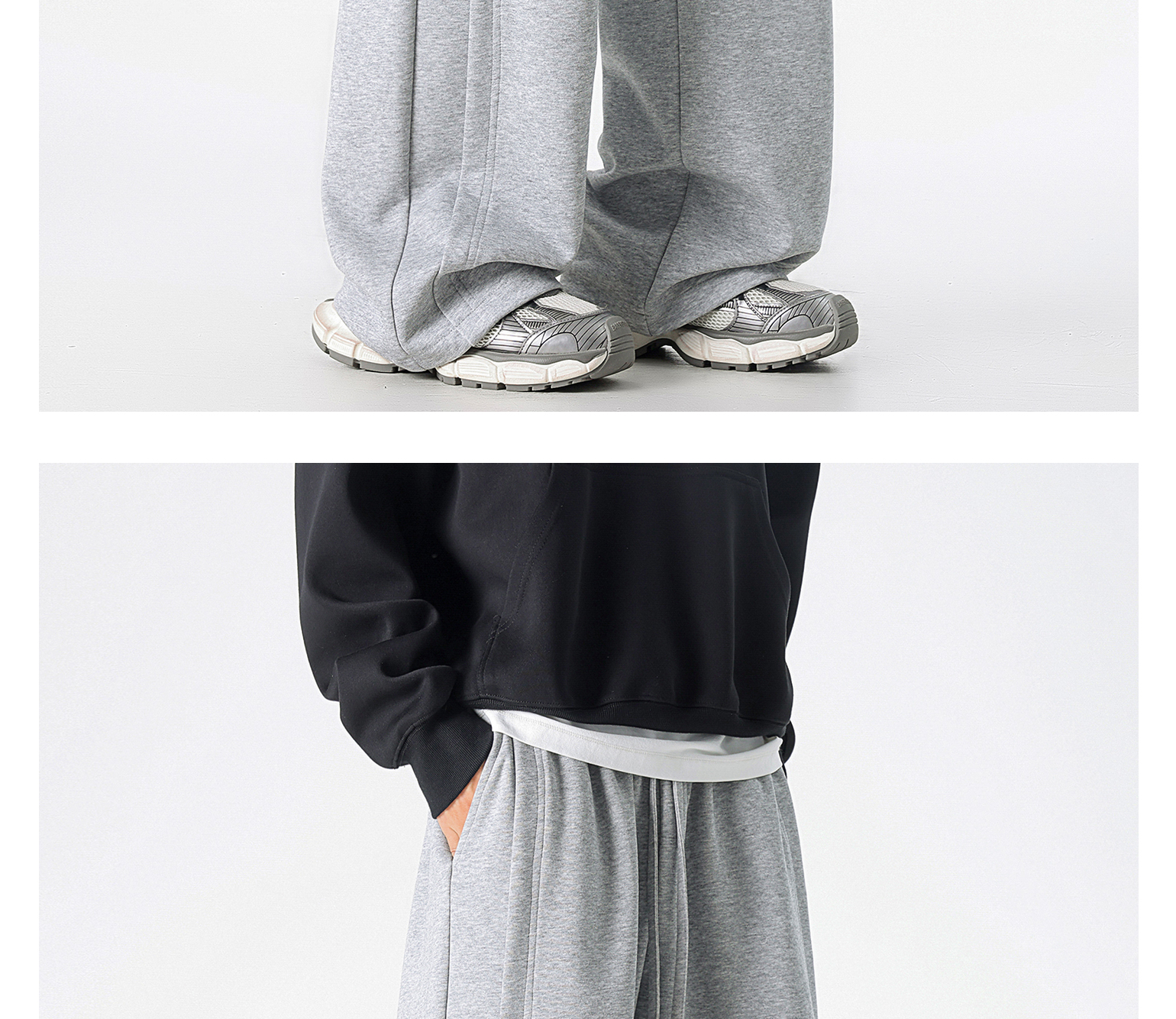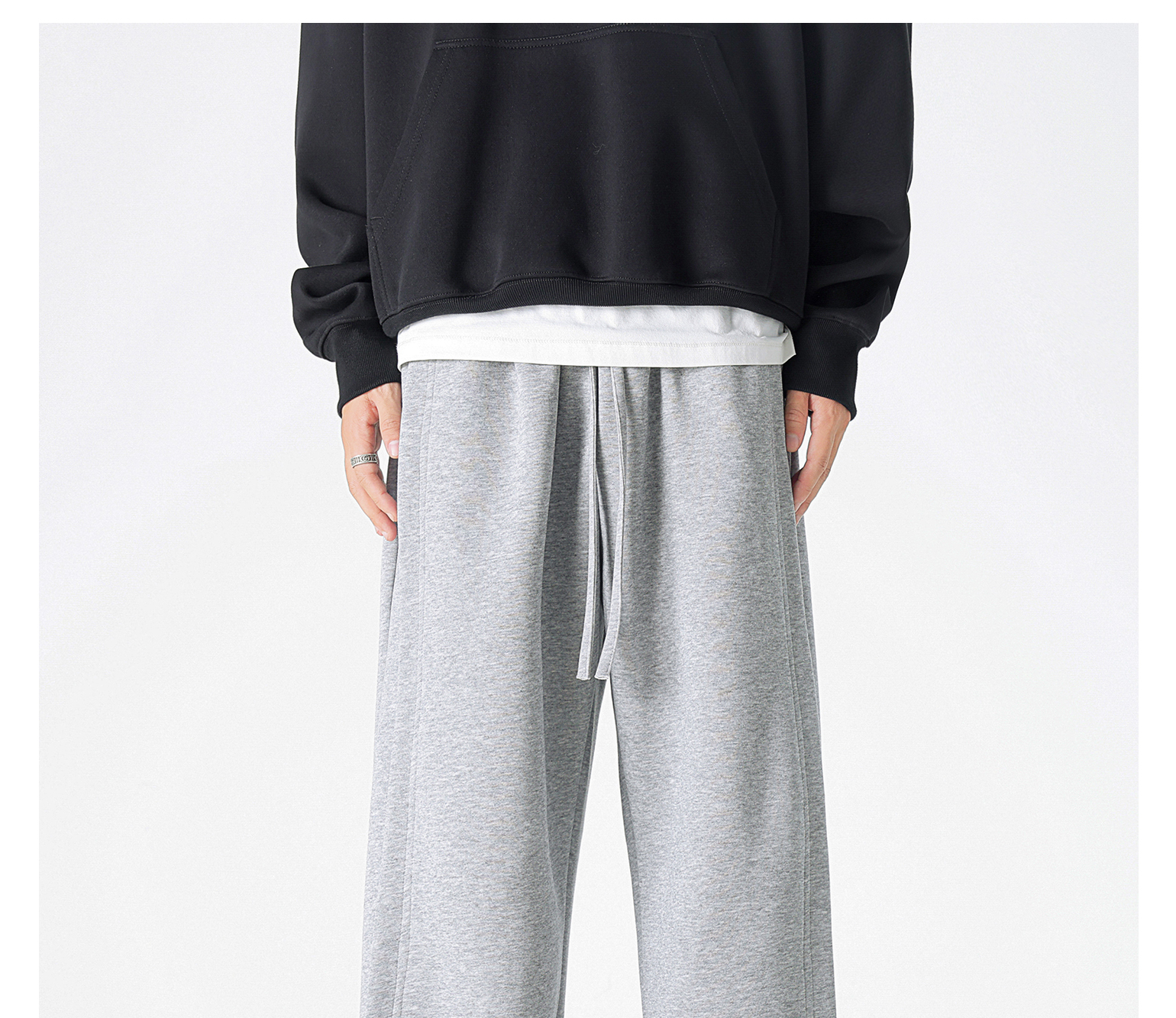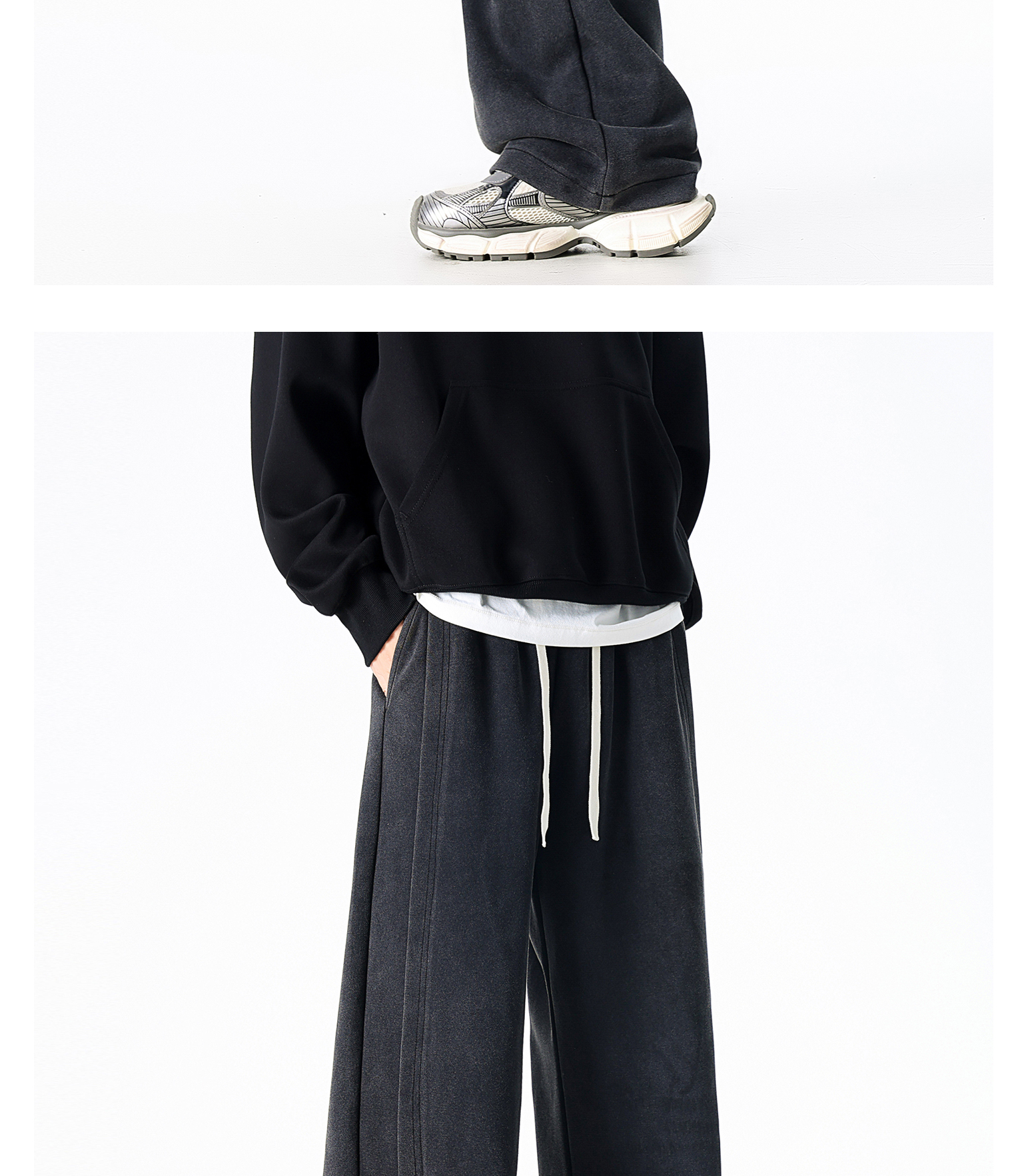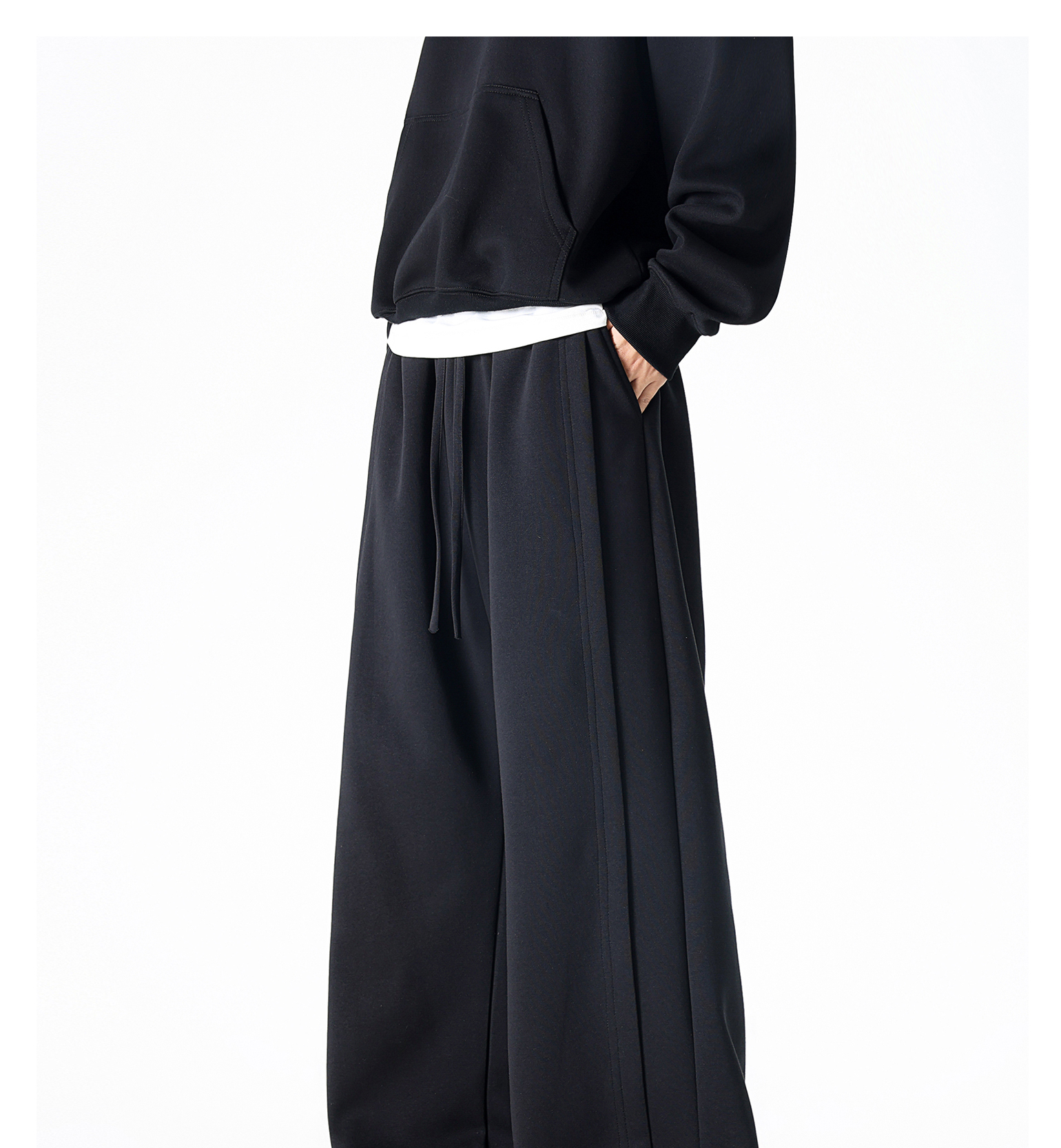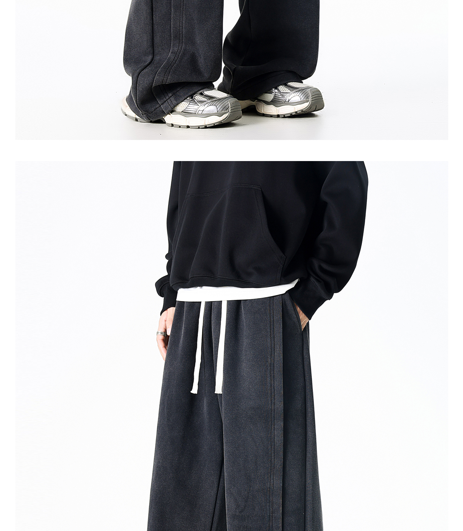 Dapige Black Straight-Leg Washed Sweatpants for Men, Autumn and Winter Fleece-Lined Loose Large Size Casual Pants, Sports Long Pants