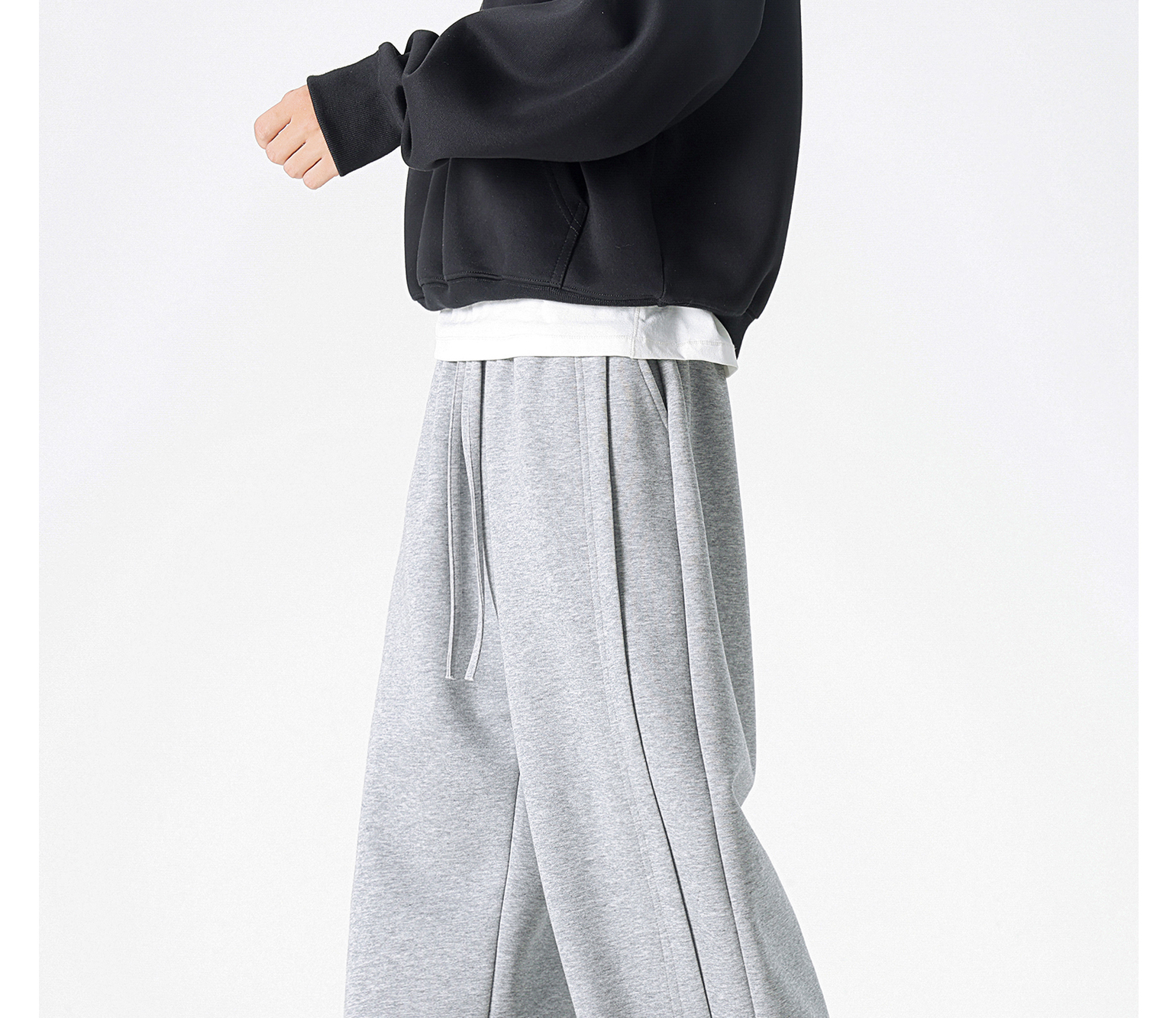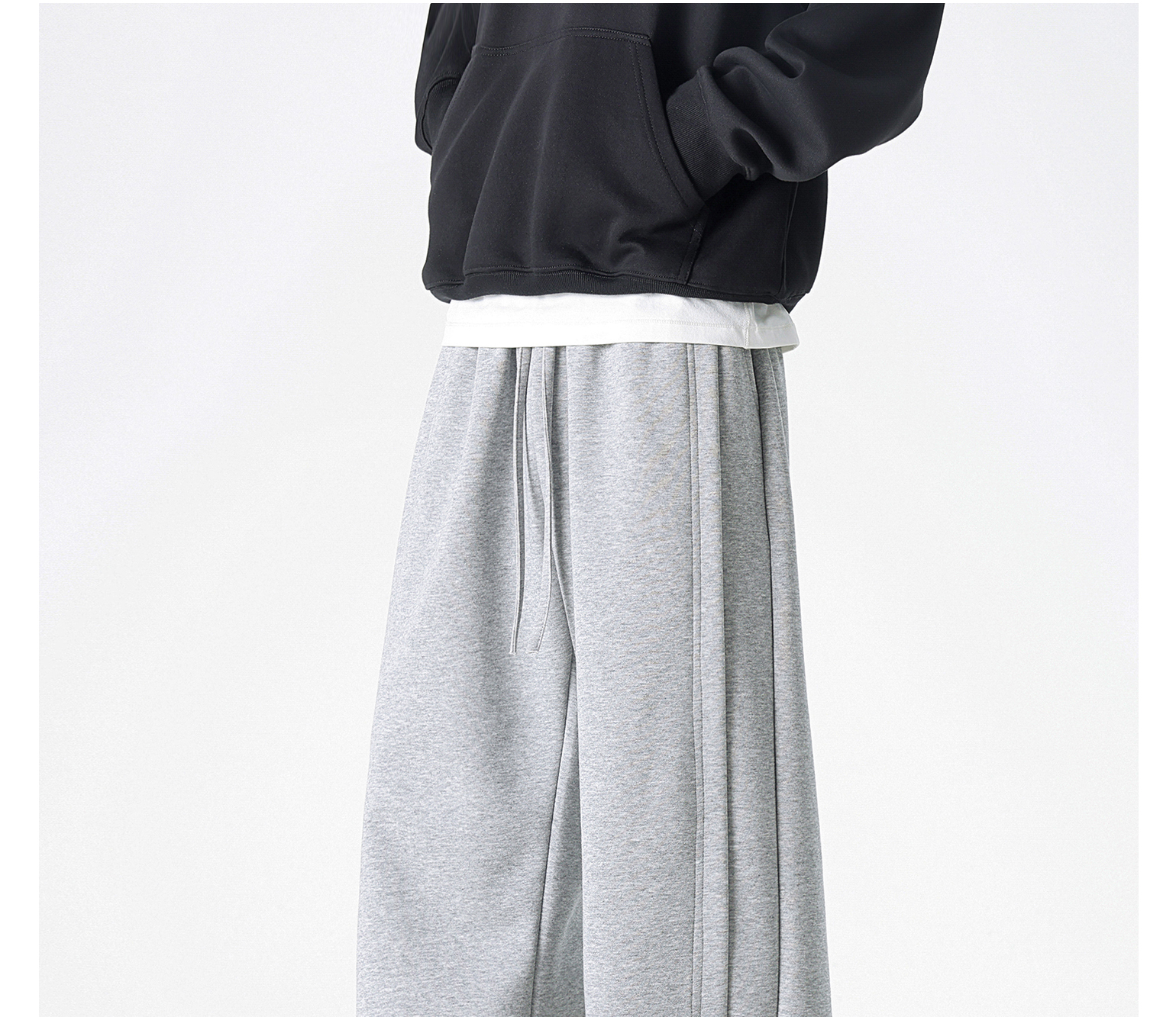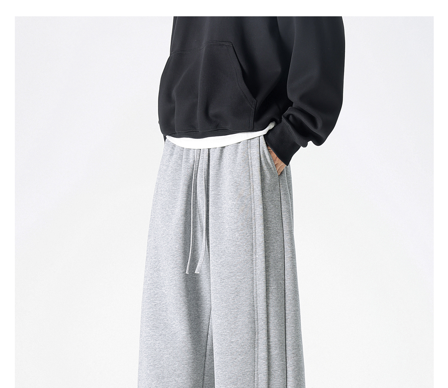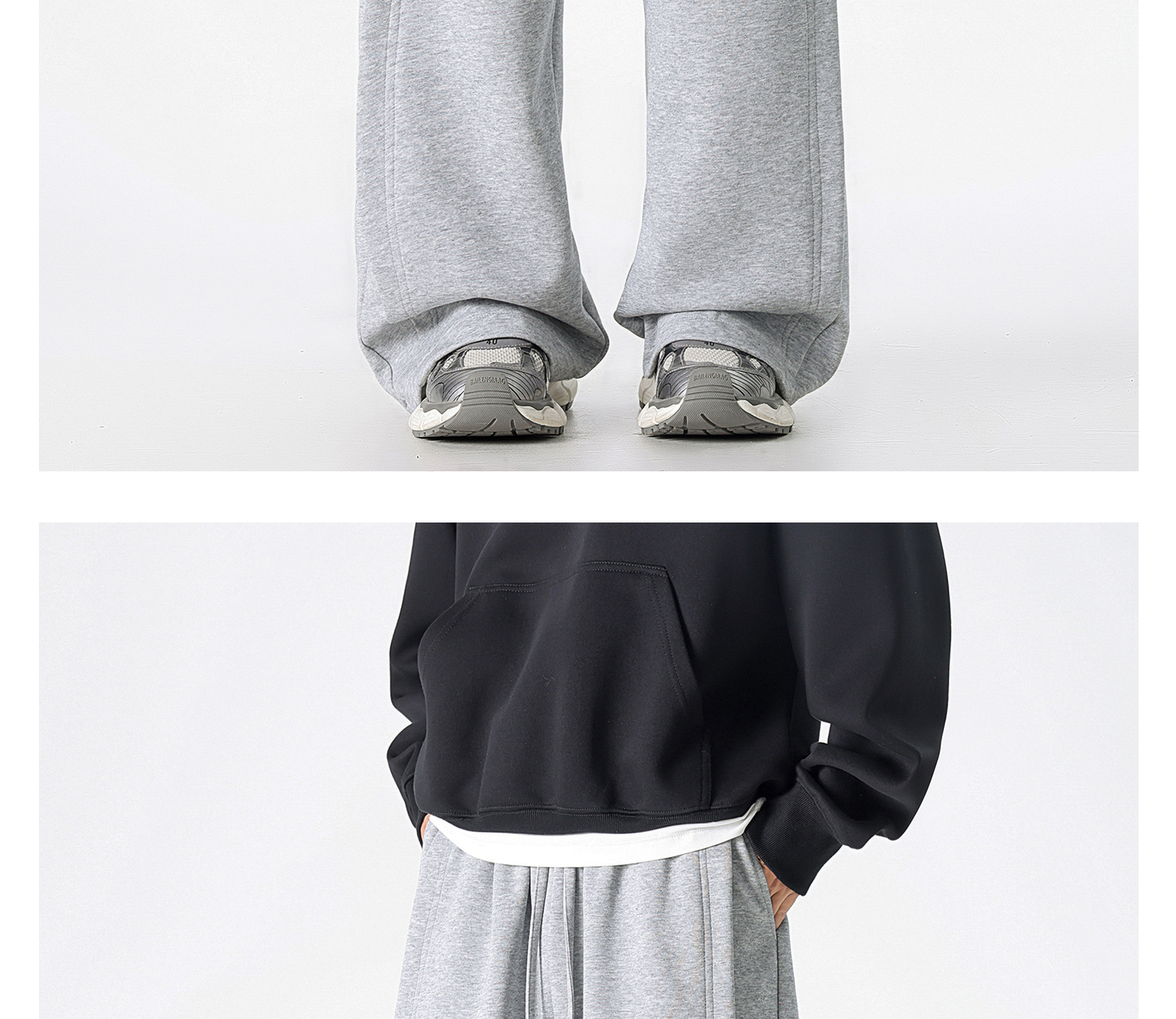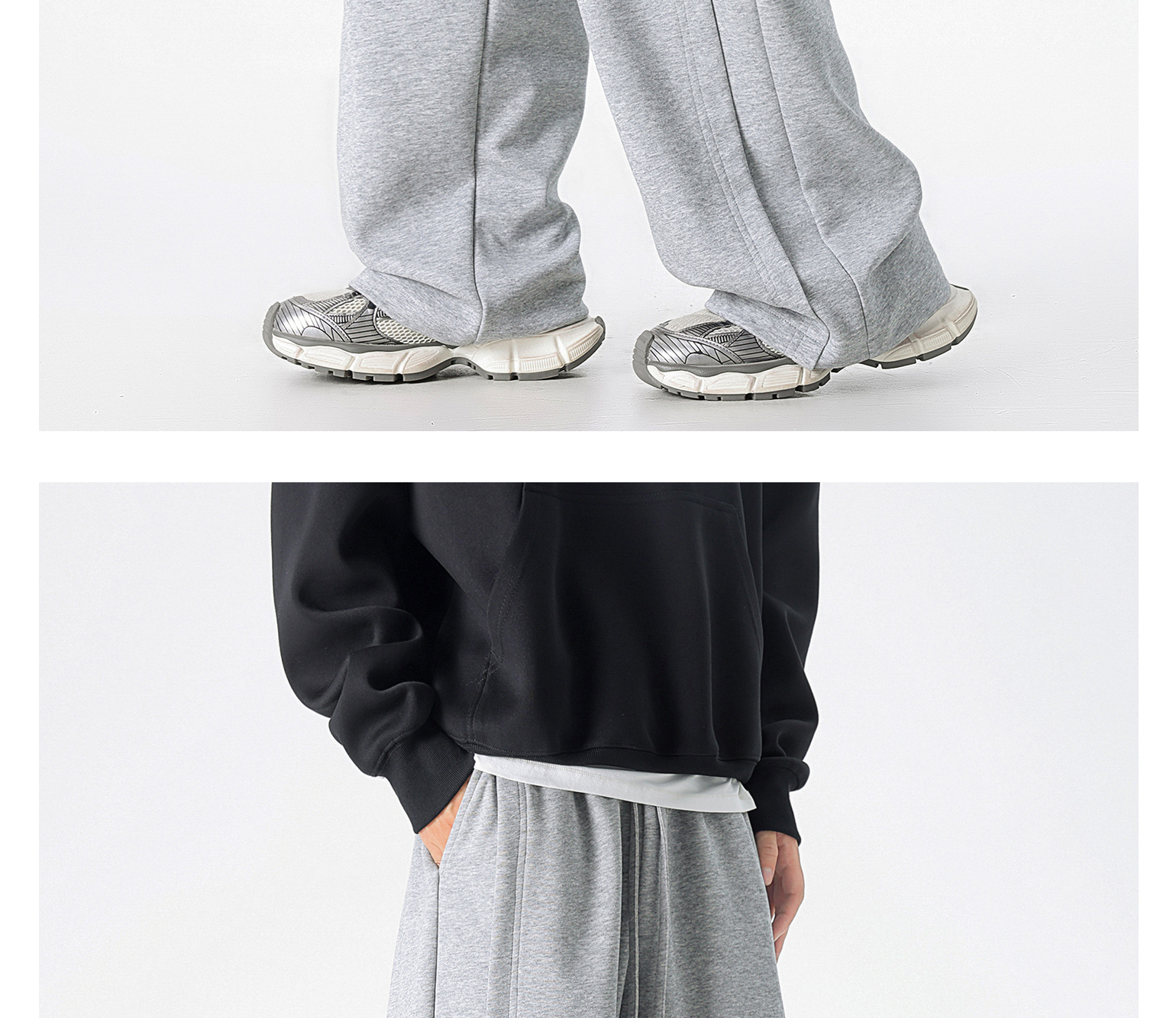 Dapige Black Straight-Leg Washed Sweatpants for Men, Autumn and Winter Fleece-Lined Loose Large Size Casual Pants, Sports Long Pants