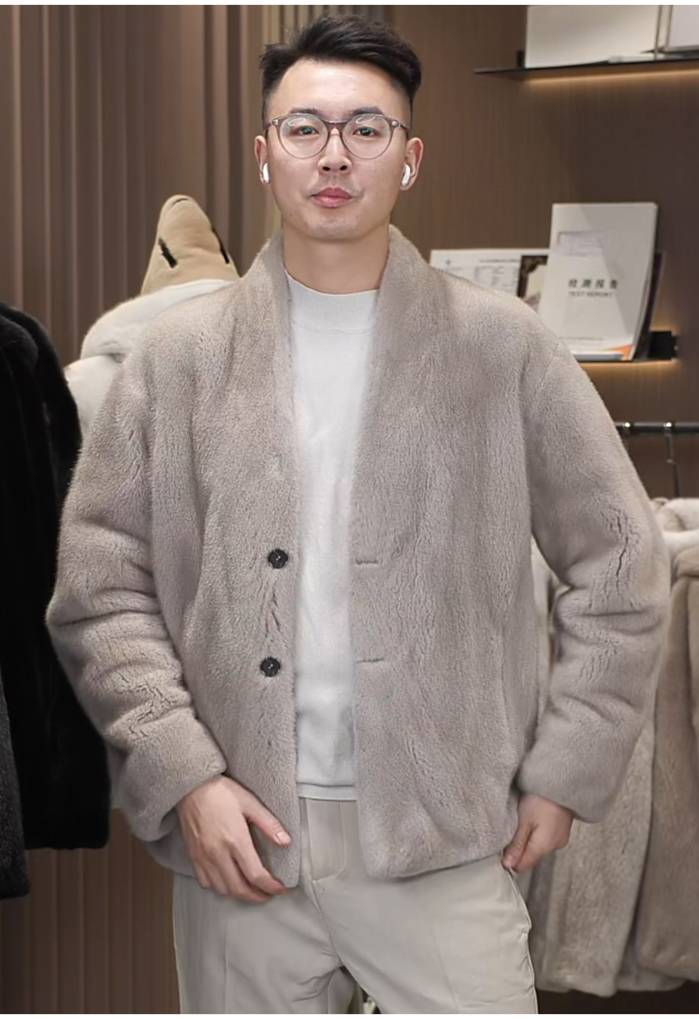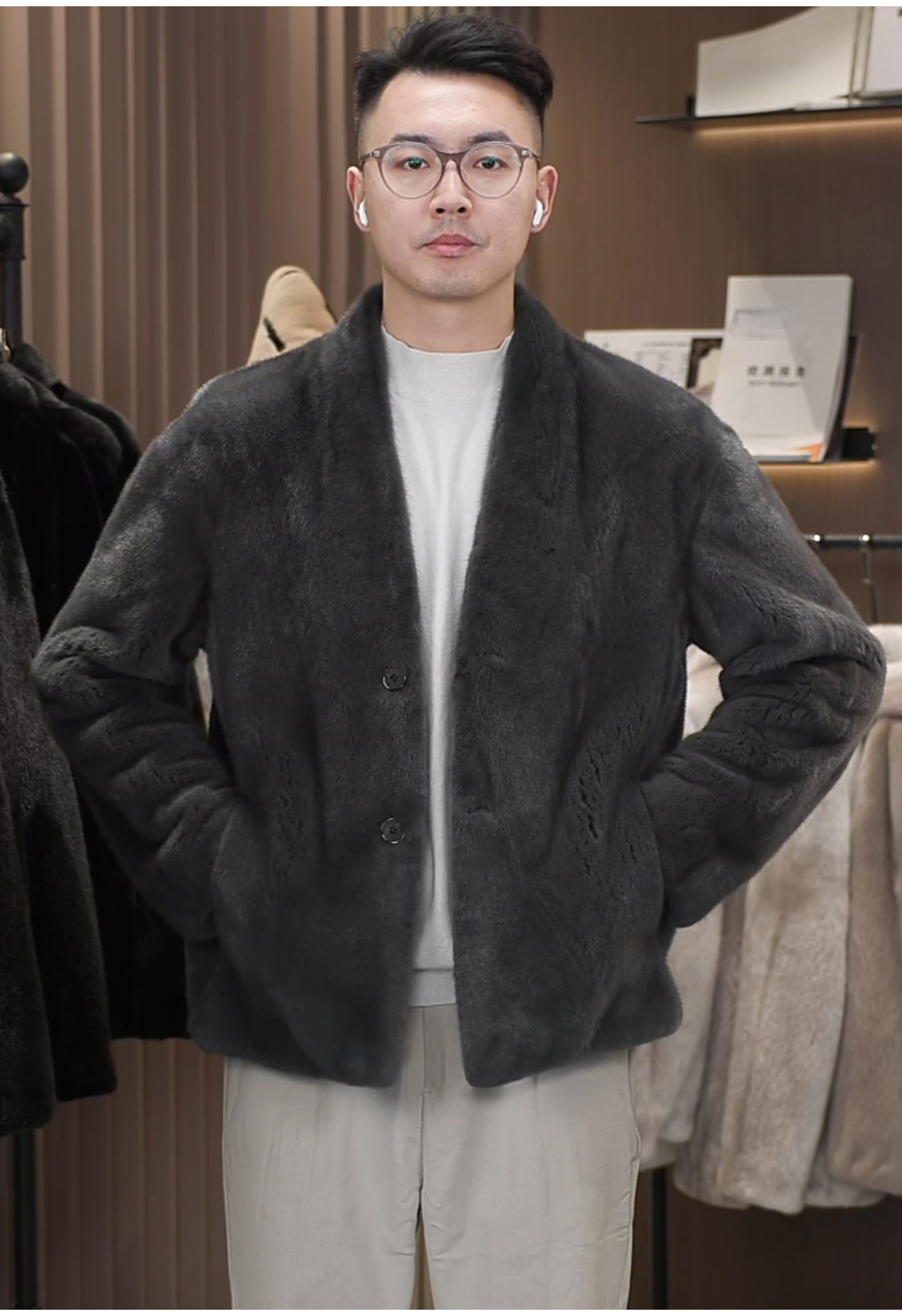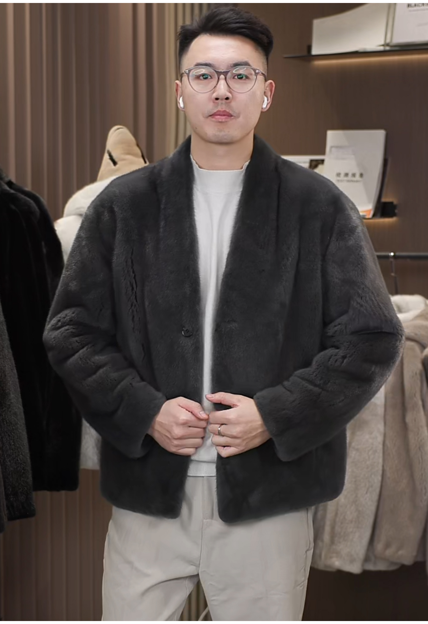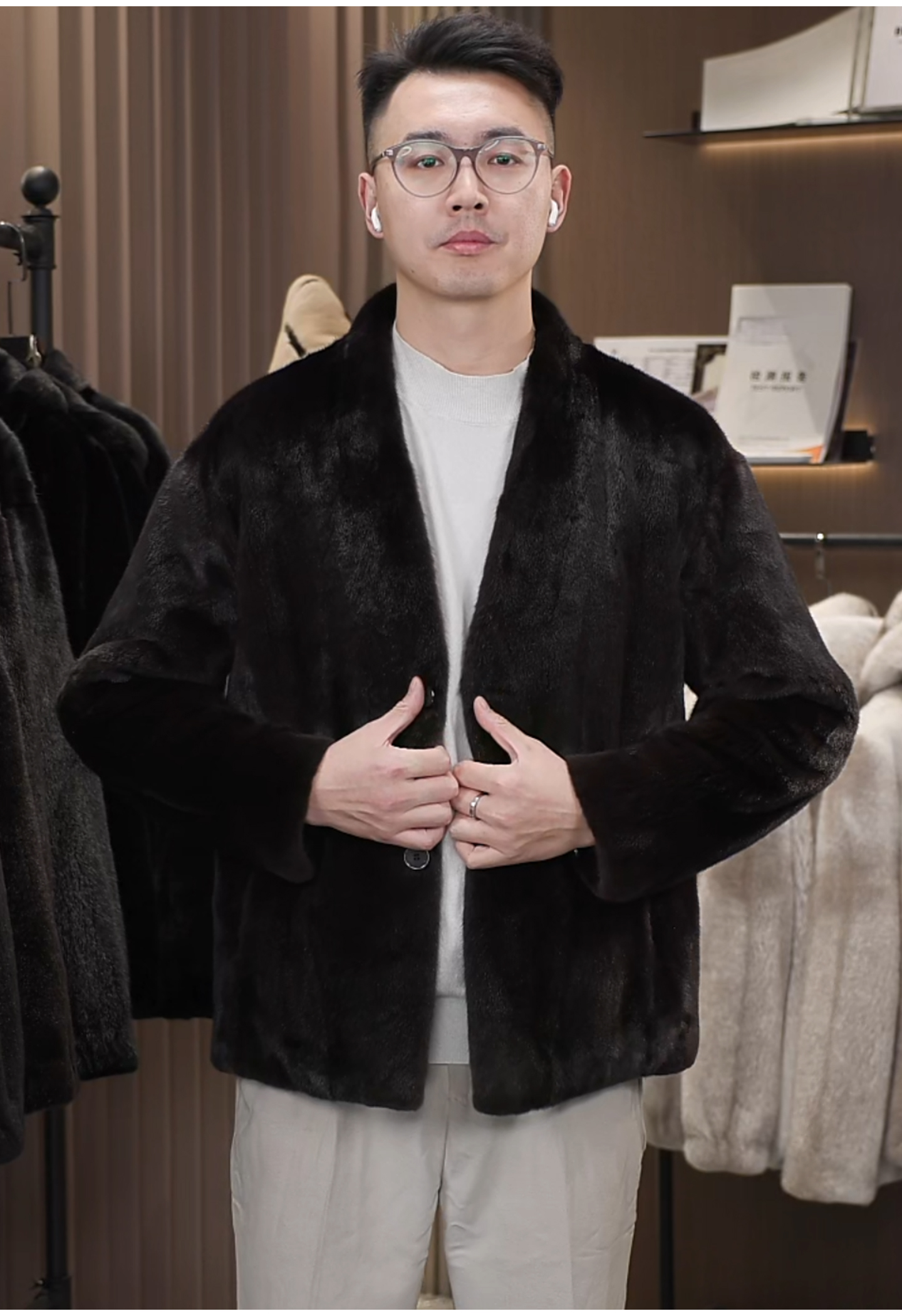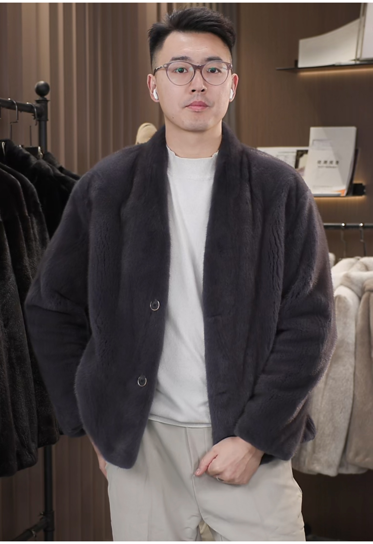 Imported Baojiamei Genuine Mink Fur Coat for Men, Whole Mink, Real Mink Fur, V-Neck Cardigan, Short Robe, Haining