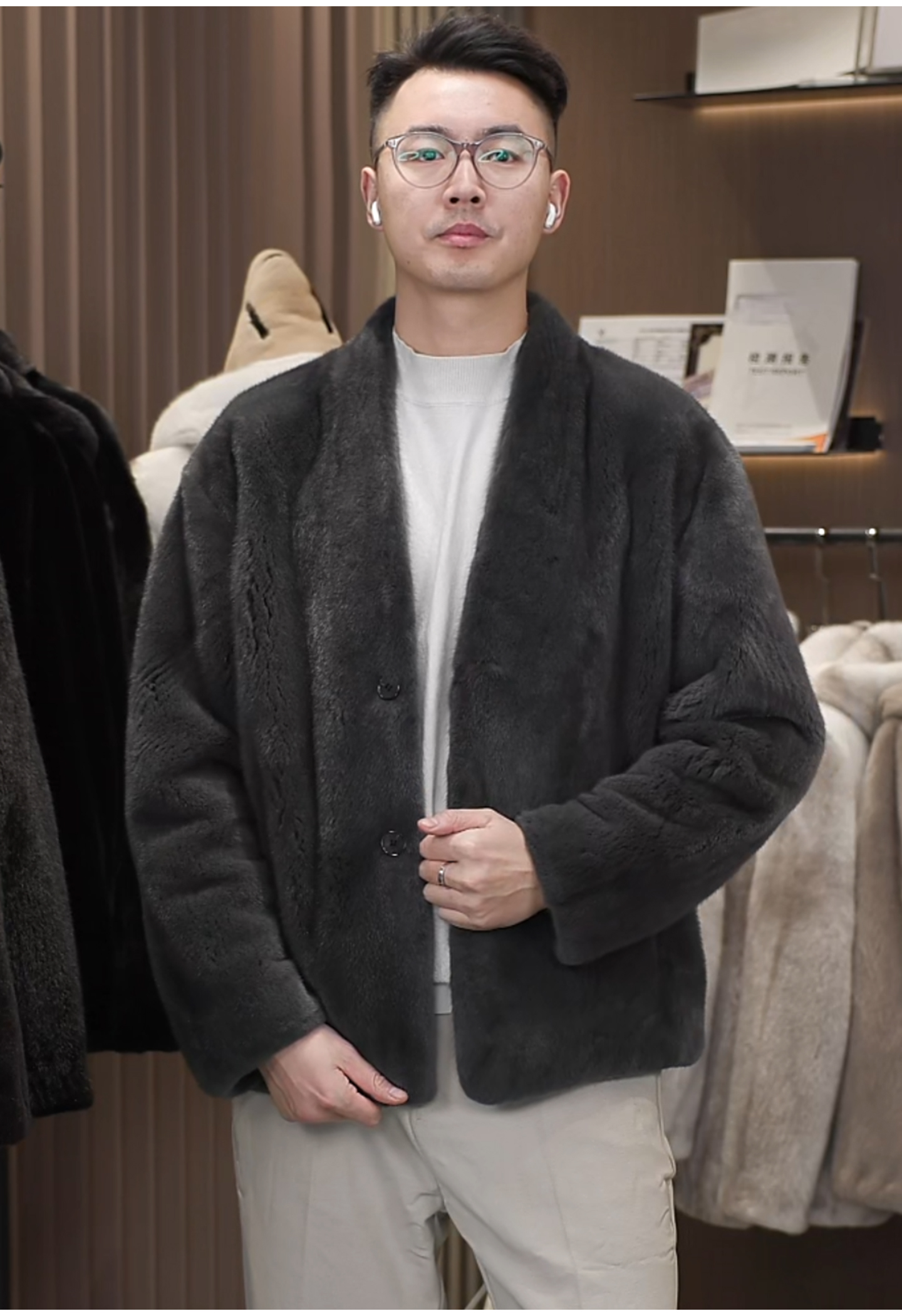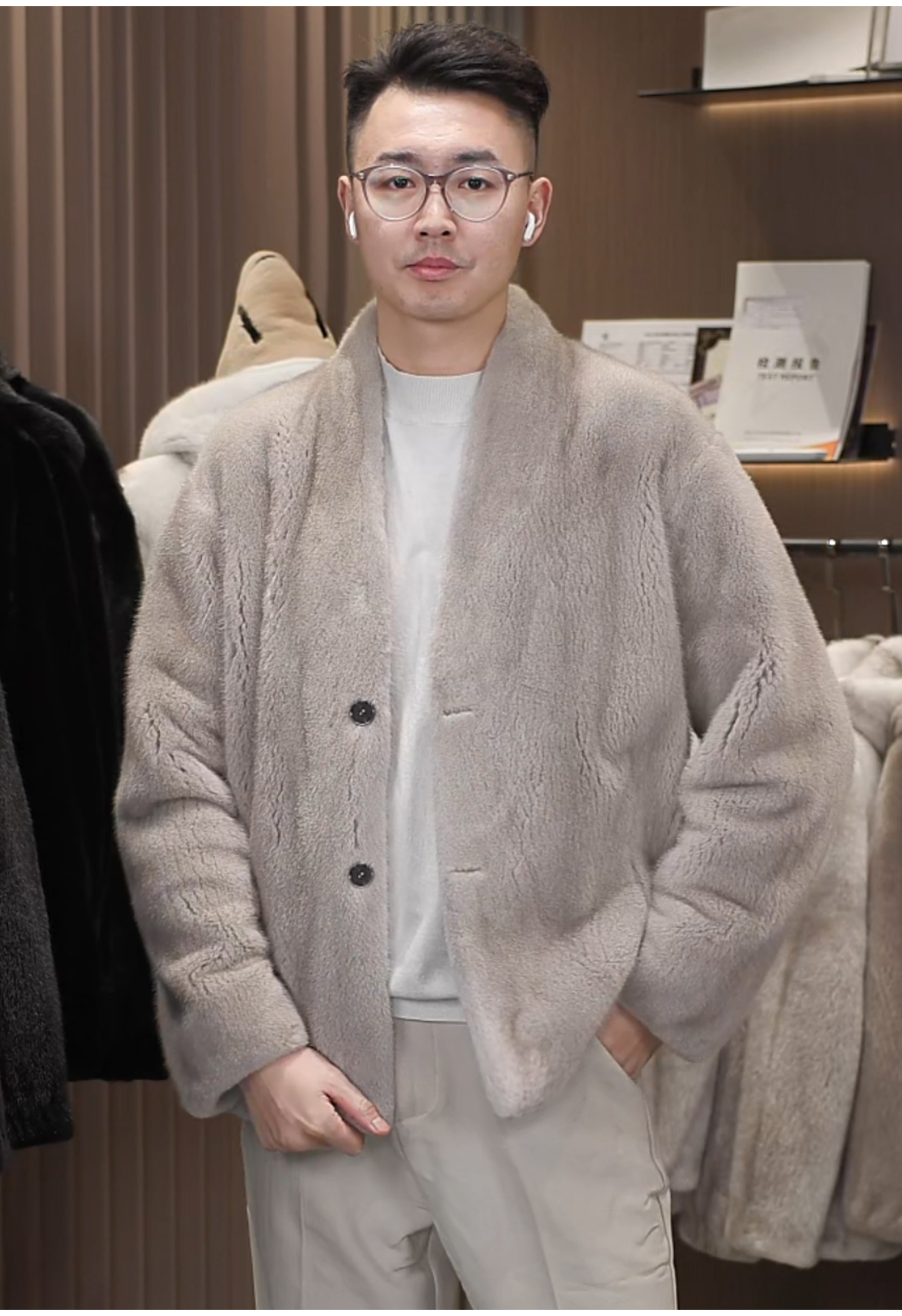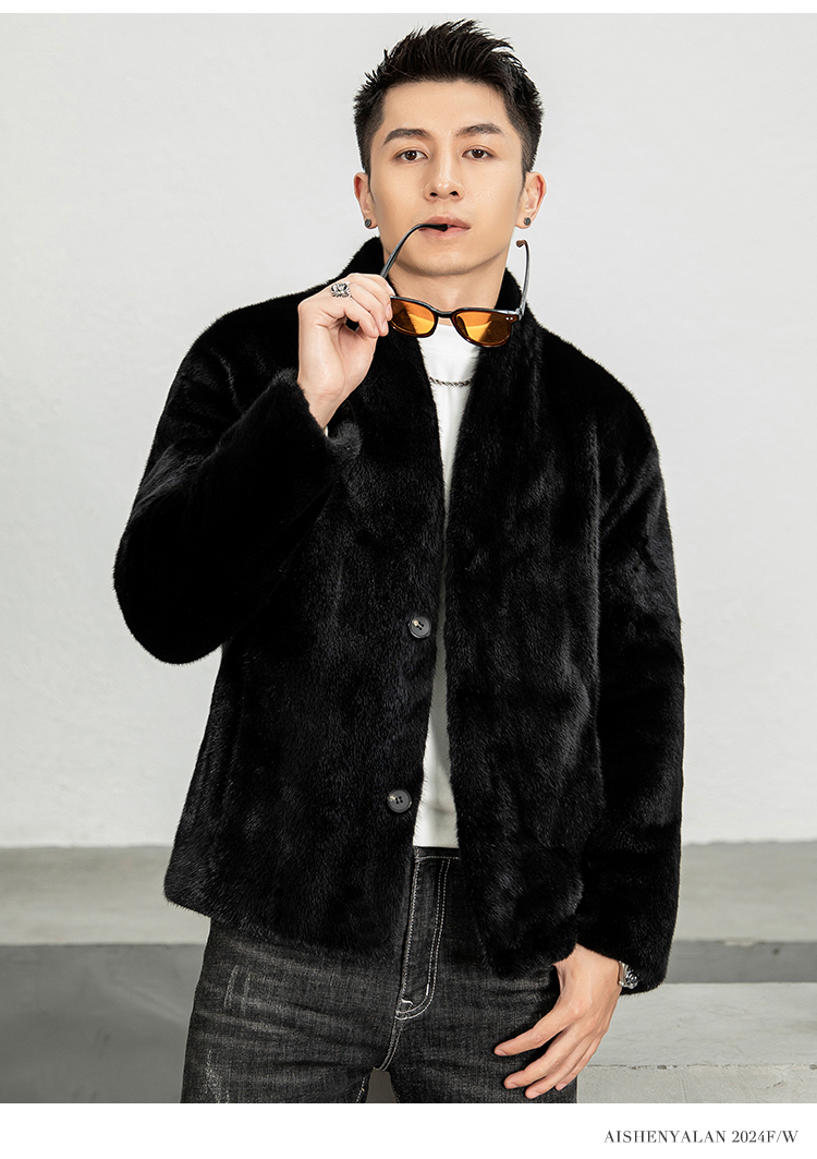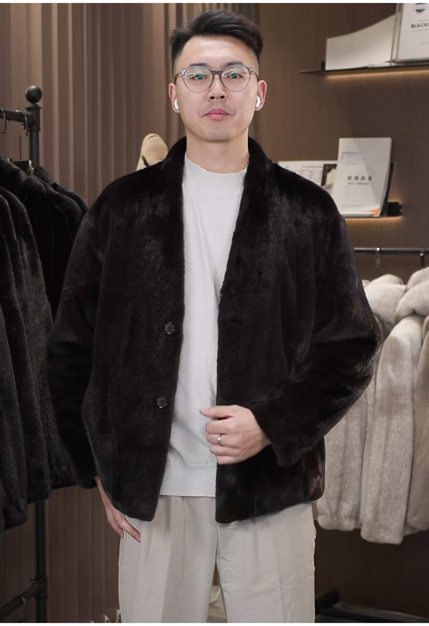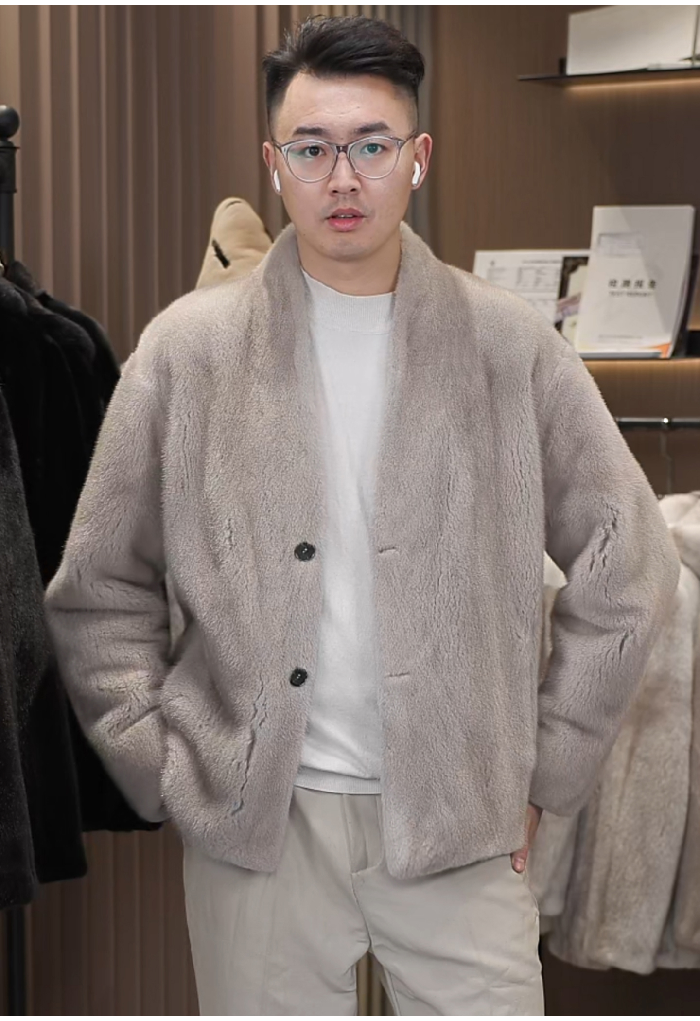 Imported Baojiamei Genuine Mink Fur Coat for Men, Whole Mink, Real Mink Fur, V-Neck Cardigan, Short Robe, Haining