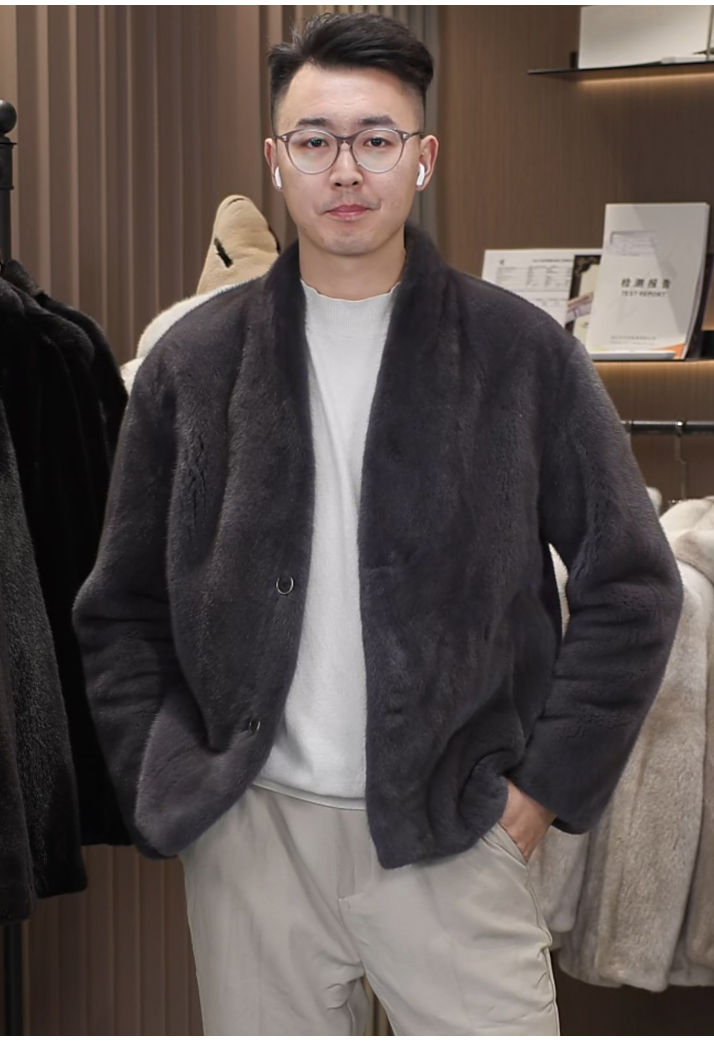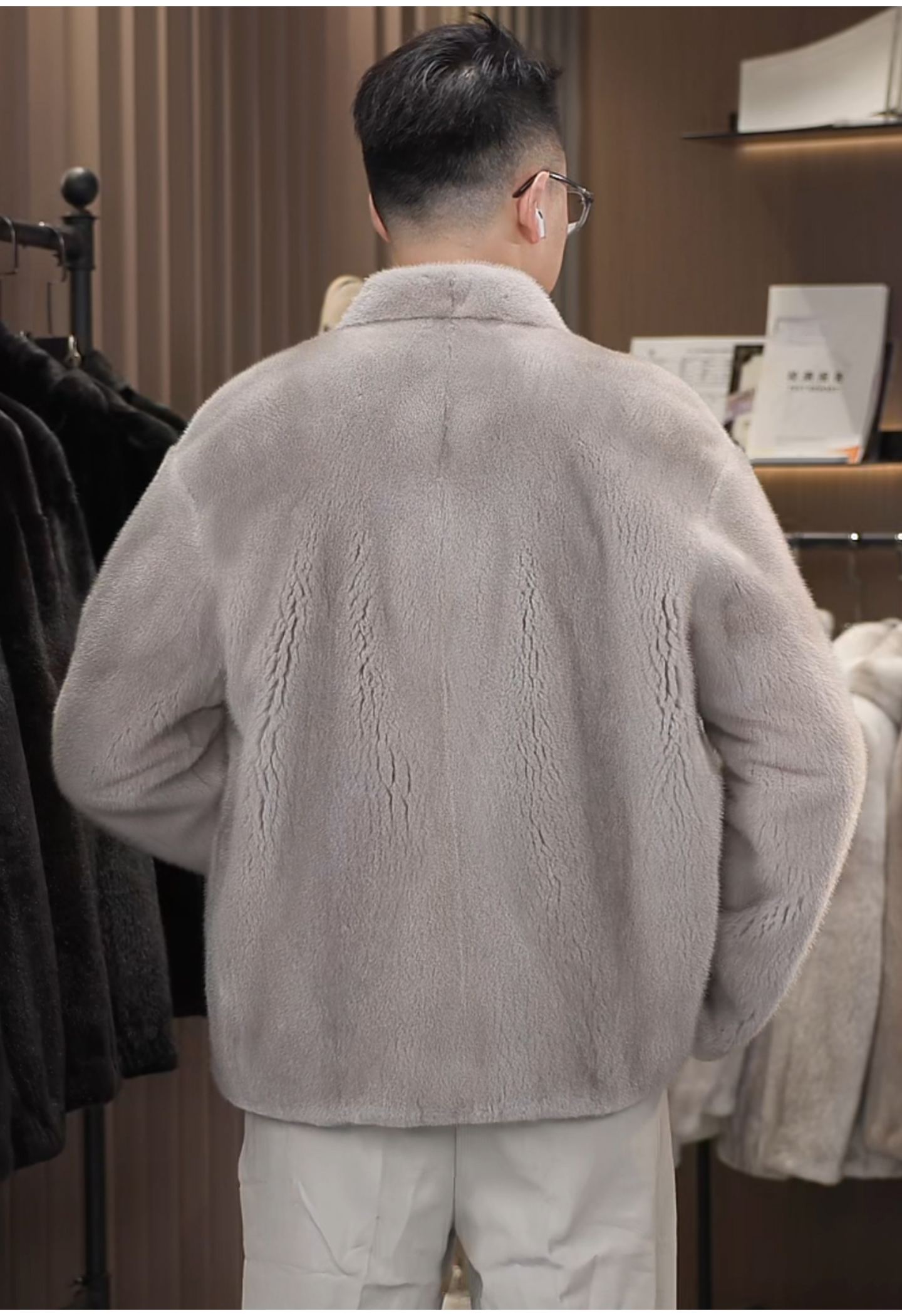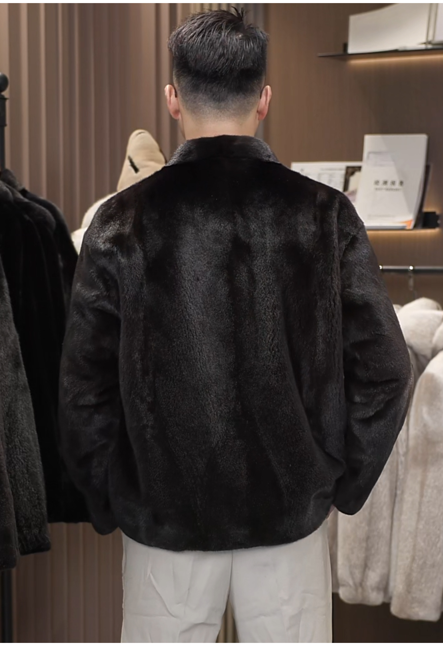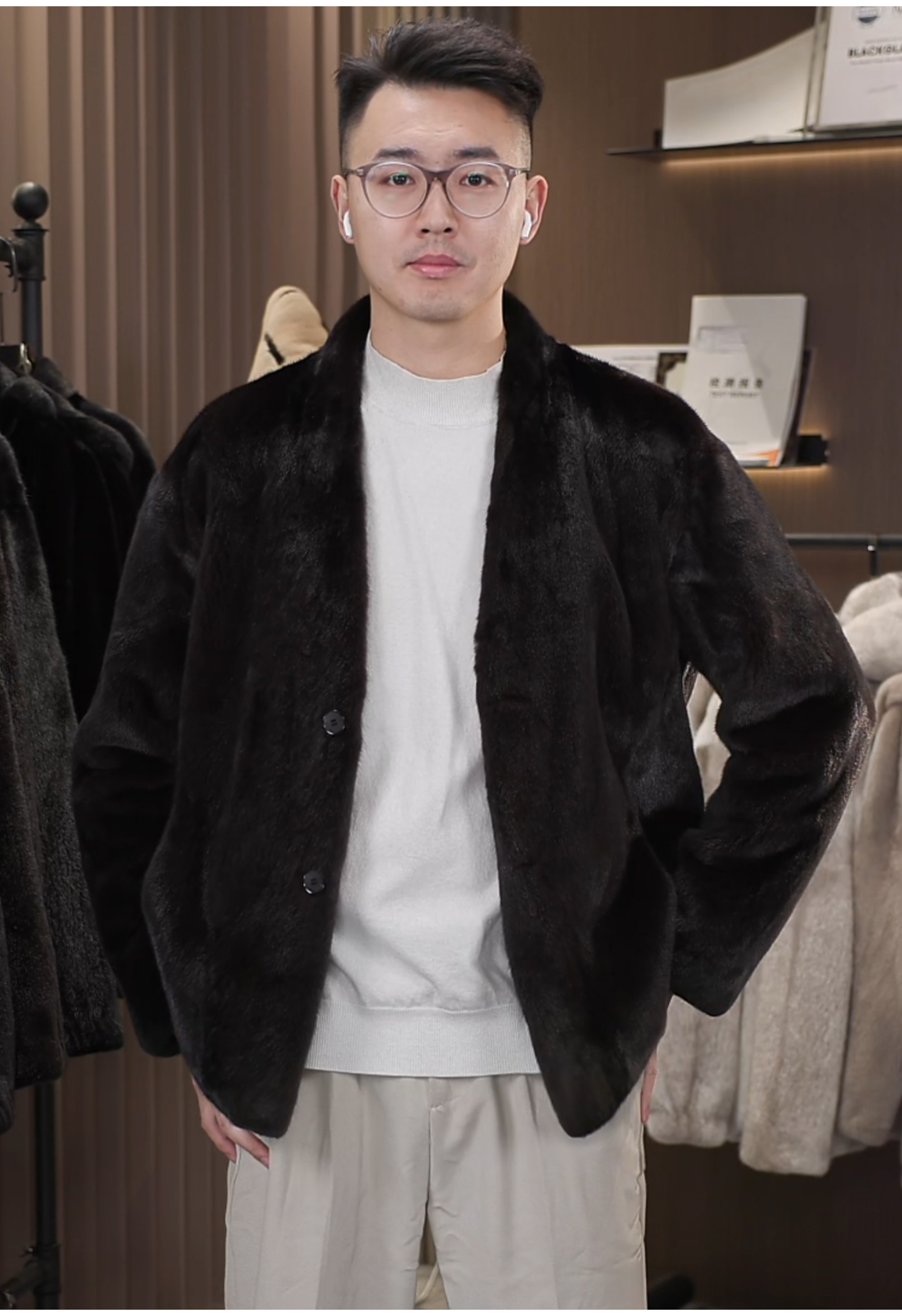 Imported Baojiamei Genuine Mink Fur Coat for Men, Whole Mink, Real Mink Fur, V-Neck Cardigan, Short Robe, Haining