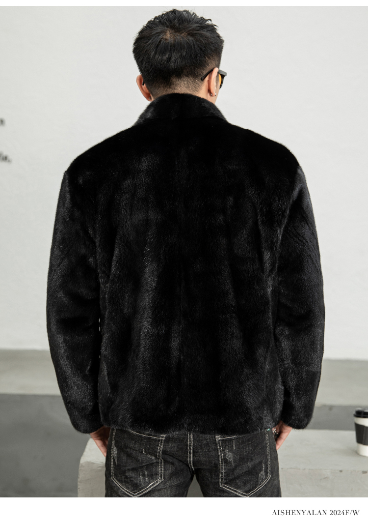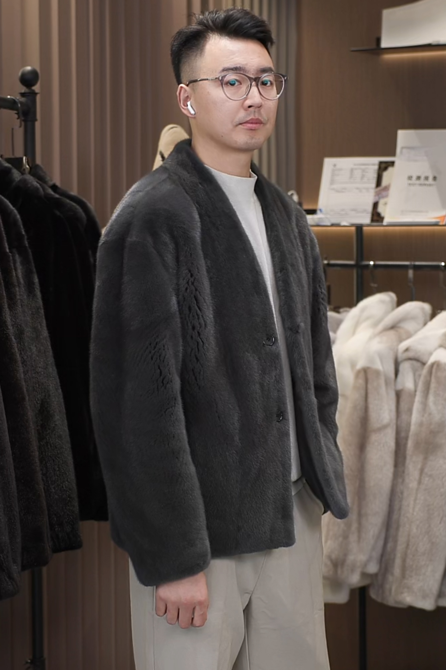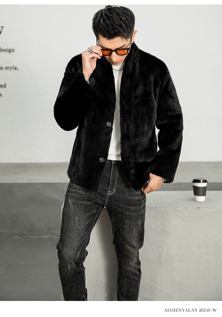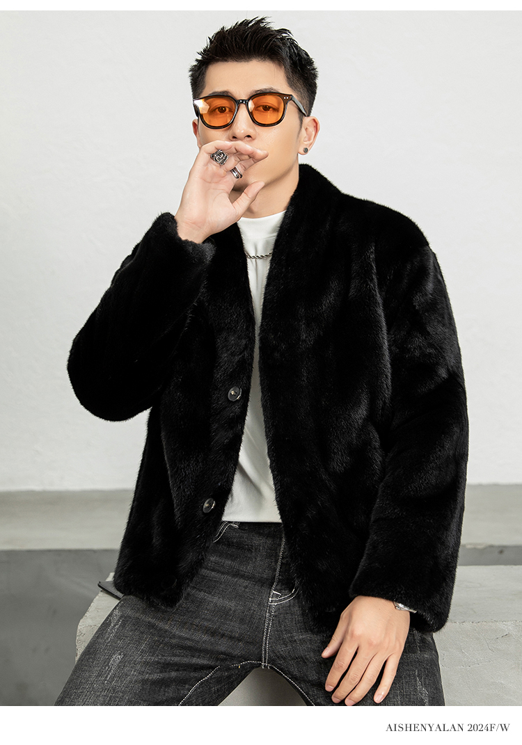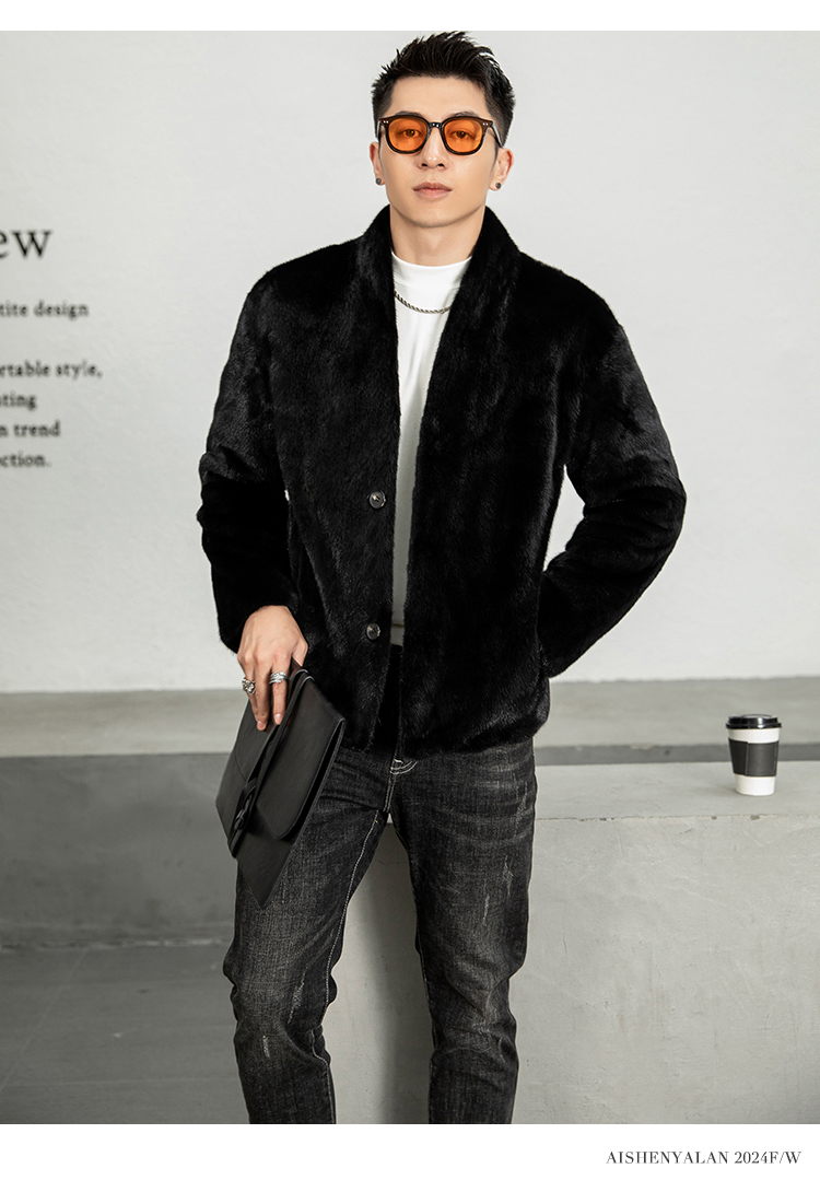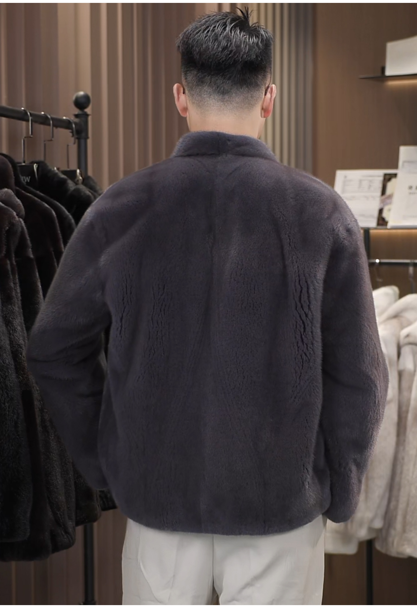 Imported Baojiamei Genuine Mink Fur Coat for Men, Whole Mink, Real Mink Fur, V-Neck Cardigan, Short Robe, Haining