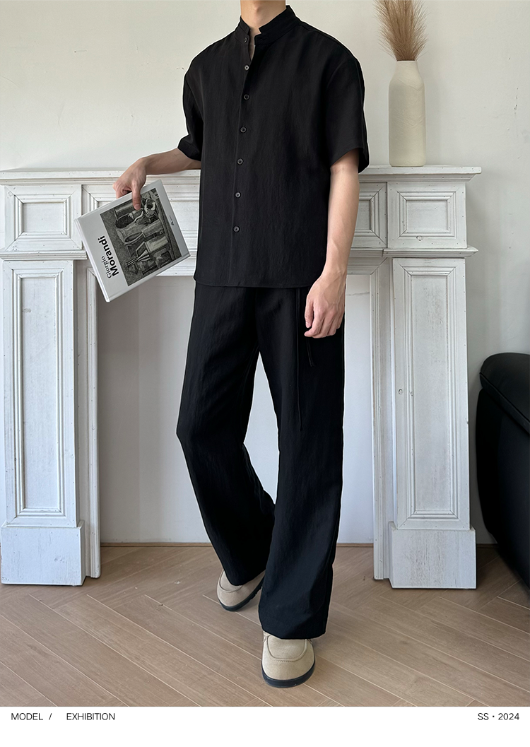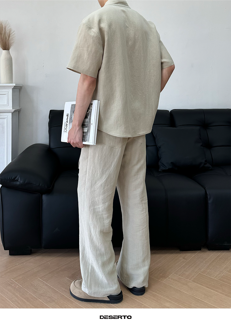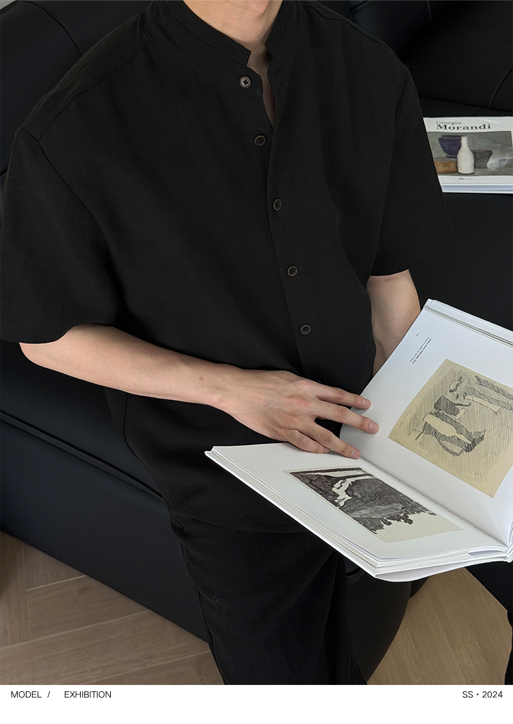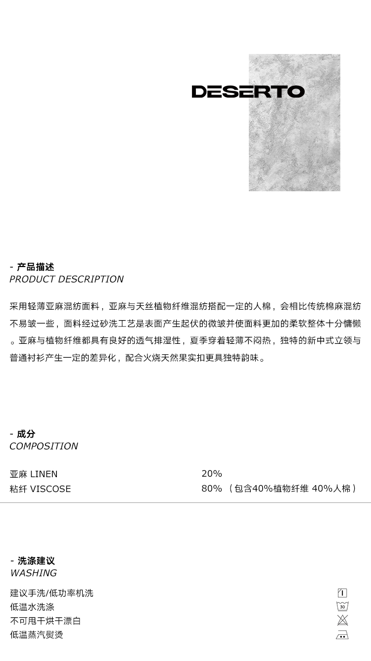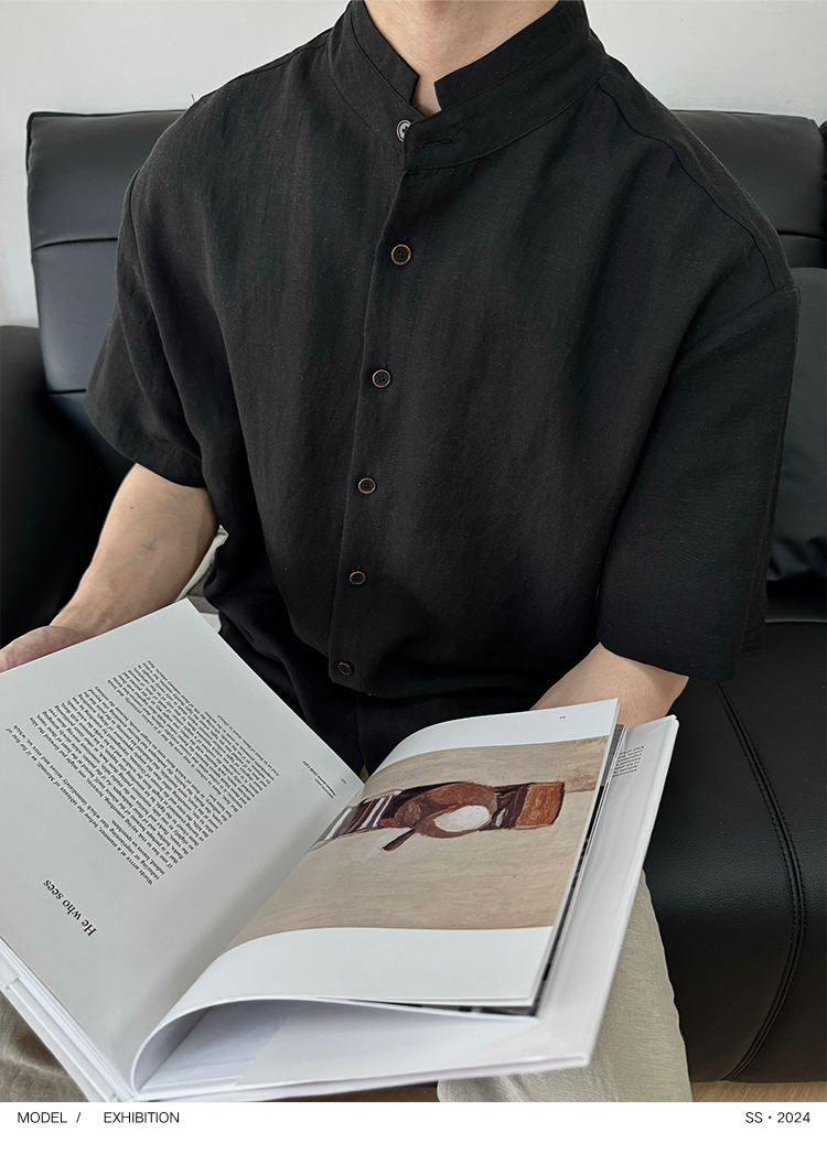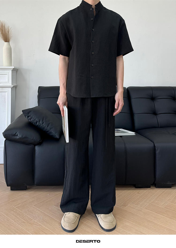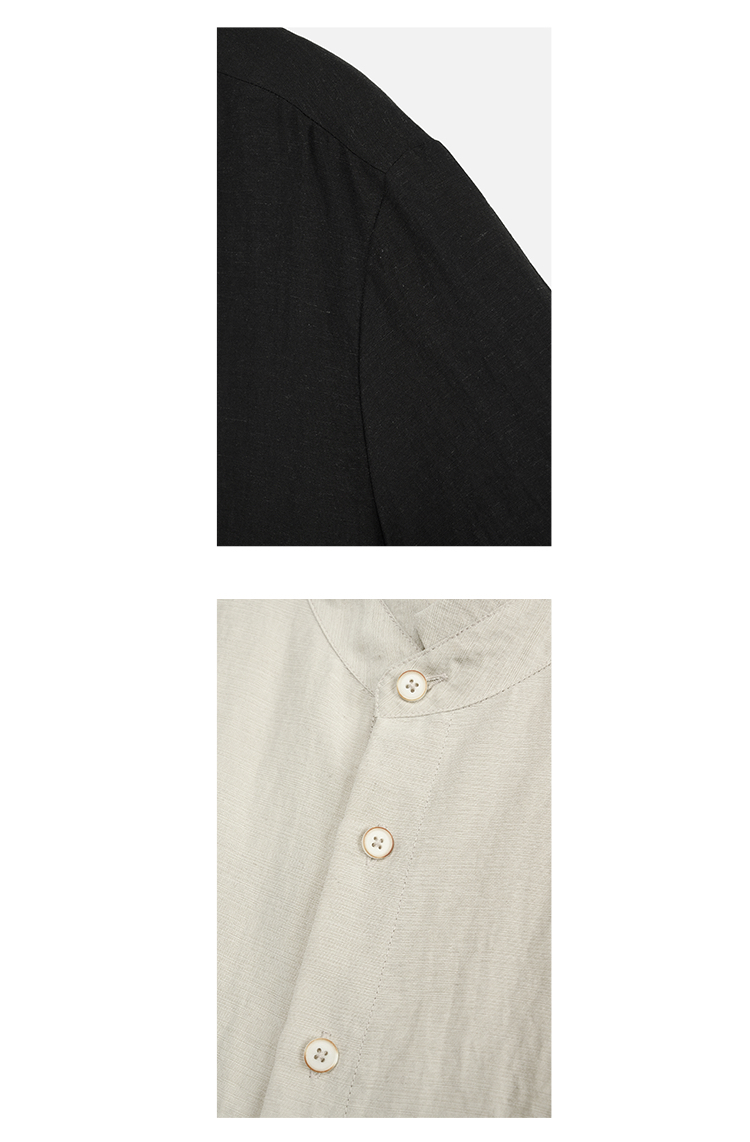 Deserto Linen Sand-Washed Wrinkled Texture New Chinese Style Stand-Up Collar Casual Workwear Short-Sleeved Shirt with Fire-Fruit Buttons