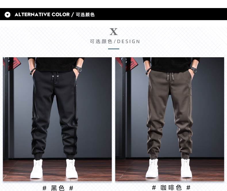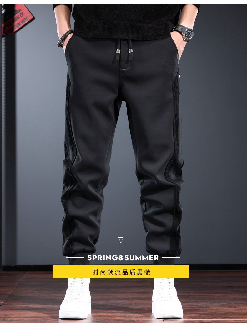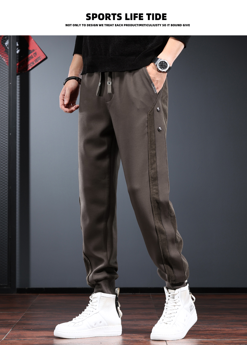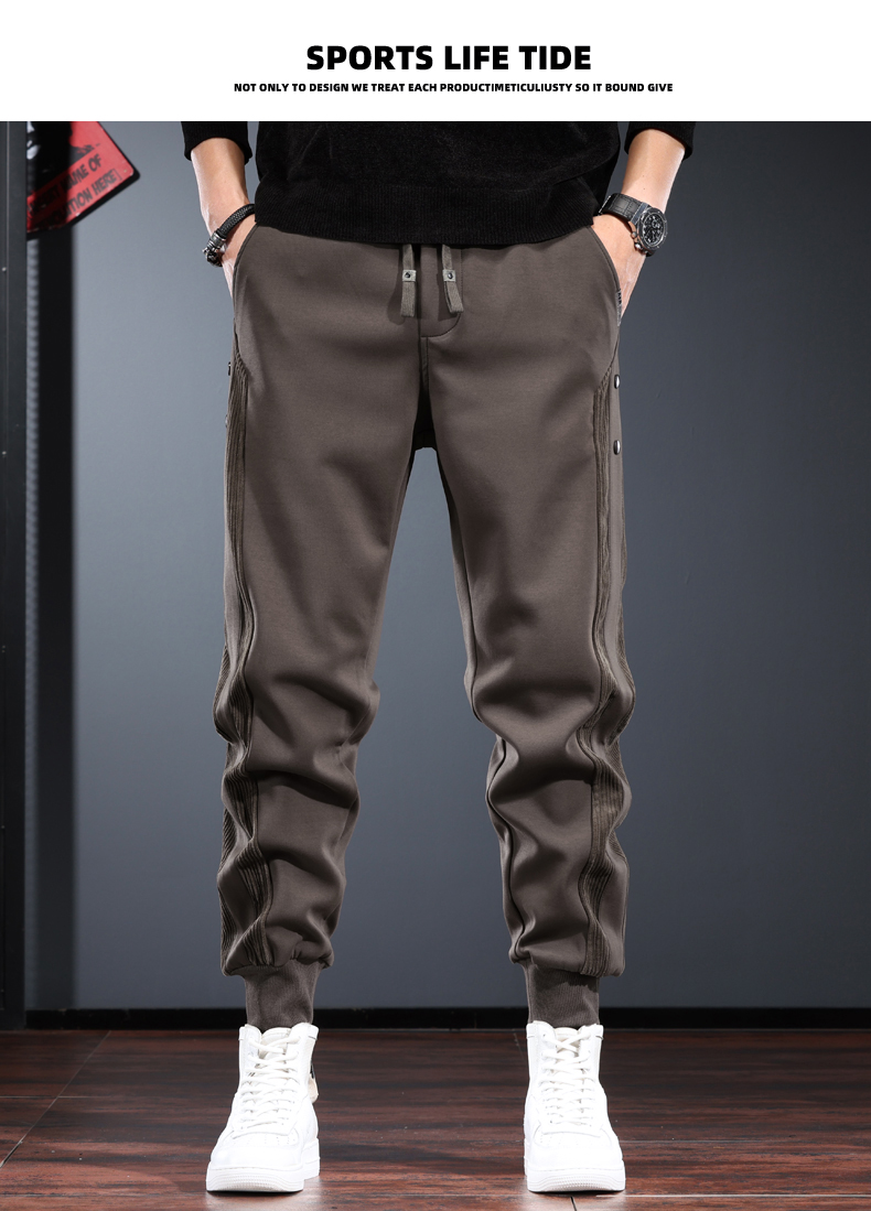Trendy Casual Pants for Men, American Style, Cool and High-End Feel, Autumn and Winter Jogger Pants, Fleece-Lined Air Layer Sweatpants