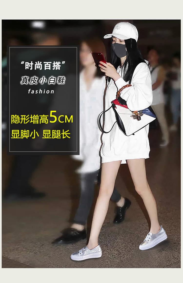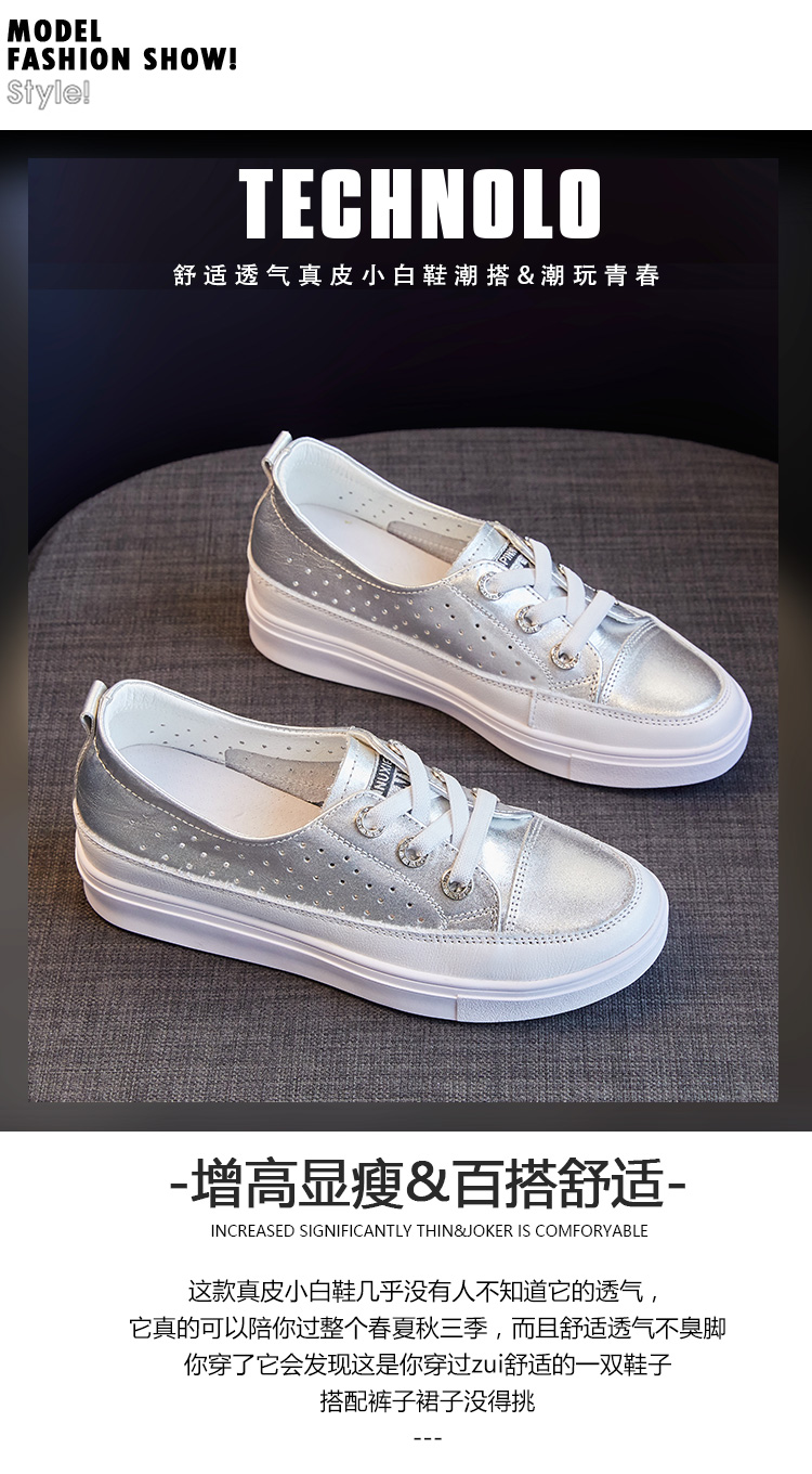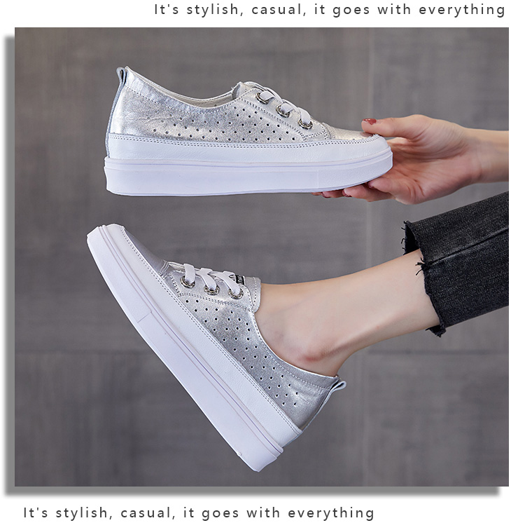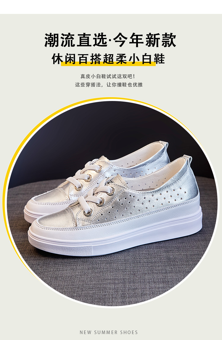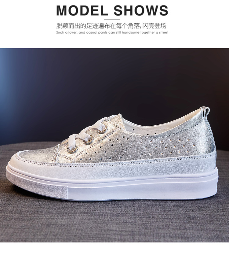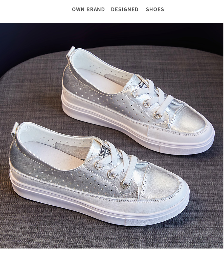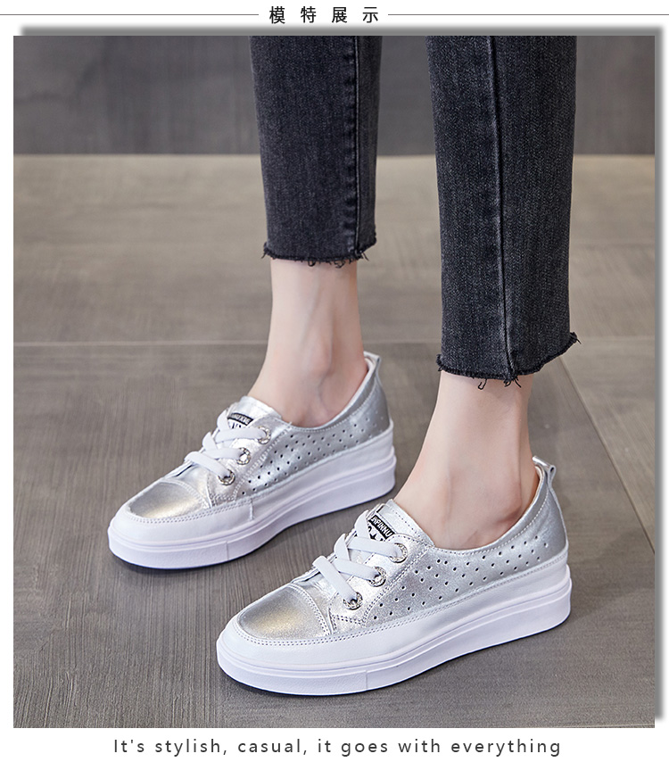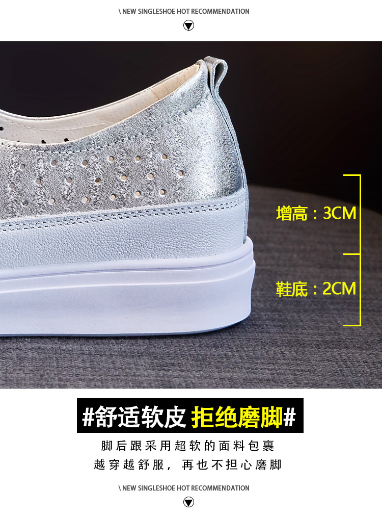 Hong Kong Soft-Soled Hollow-Out Height-Increasing Women's Shoes for Spring and Autumn, Breathable Silver White Shoes, 2025 Casual Slip-On Shoes