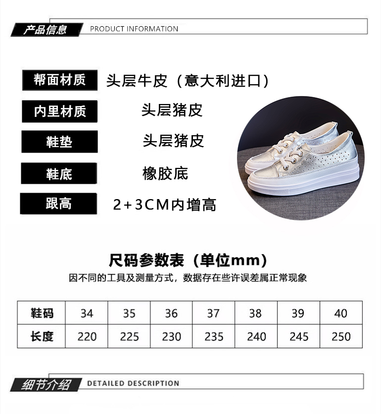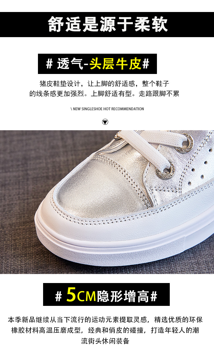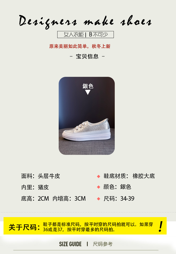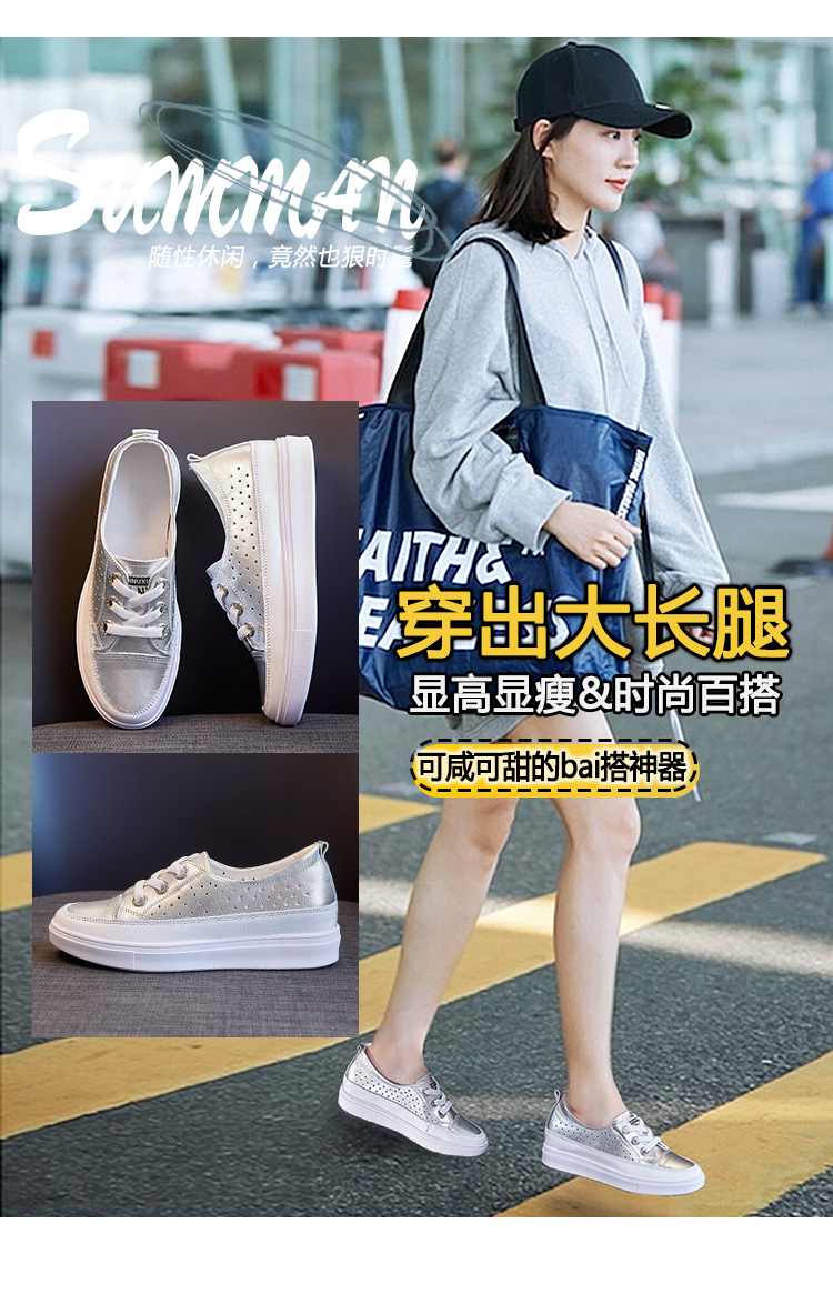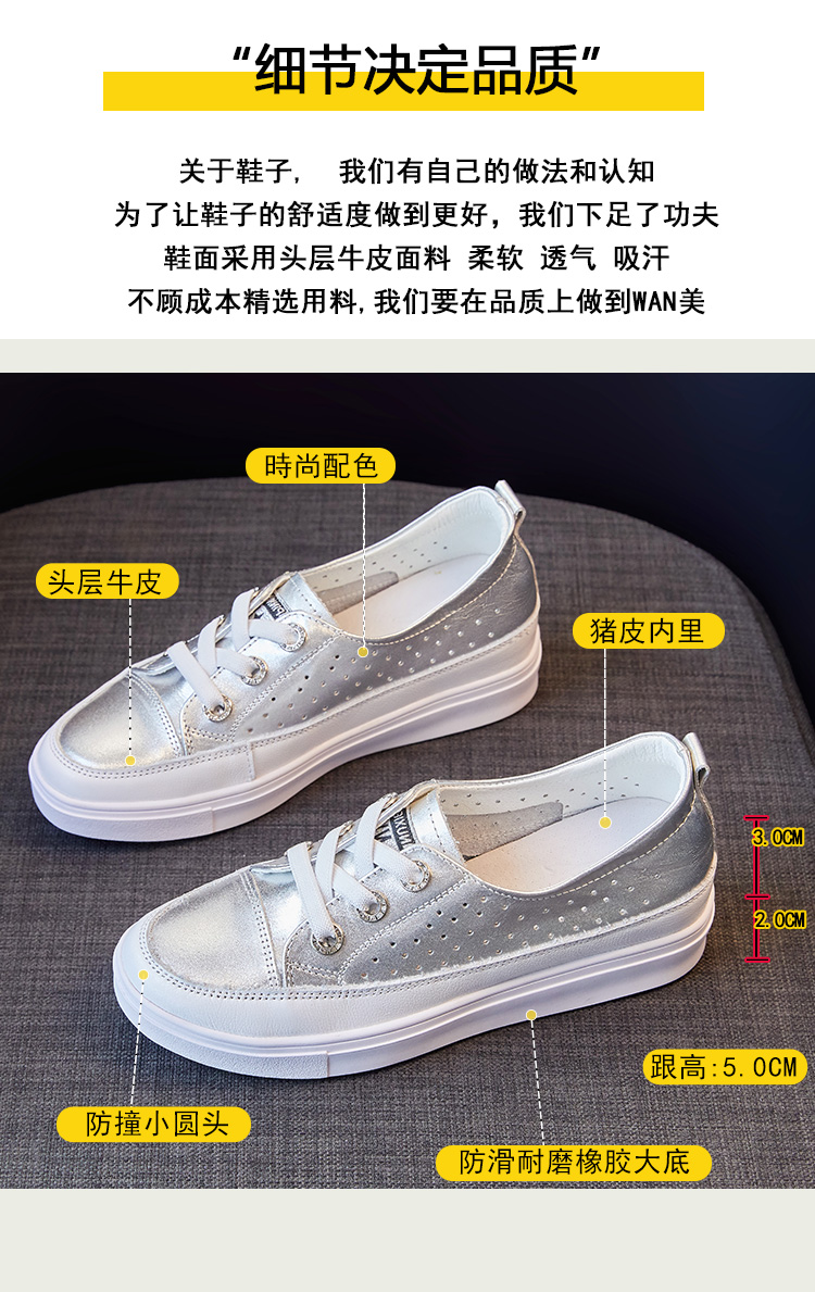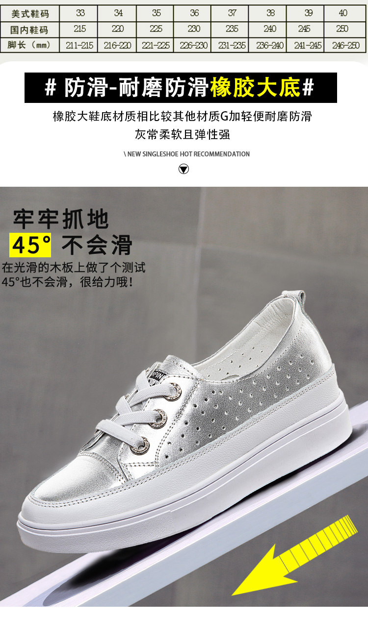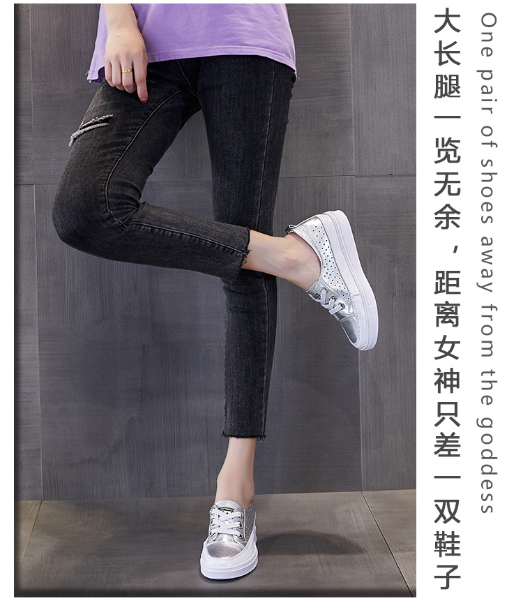 Hong Kong Soft-Soled Hollow-Out Height-Increasing Women's Shoes for Spring and Autumn, Breathable Silver White Shoes, 2025 Casual Slip-On Shoes