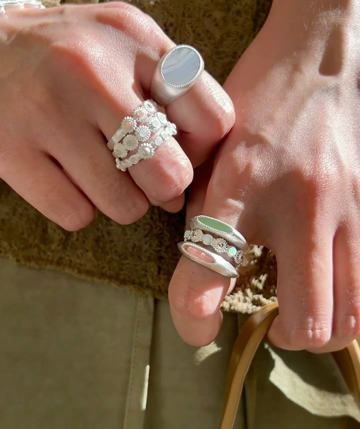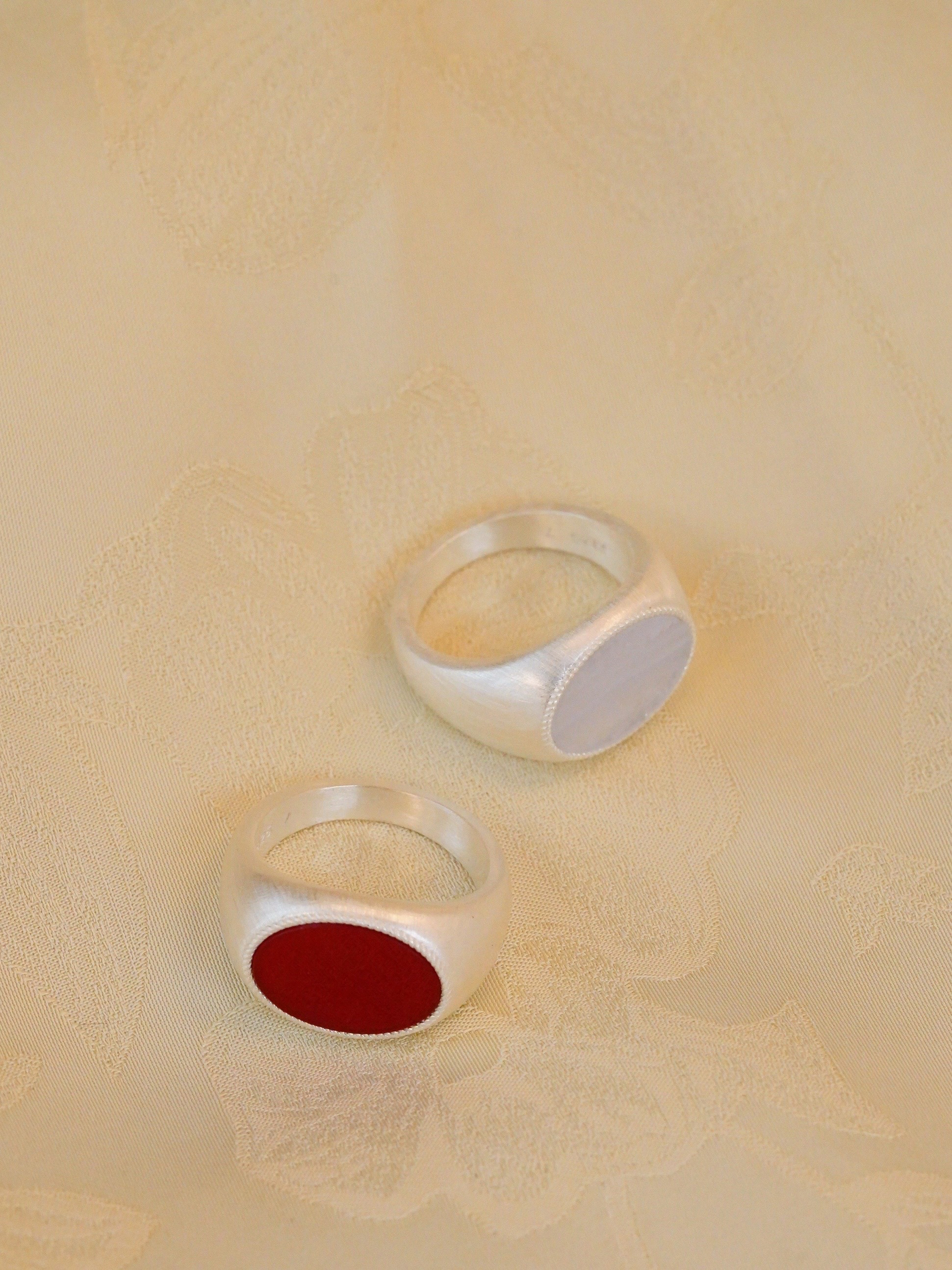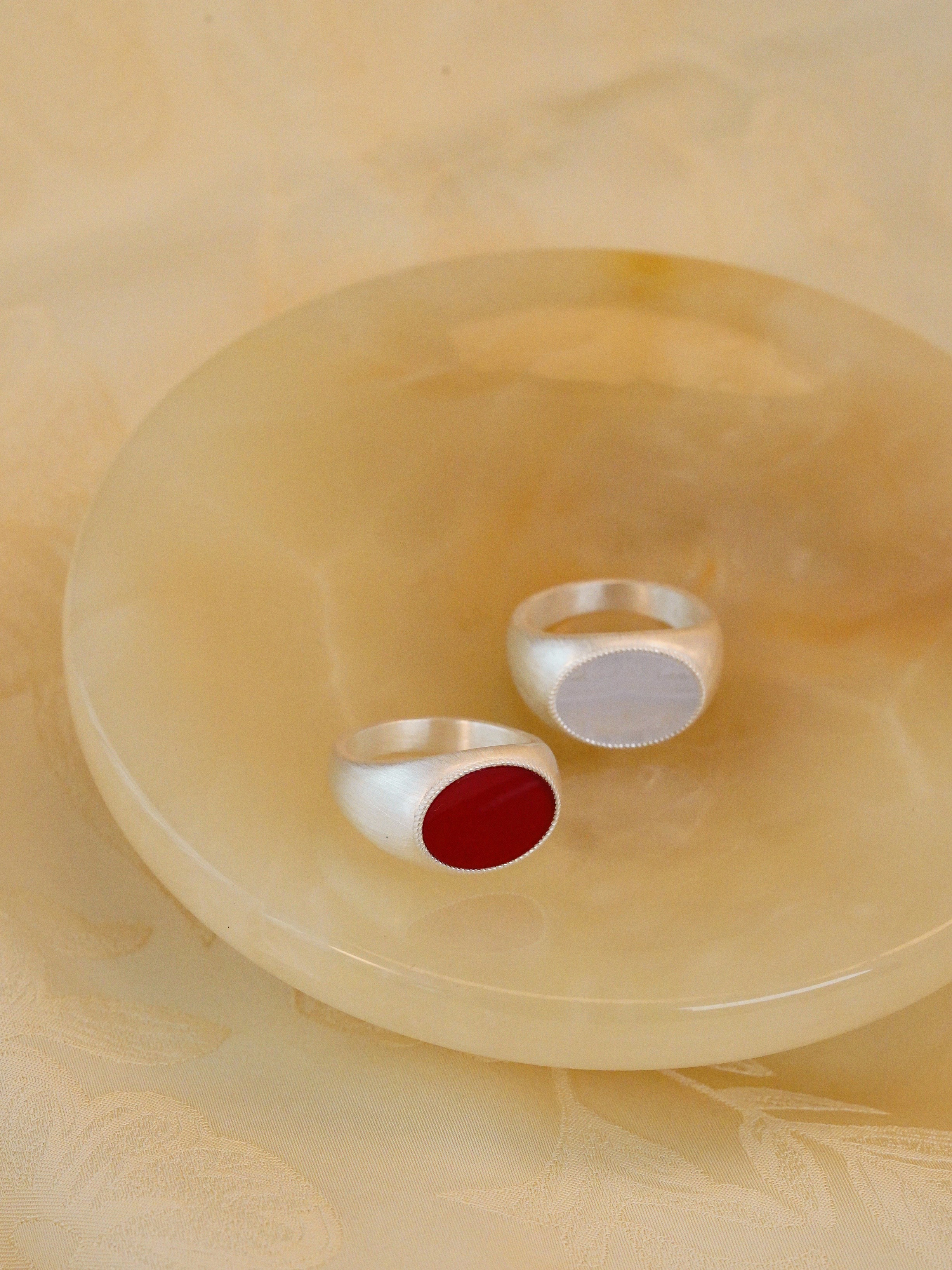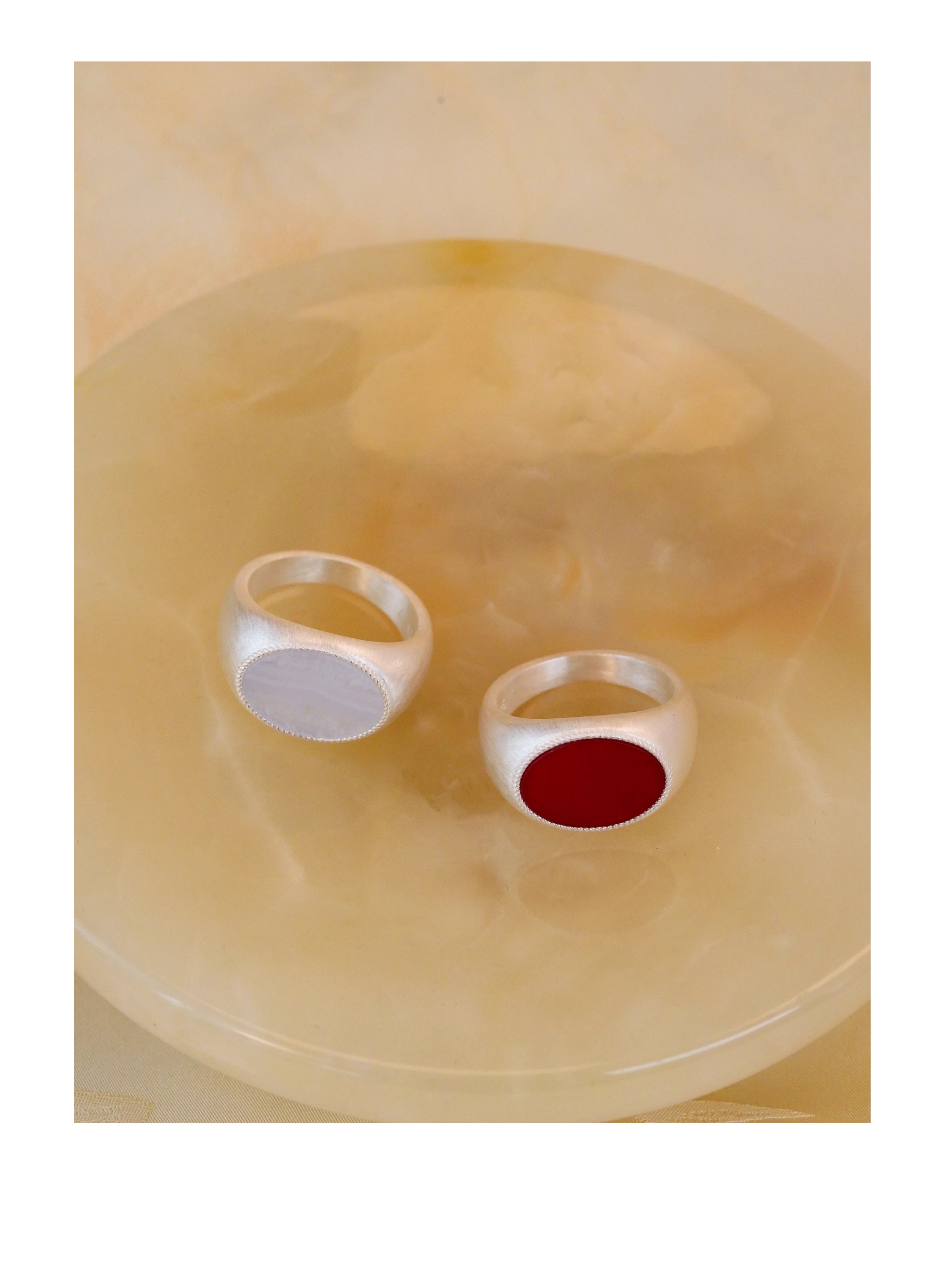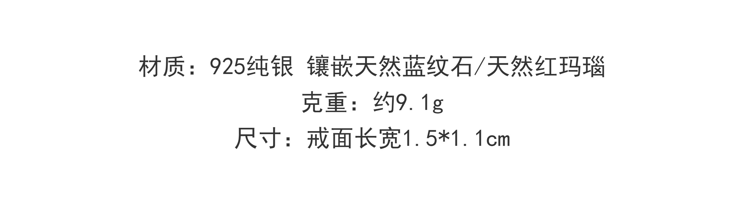 925 Sterling Silver Soft Mountain Style Niche Design Minimalist Inlaid Brushed Craft Natural Red Agate Blue Vein Stone Ring