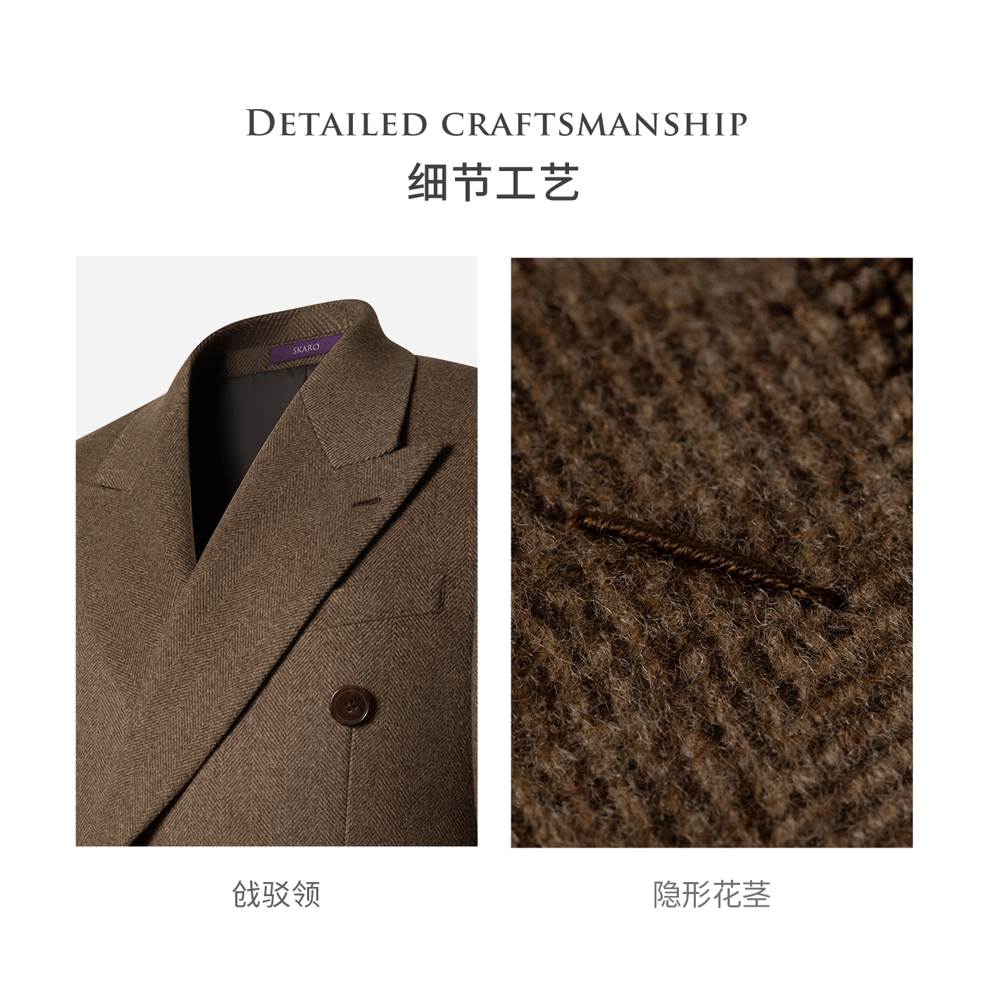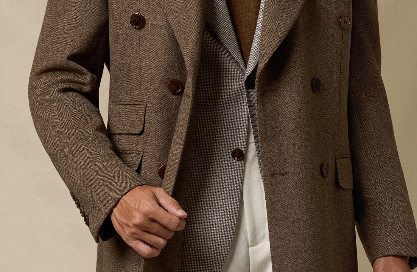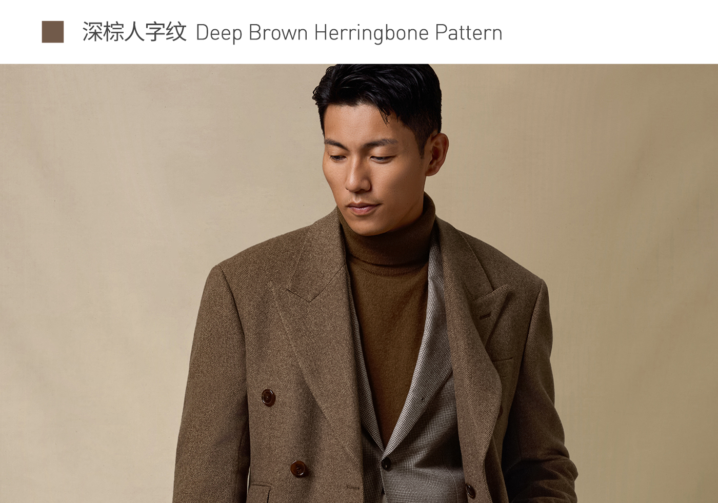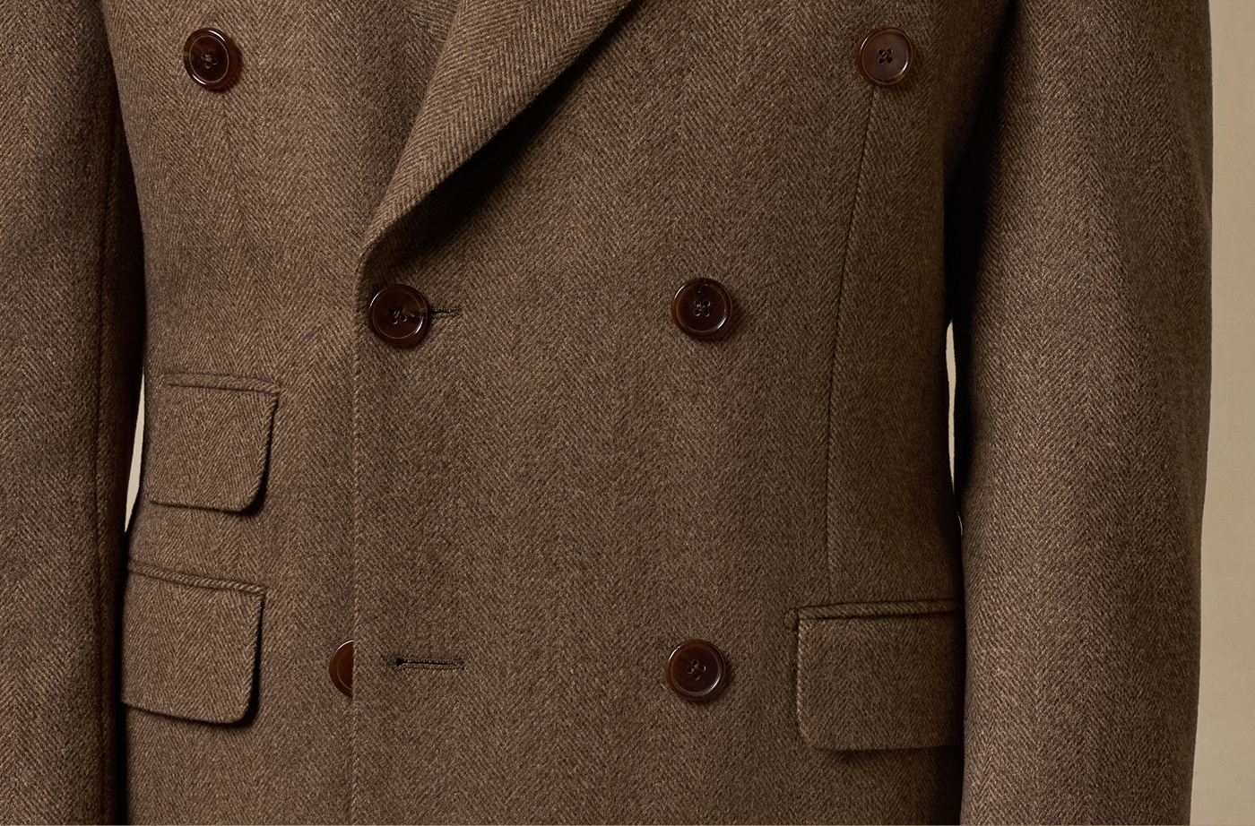 [Contains Cashmere] Skaro Suit Collar Wool Coat for Men, Autumn and Winter Herringbone Pattern Double-Breasted Long Woolen Coat