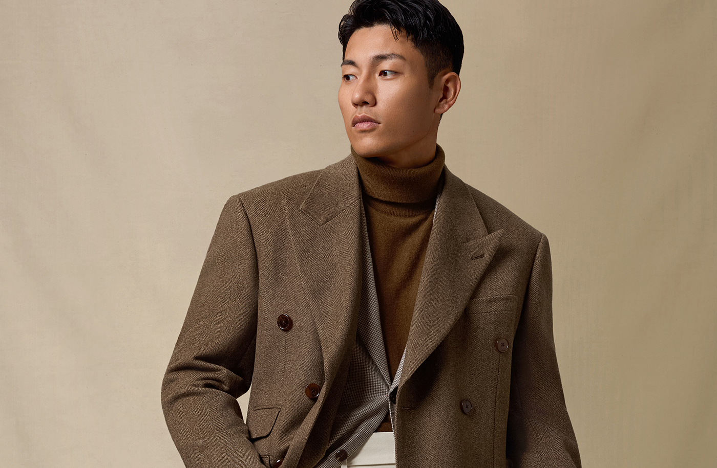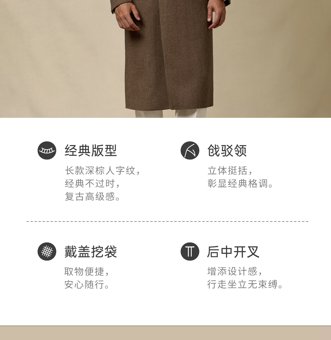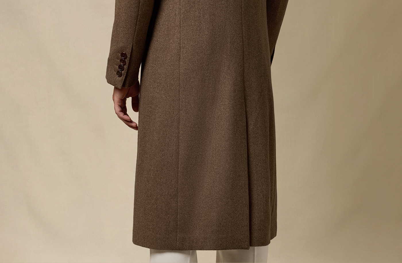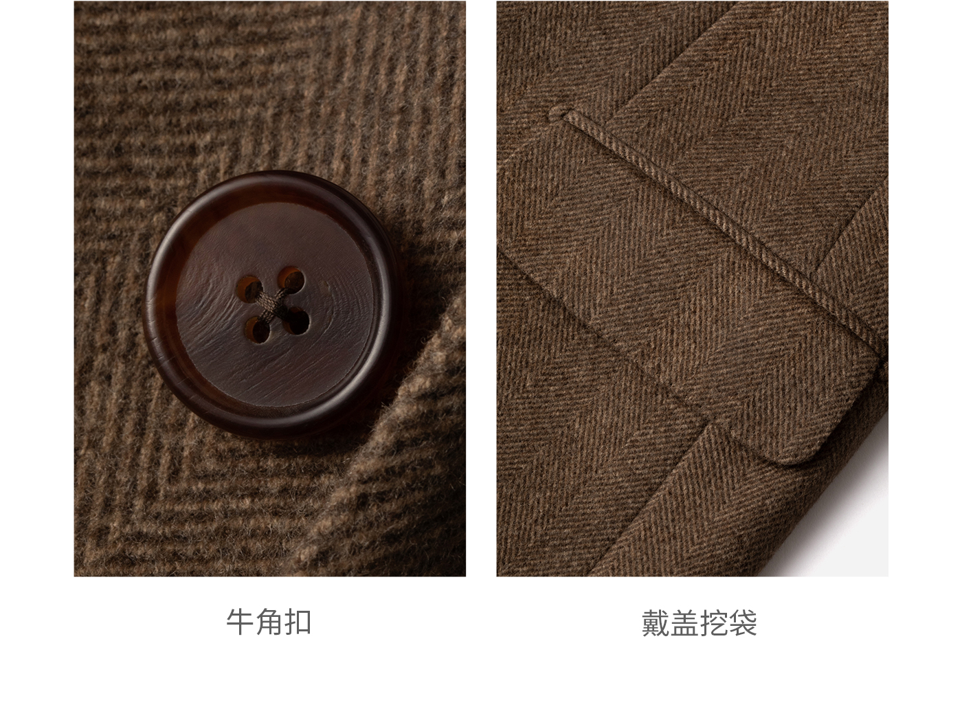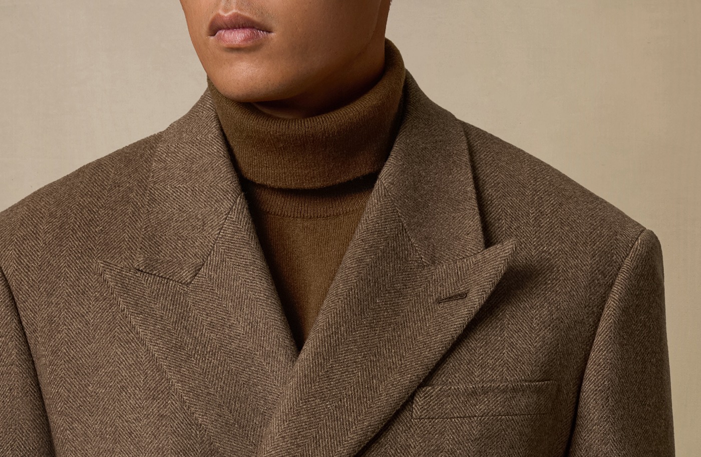 [Contains Cashmere] Skaro Suit Collar Wool Coat for Men, Autumn and Winter Herringbone Pattern Double-Breasted Long Woolen Coat