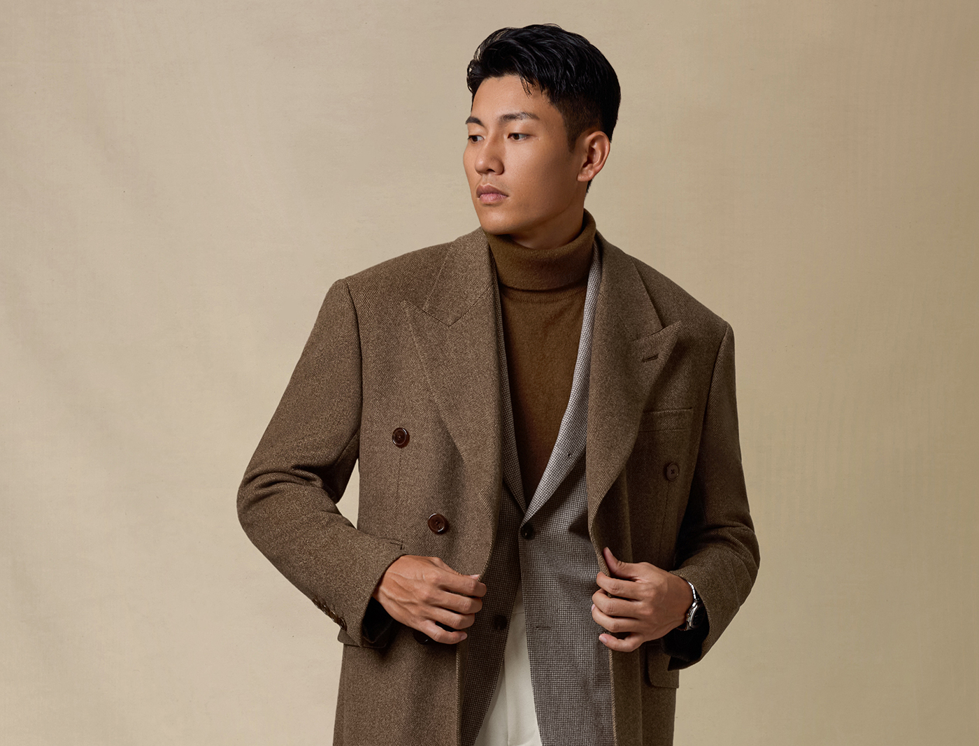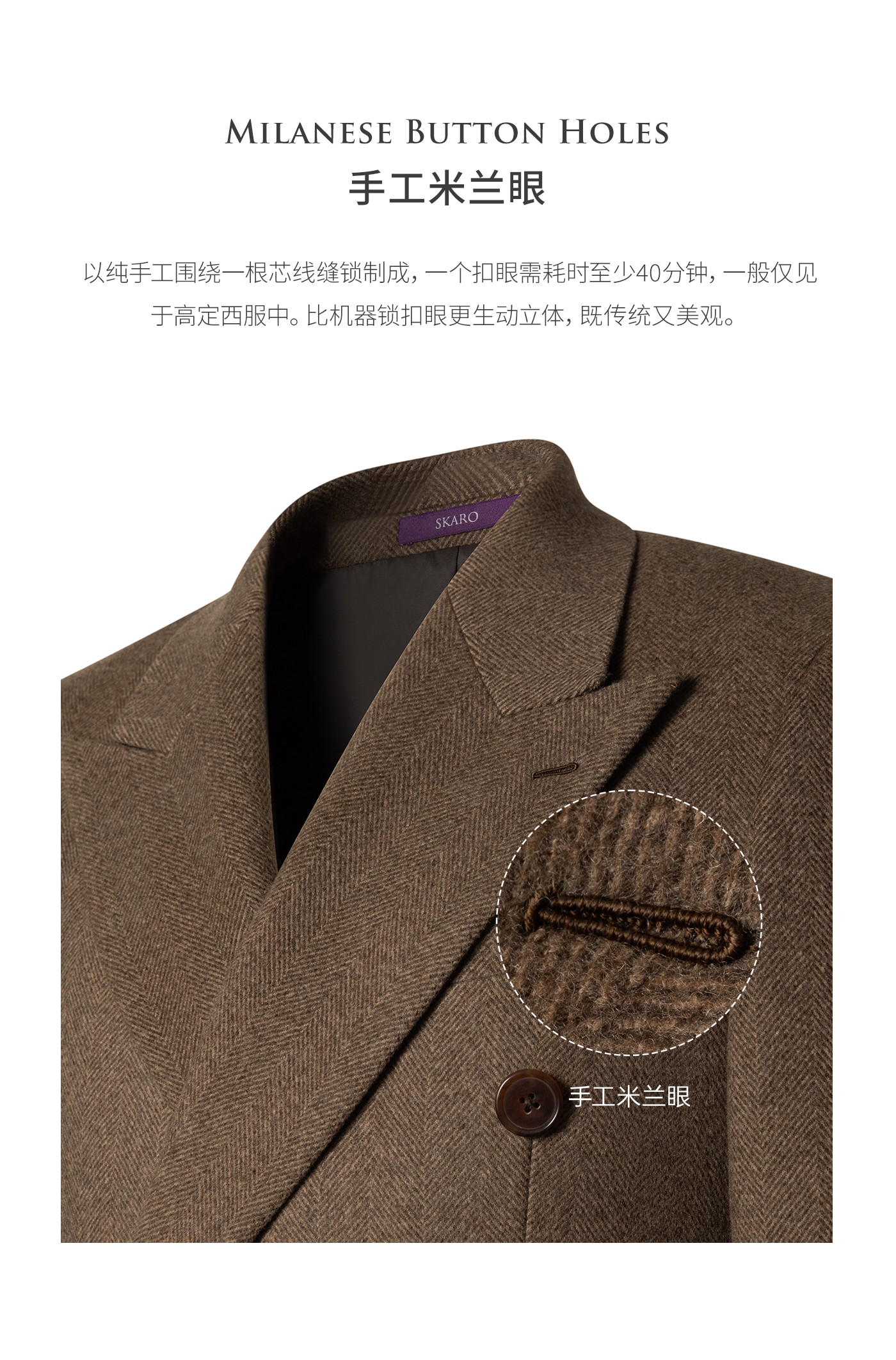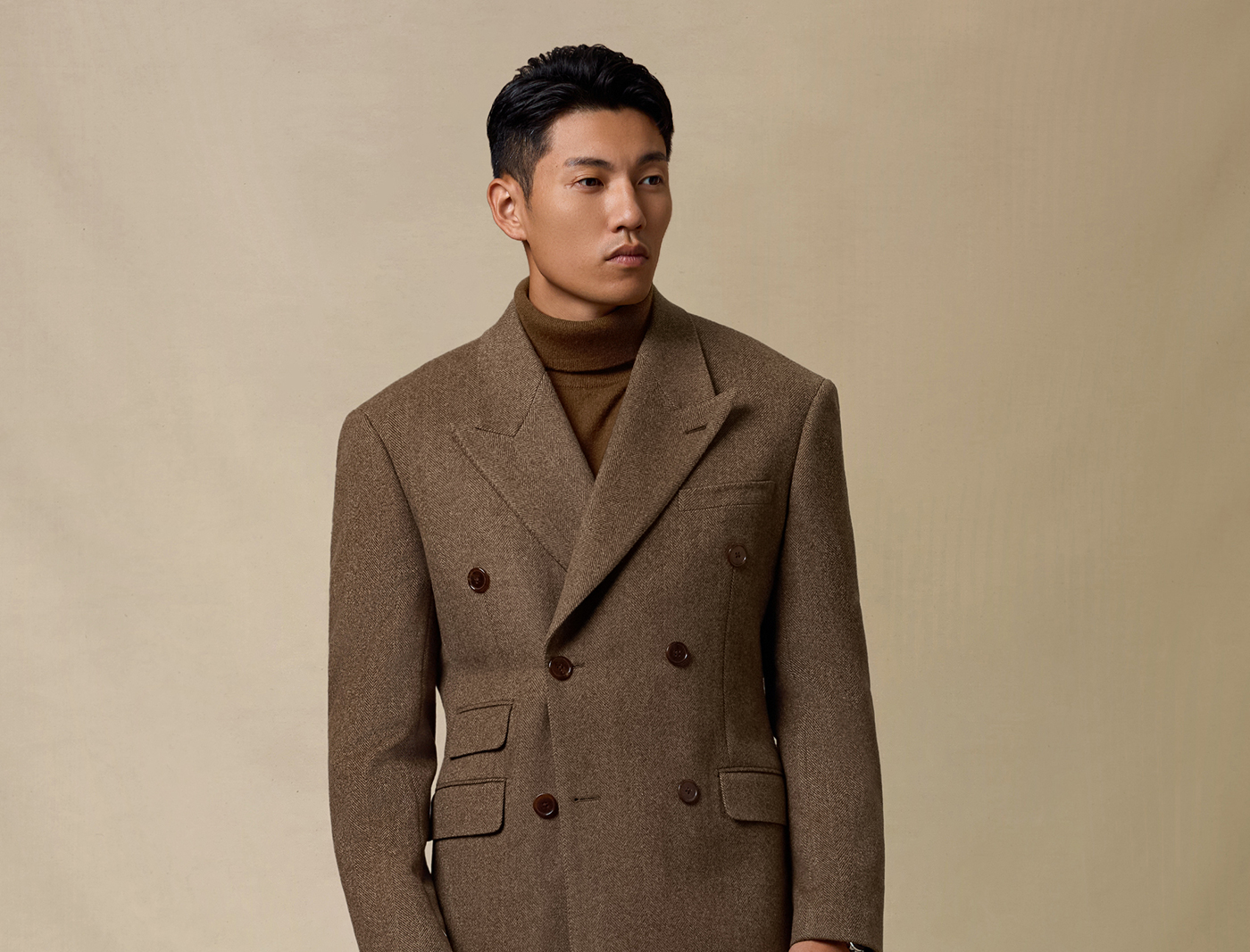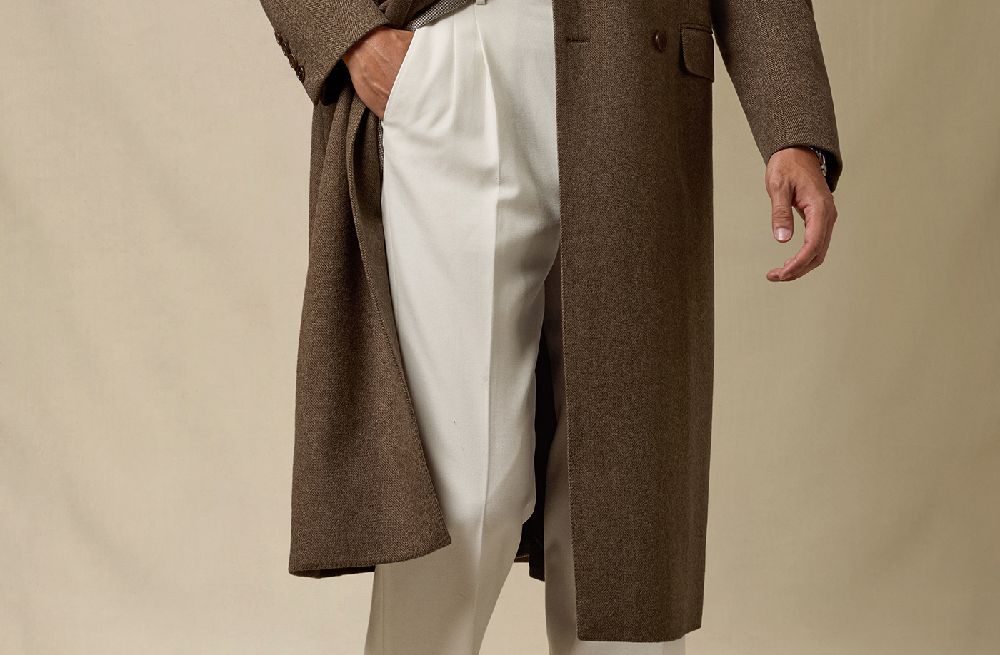 [Contains Cashmere] Skaro Suit Collar Wool Coat for Men, Autumn and Winter Herringbone Pattern Double-Breasted Long Woolen Coat