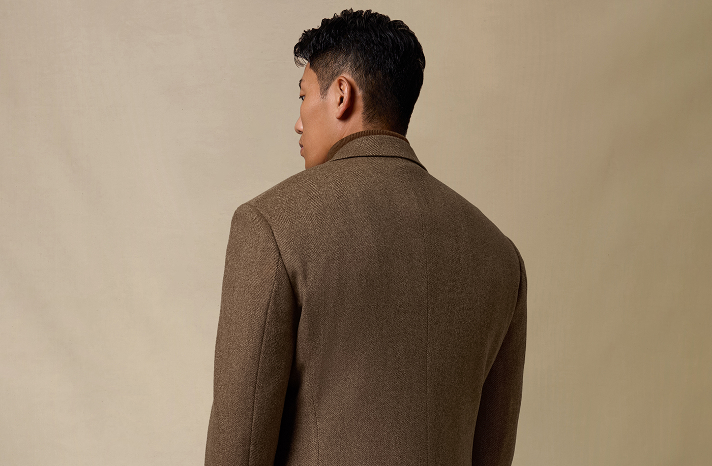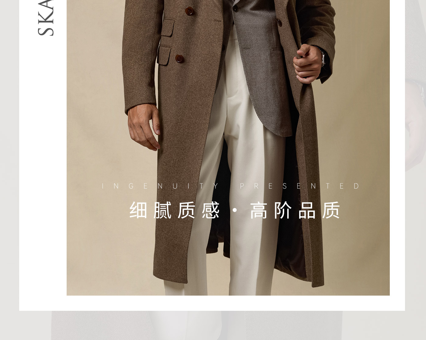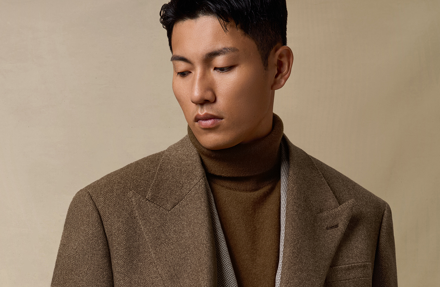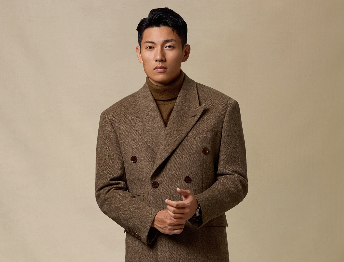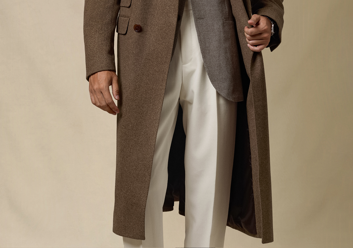 [Contains Cashmere] Skaro Suit Collar Wool Coat for Men, Autumn and Winter Herringbone Pattern Double-Breasted Long Woolen Coat