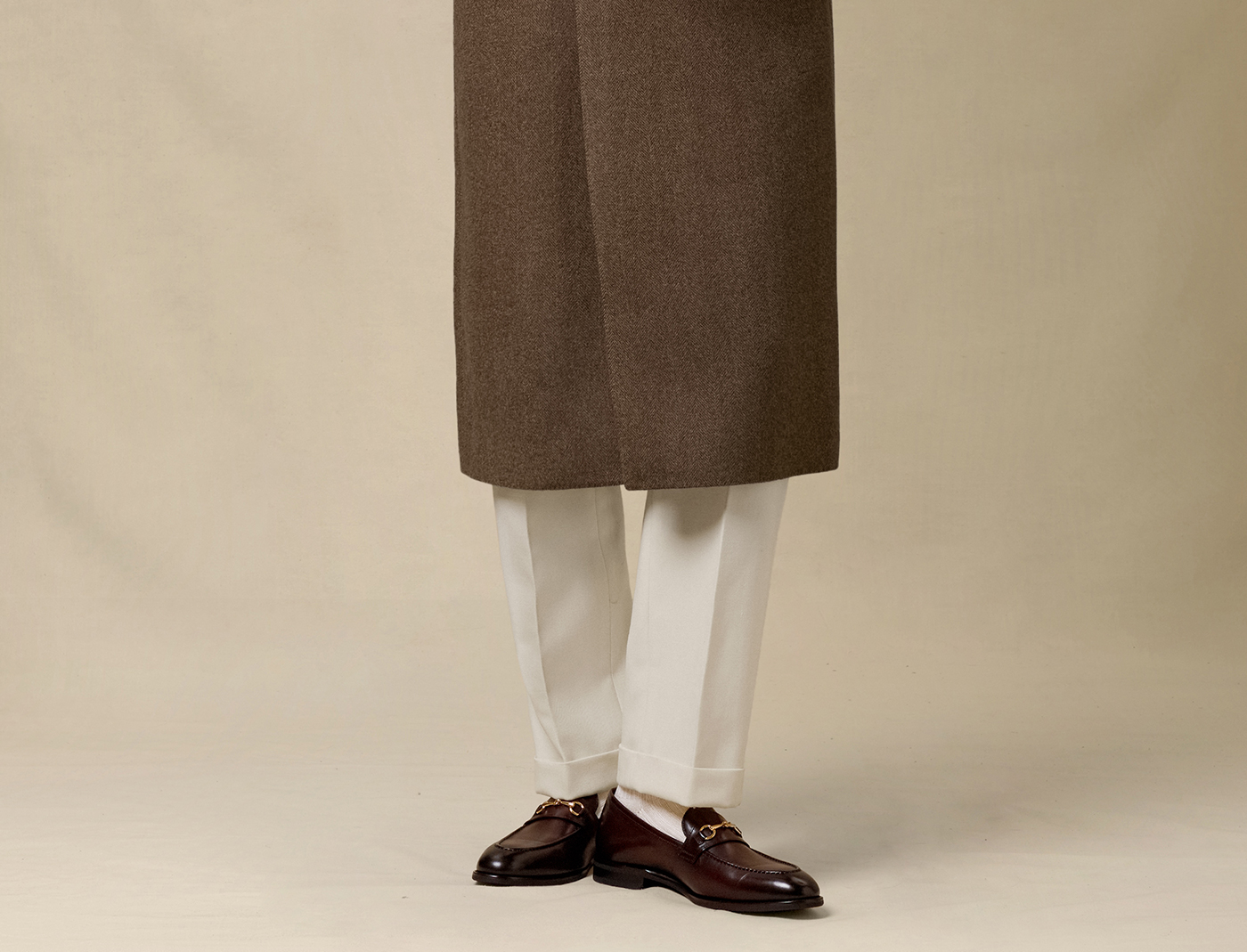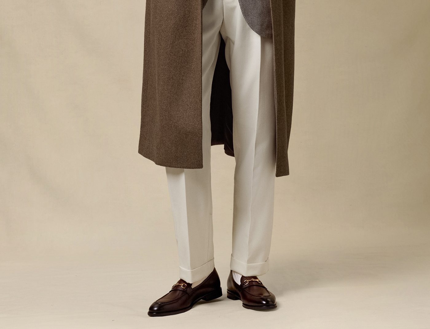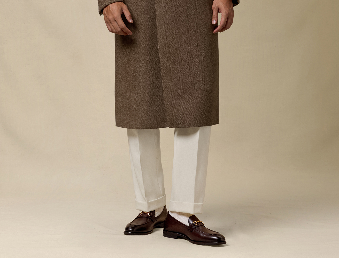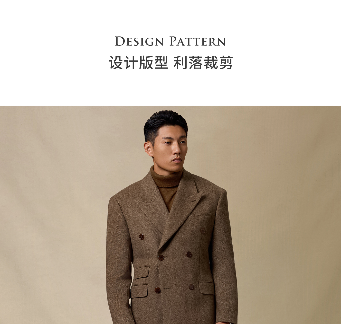 [Contains Cashmere] Skaro Suit Collar Wool Coat for Men, Autumn and Winter Herringbone Pattern Double-Breasted Long Woolen Coat
