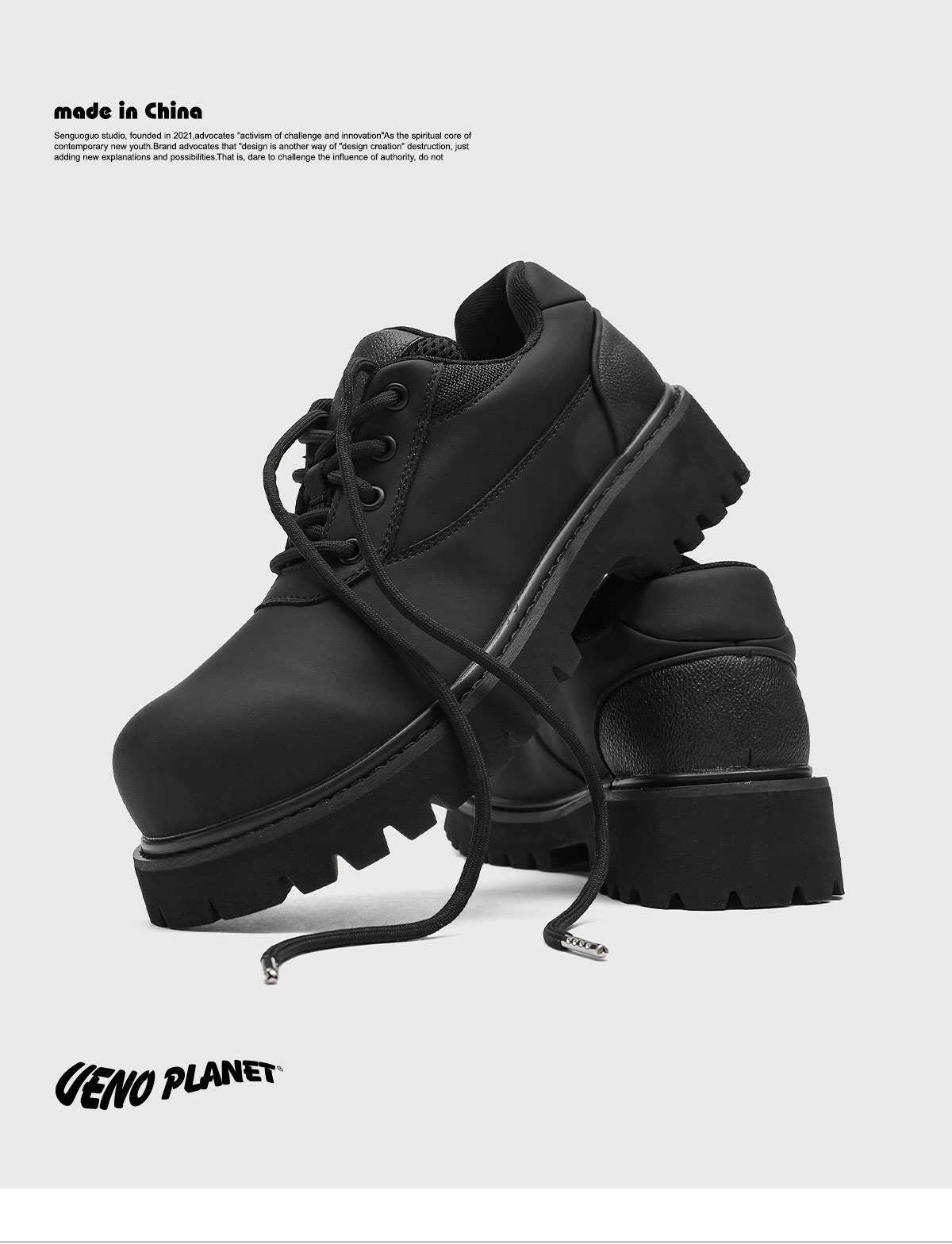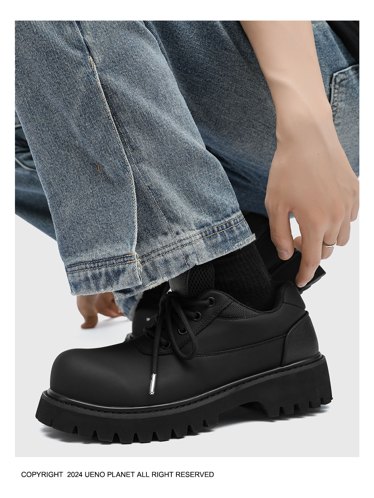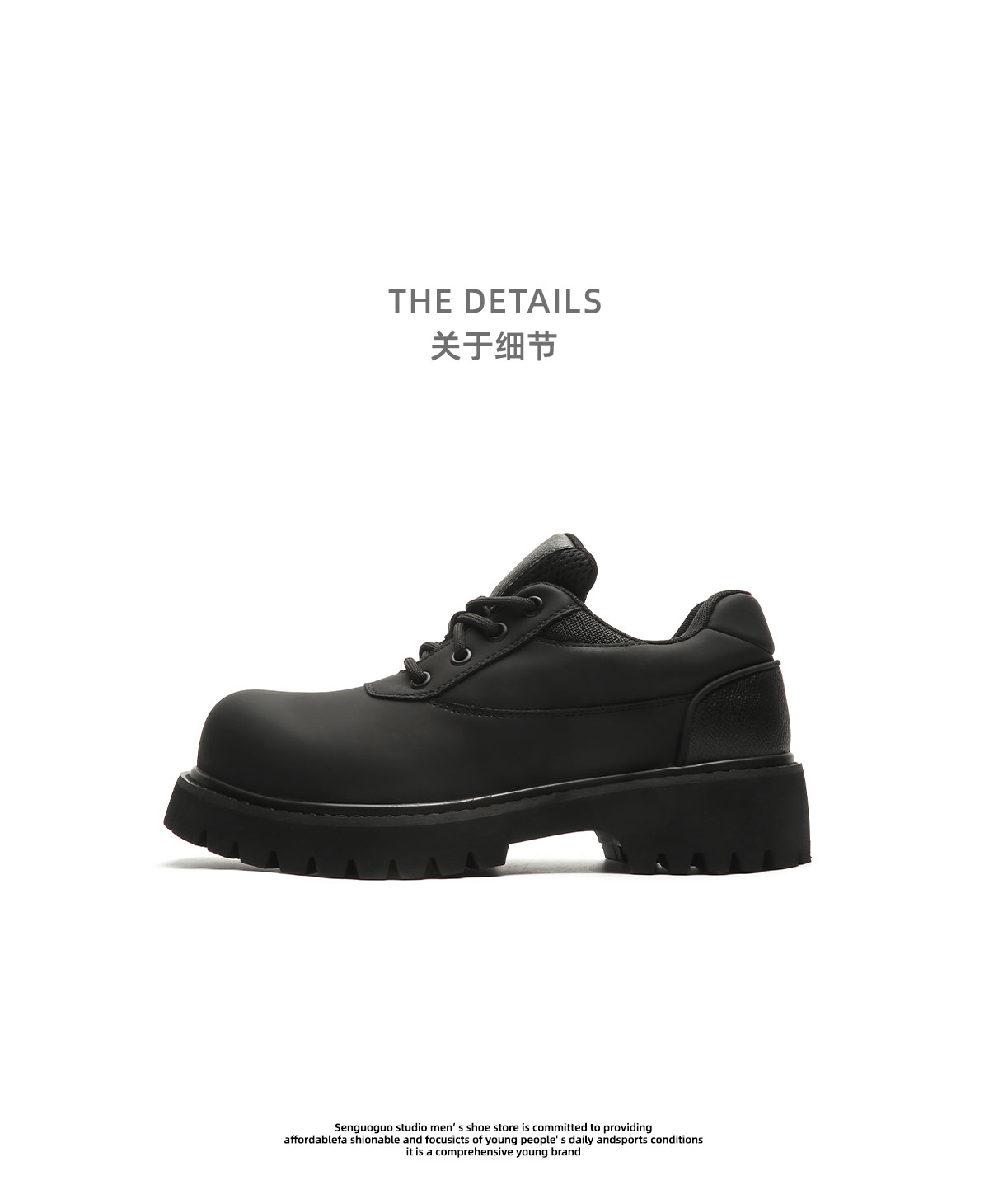Men's Shoes 2025 New Model Charcoal Black Mickey Derby Shoes Niche Original Workwear Thick-Soled Height-Increasing Large-Toe Casual Leather Shoes