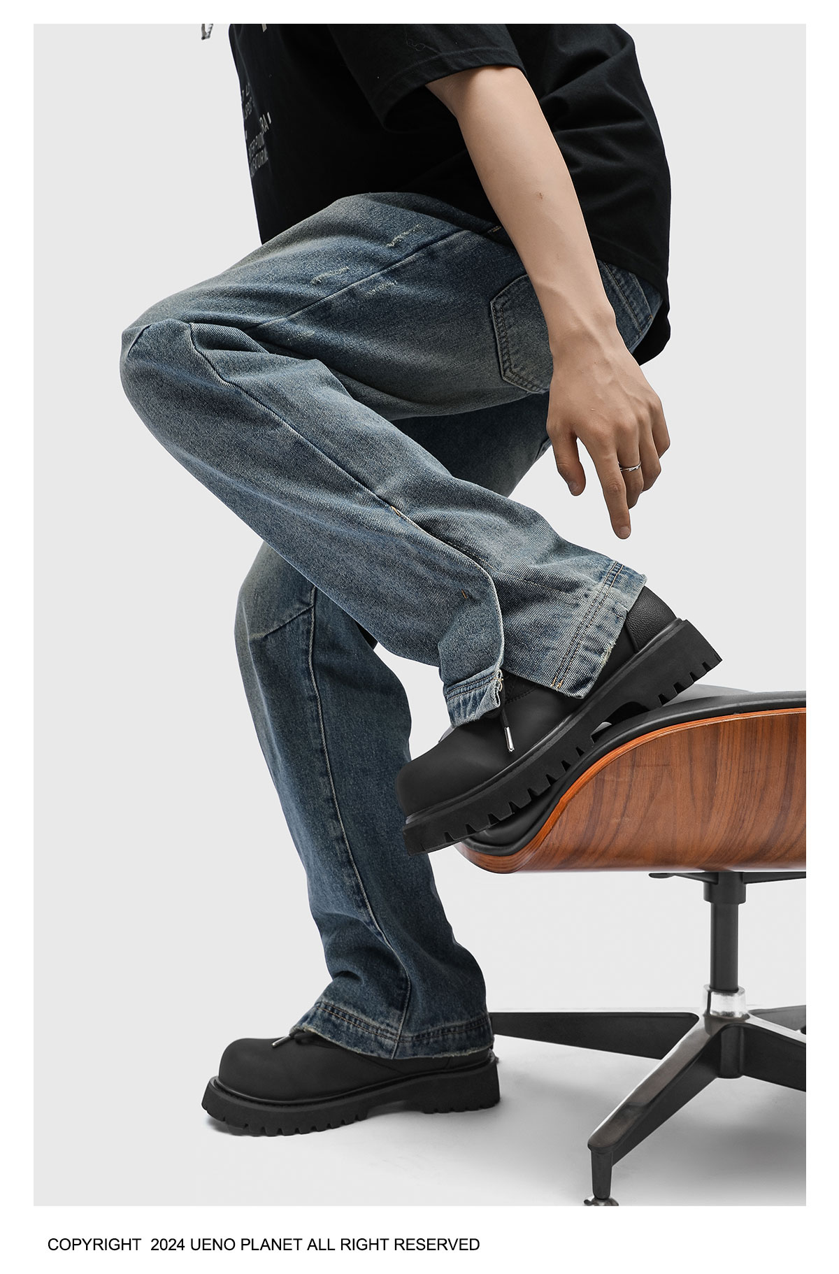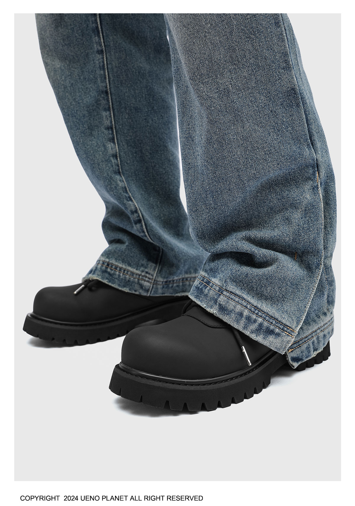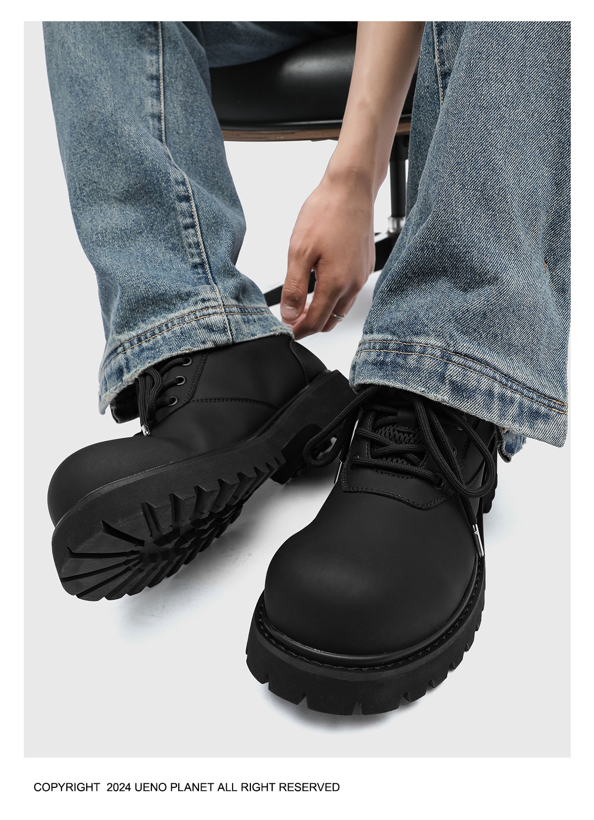 Men's Shoes 2025 New Model Charcoal Black Mickey Derby Shoes Niche Original Workwear Thick-Soled Height-Increasing Large-Toe Casual Leather Shoes