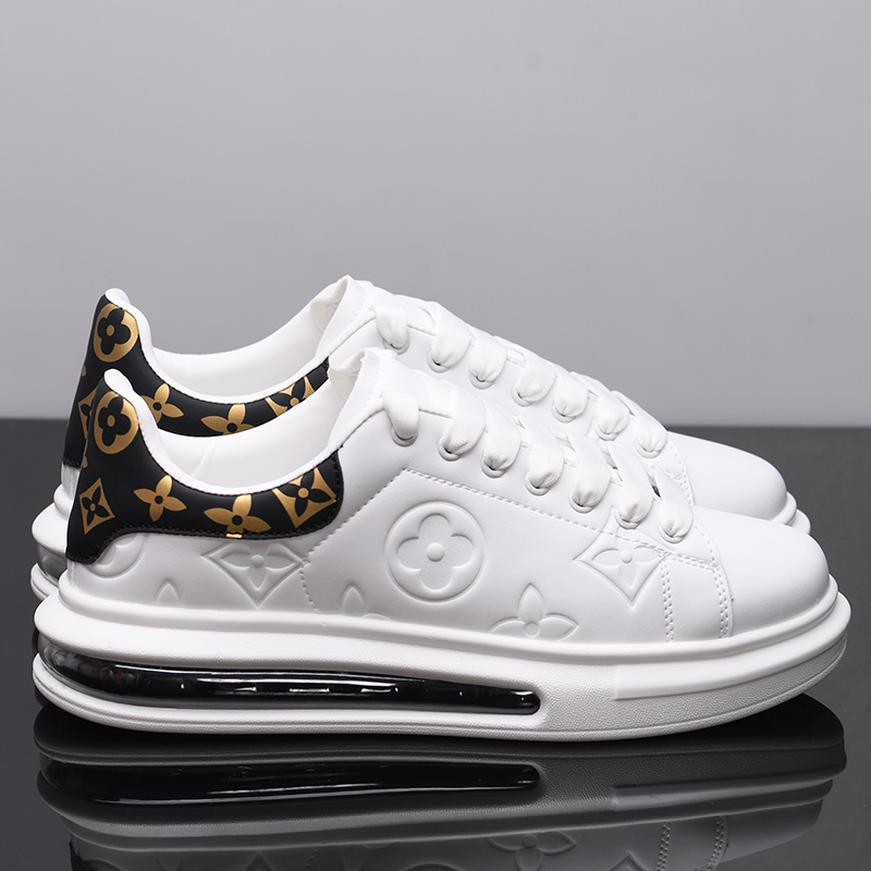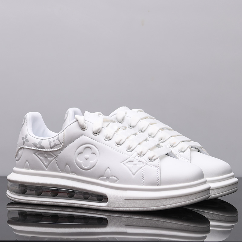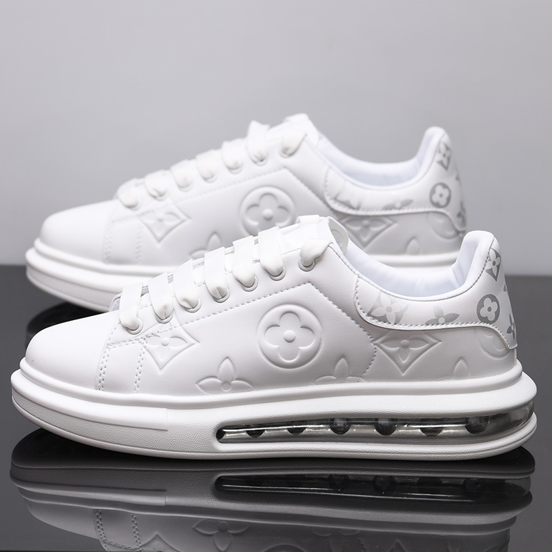 European Men's Shoes 2024 New Air Cushion Increased Casual Sports Shoes Genuine Leather Easiest for Match Couple White Shoes Trendy
